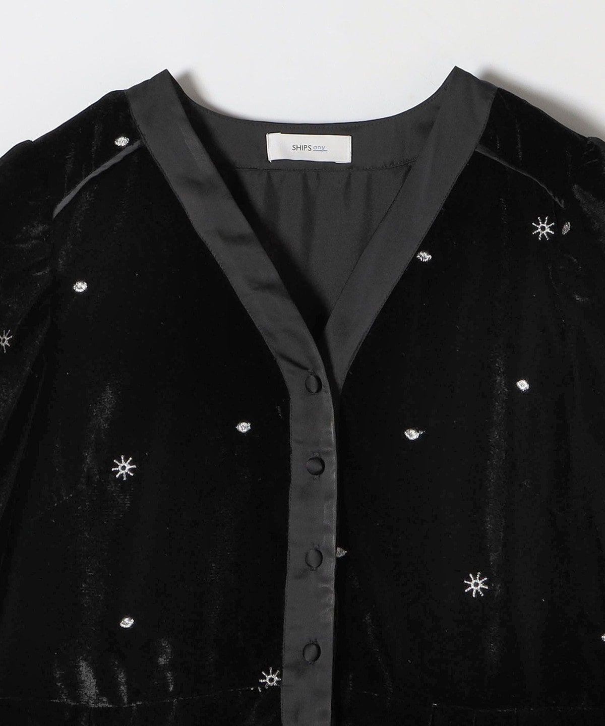 10. 《予約》SHIPS any:〈手洗い可能〉ポリエステル ベロア 刺繍 タック フレア ワンピース