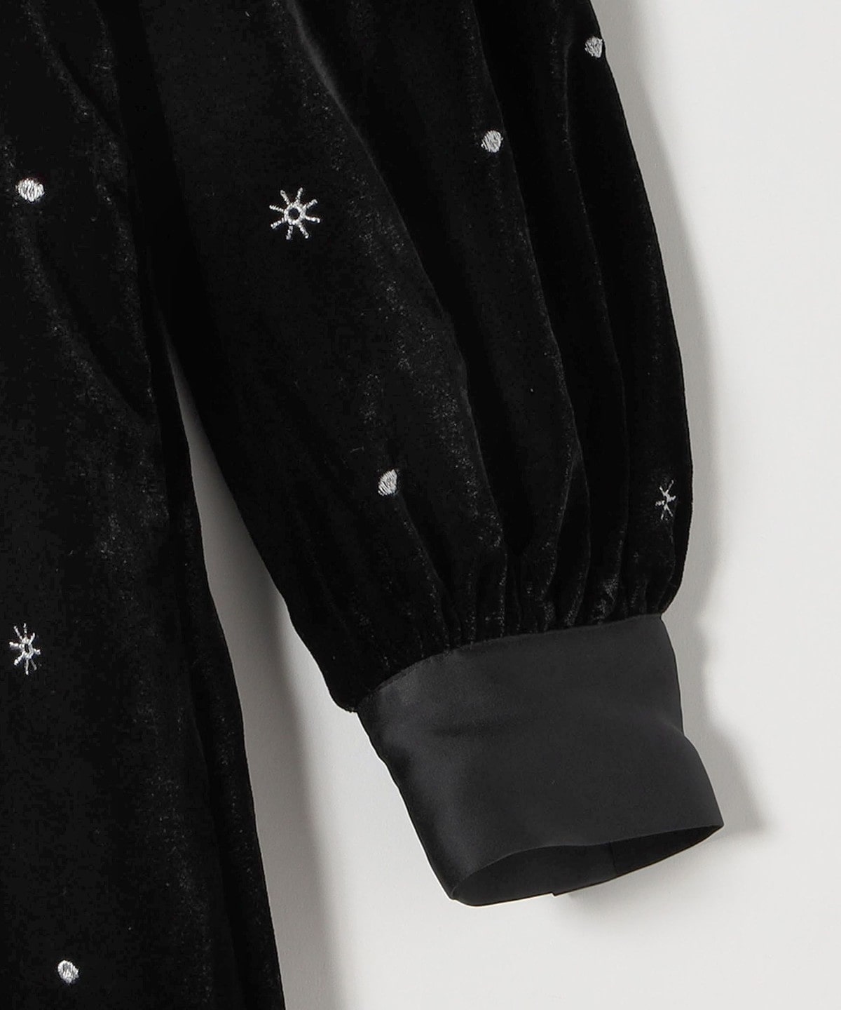13. 《予約》SHIPS any:〈手洗い可能〉ポリエステル ベロア 刺繍 タック フレア ワンピース