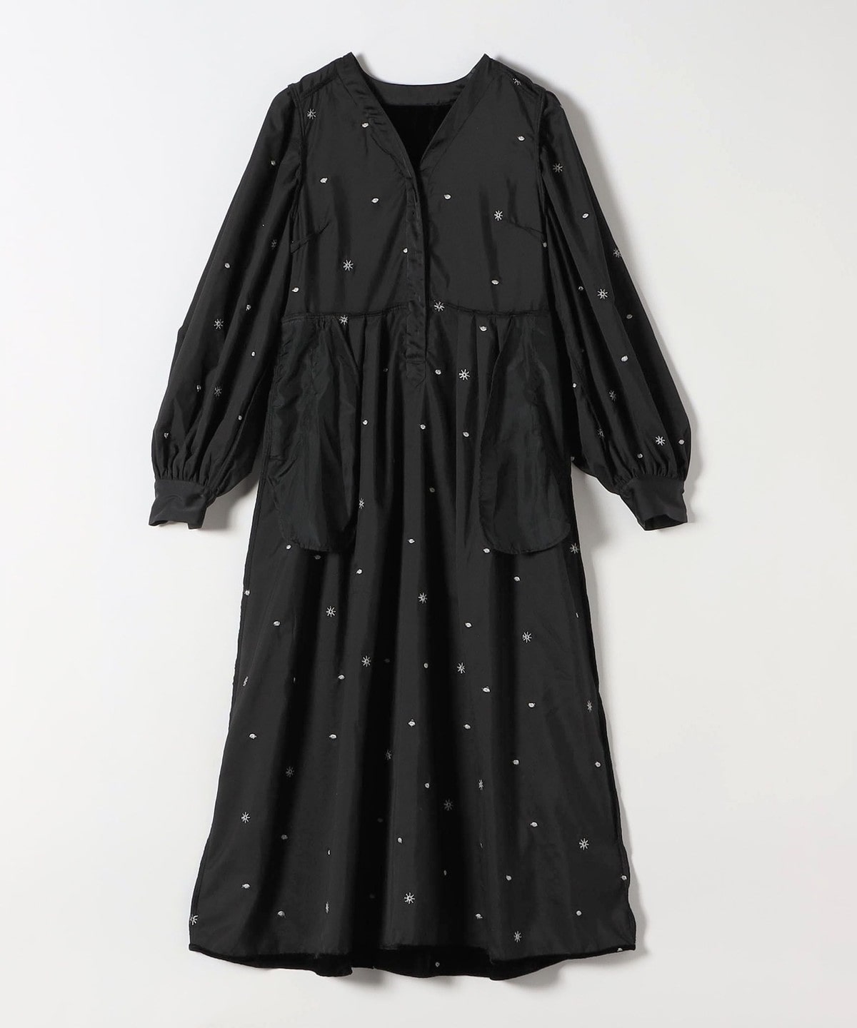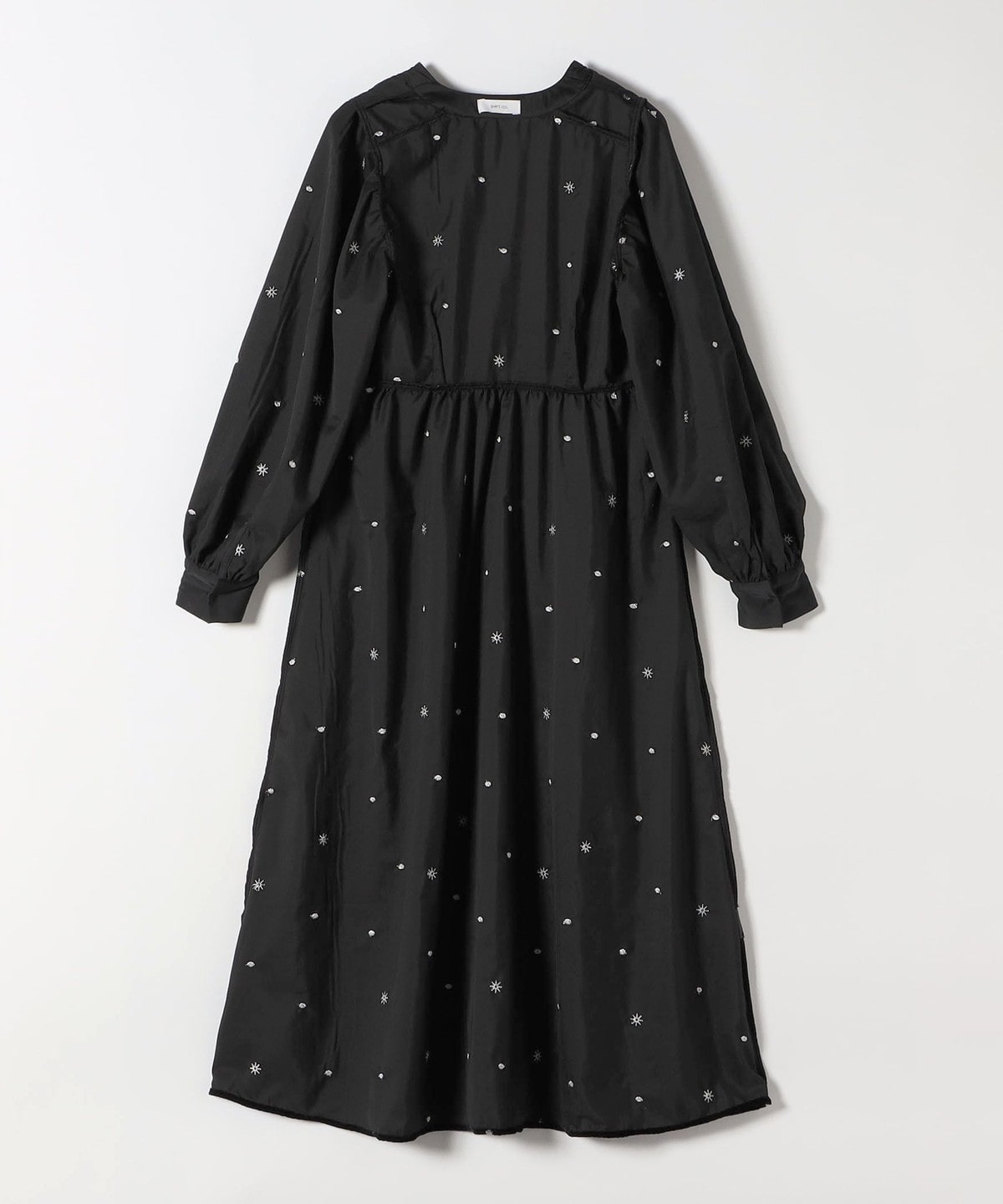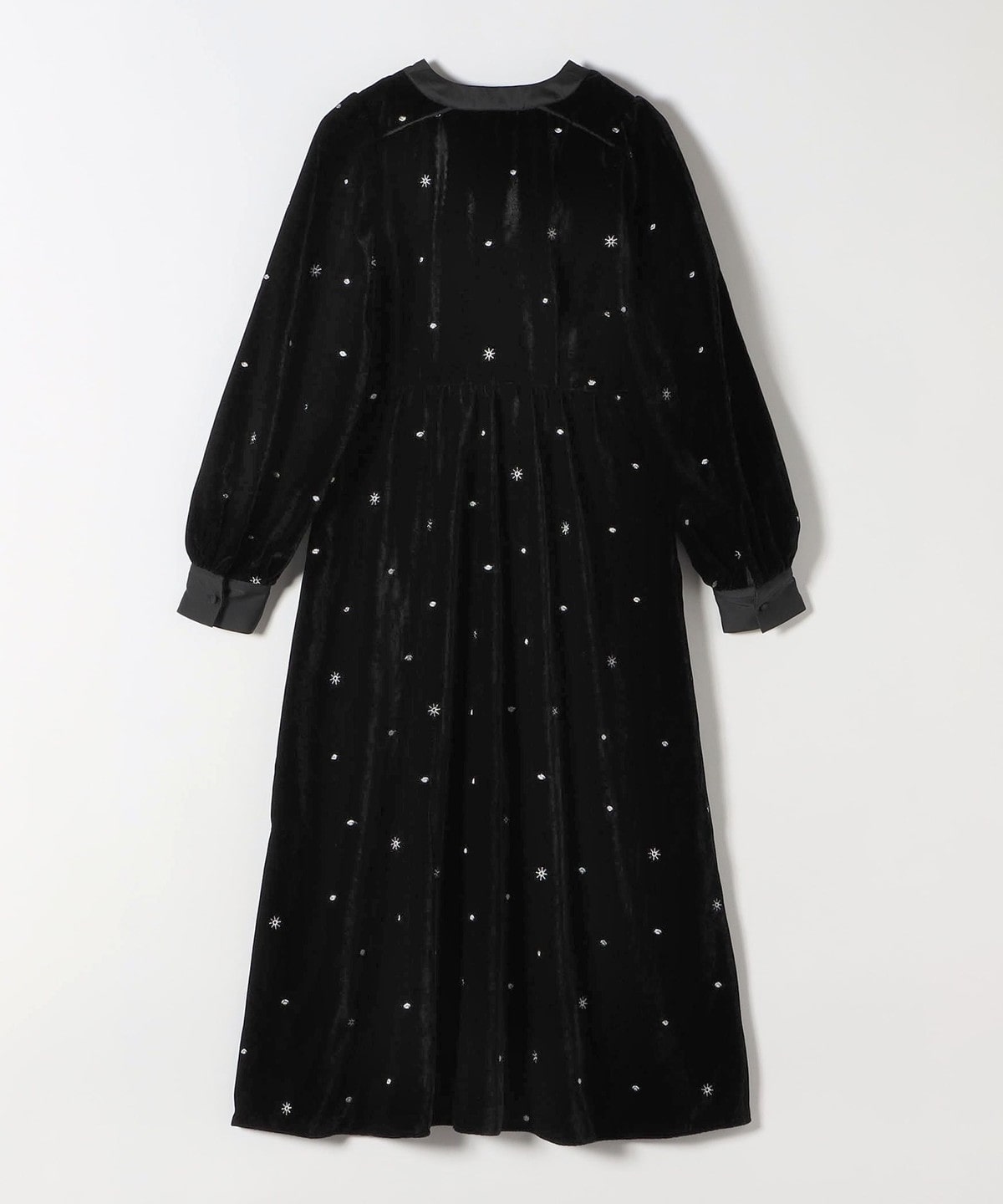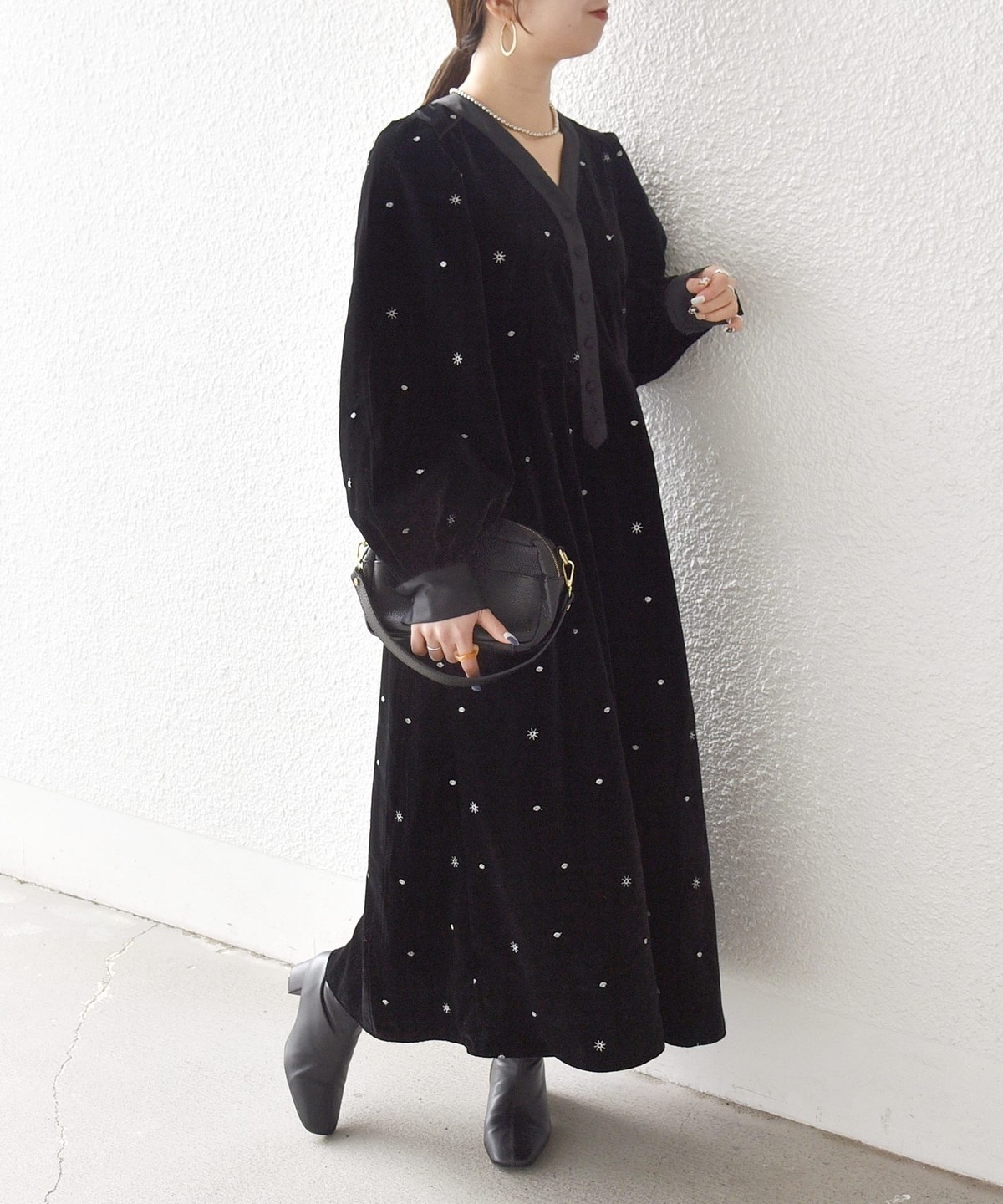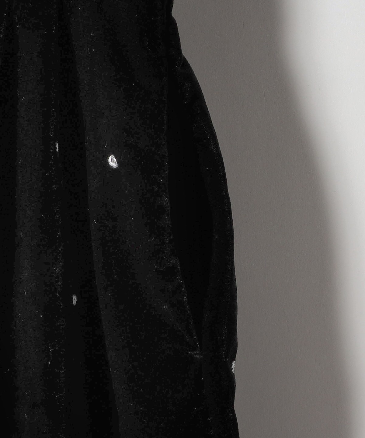1. 《予約》SHIPS any:〈手洗い可能〉ポリエステル ベロア 刺繍 タック フレア ワンピース ブラック