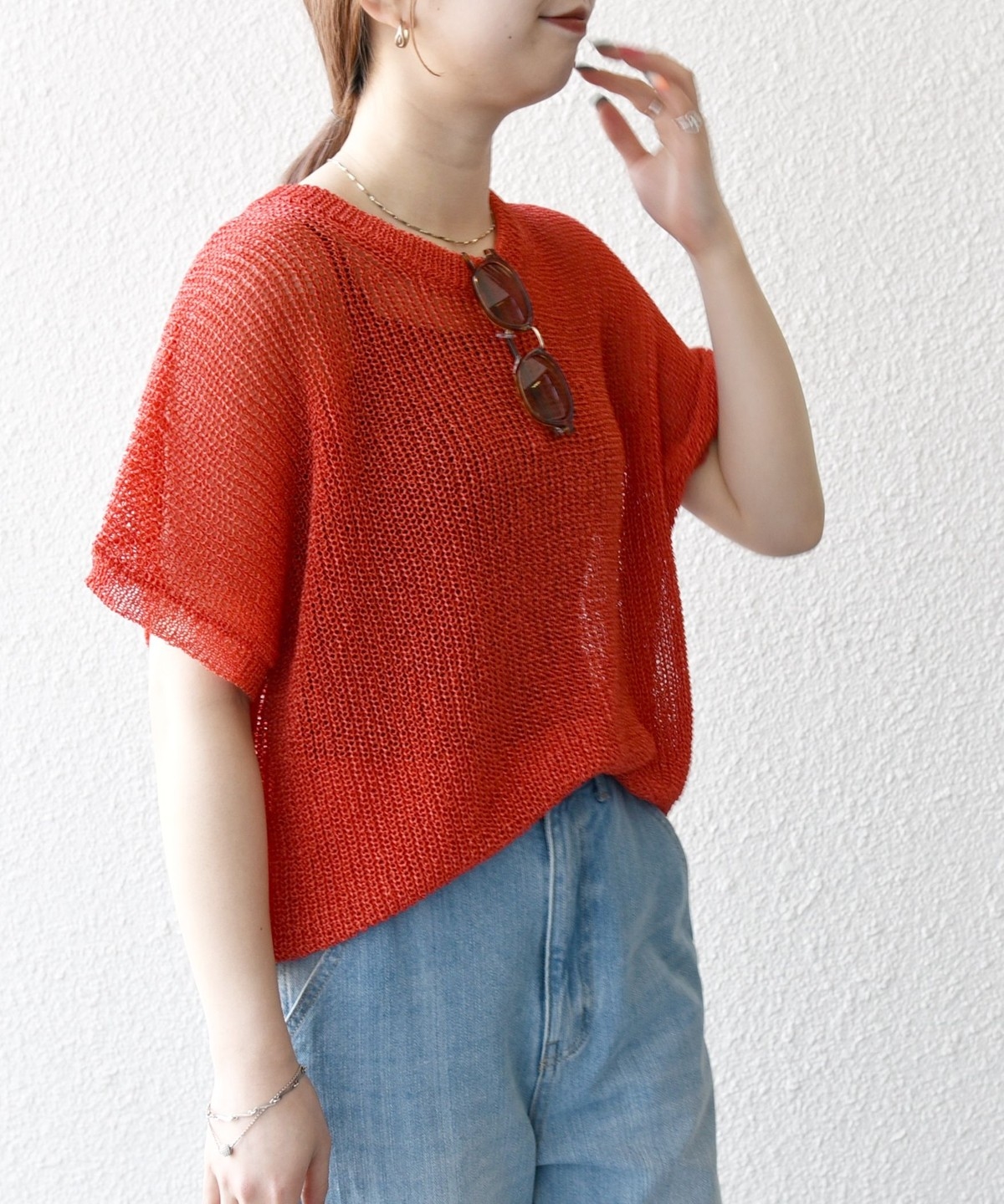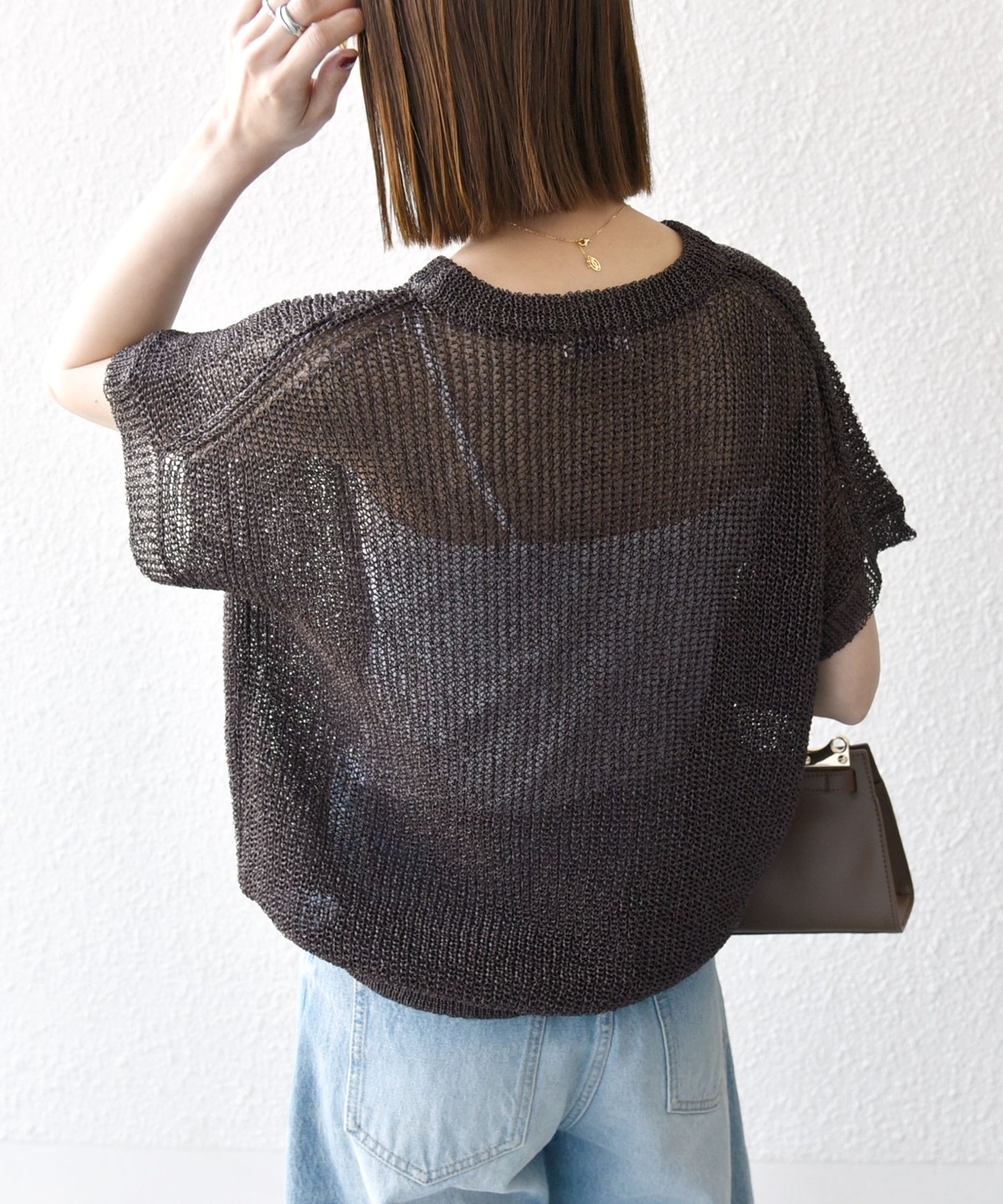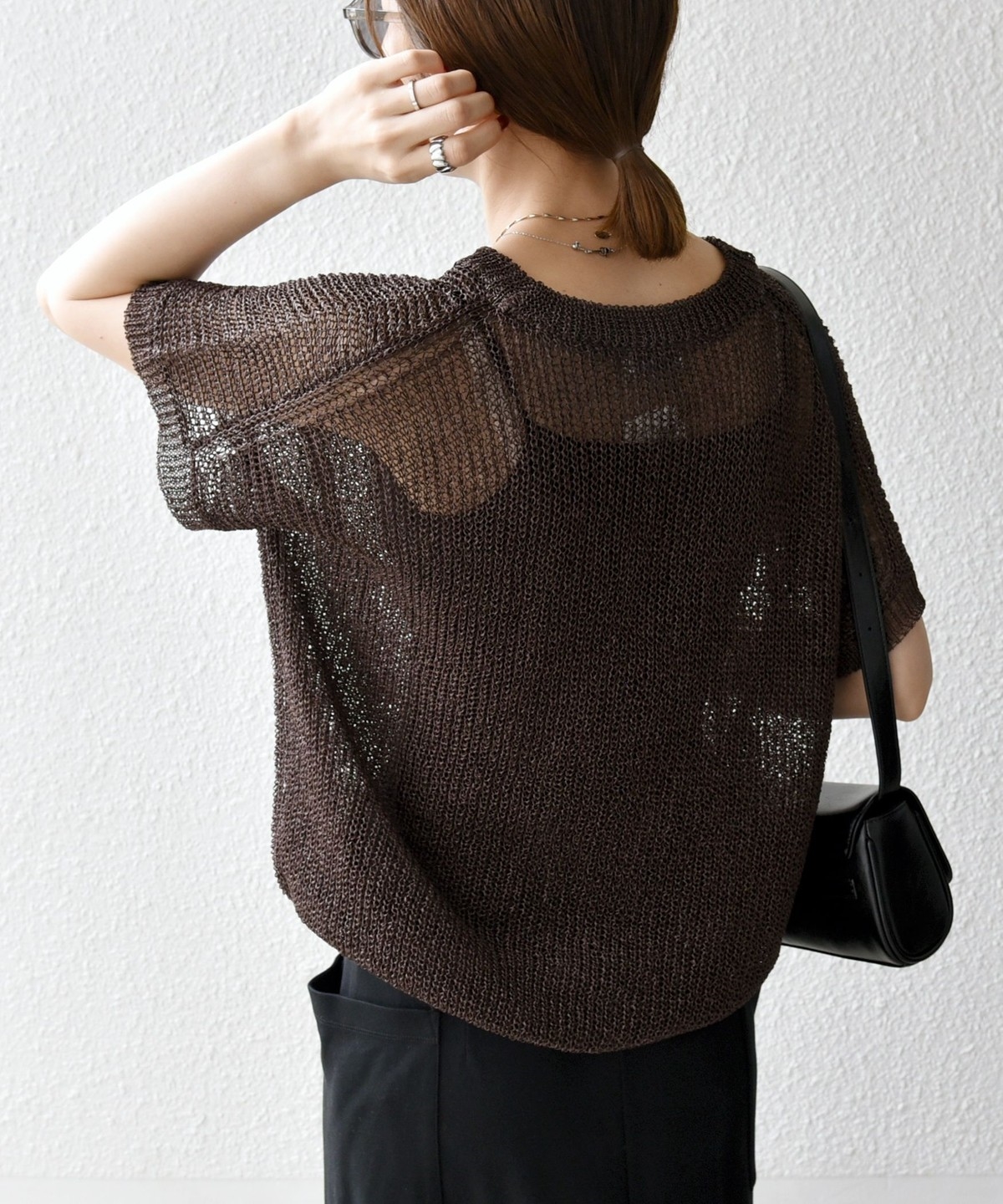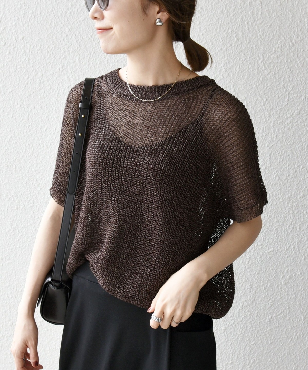 首元は開きすぎないクルーネックで、シアー素材ながらも安心感があって◎