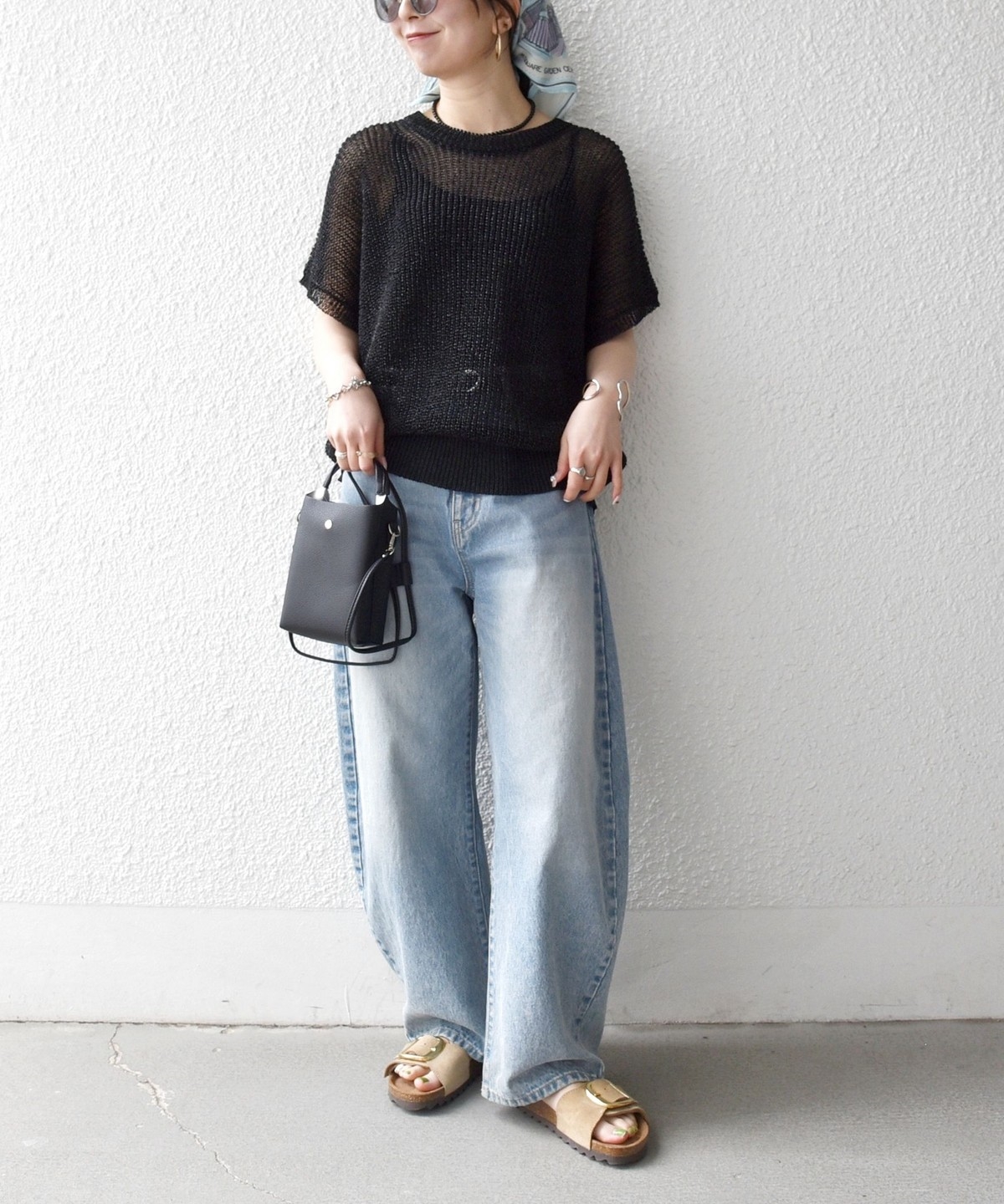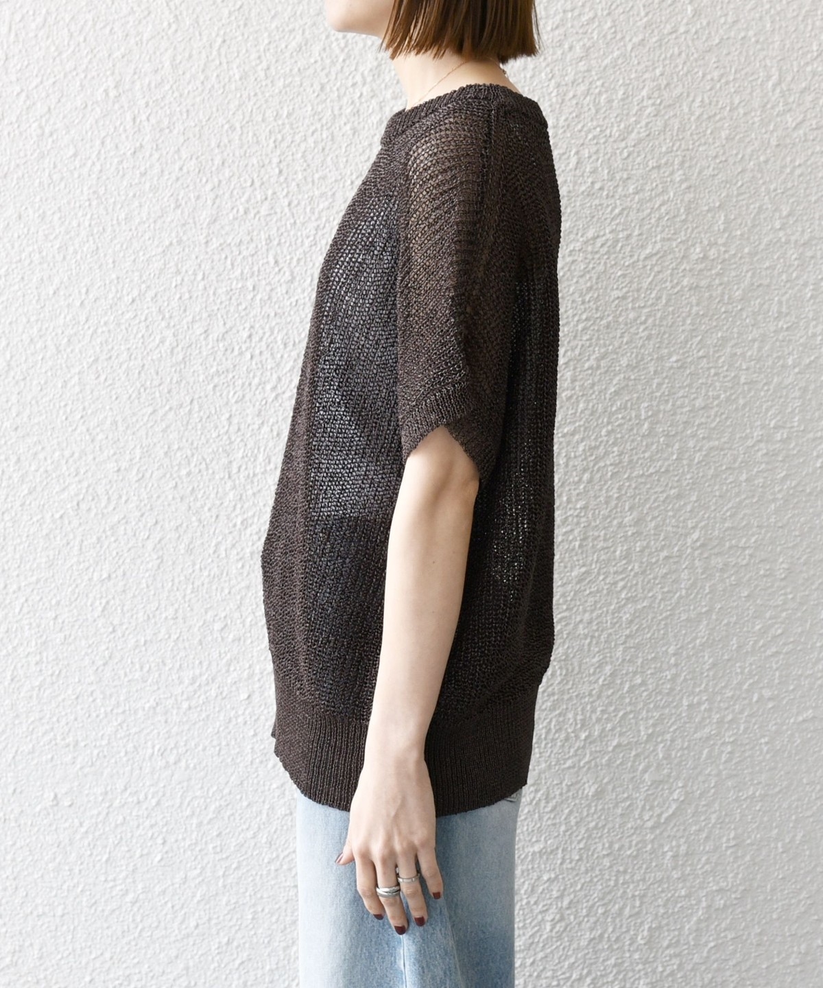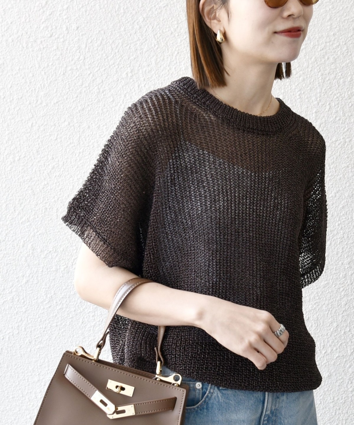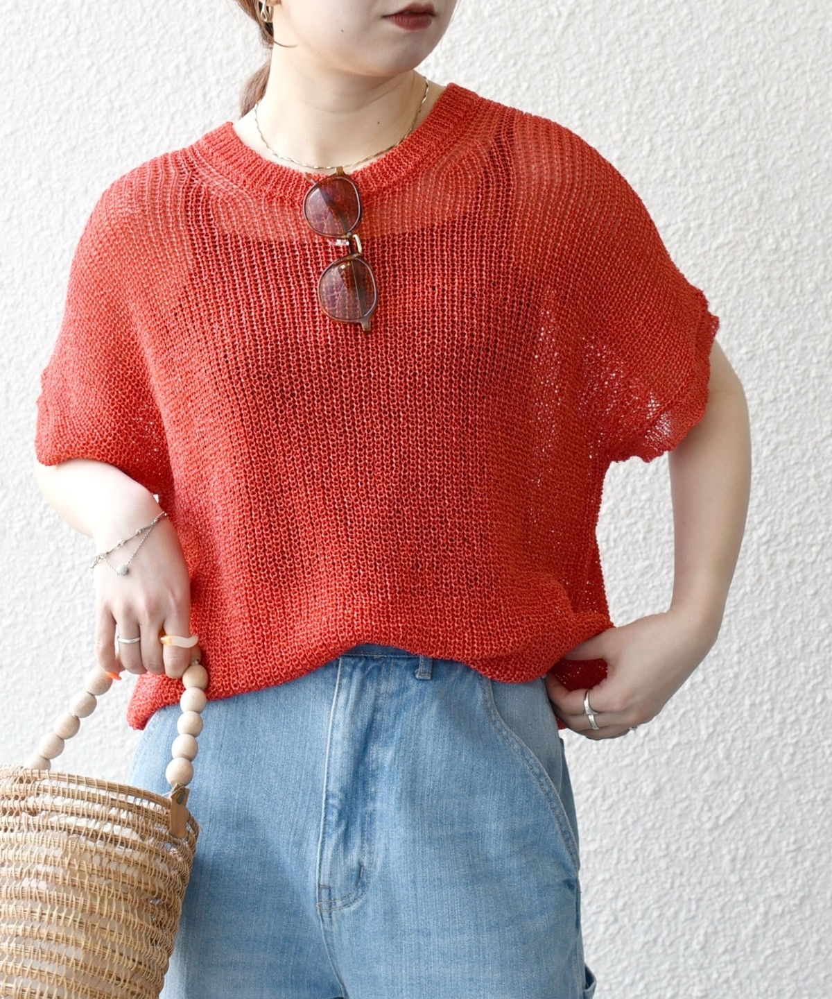 首元は開きすぎないクルーネックで、シアー素材ながらも安心感があって◎