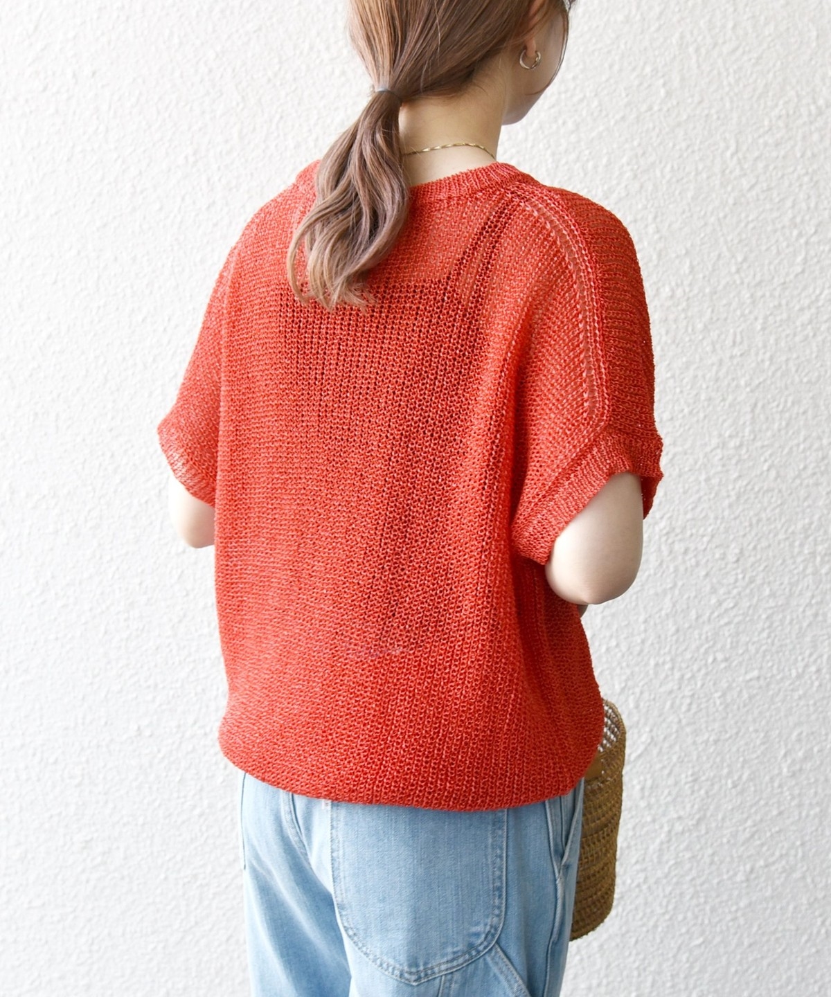ポリエステルの糸に擬麻加工した糸を使用して編んだ素材。