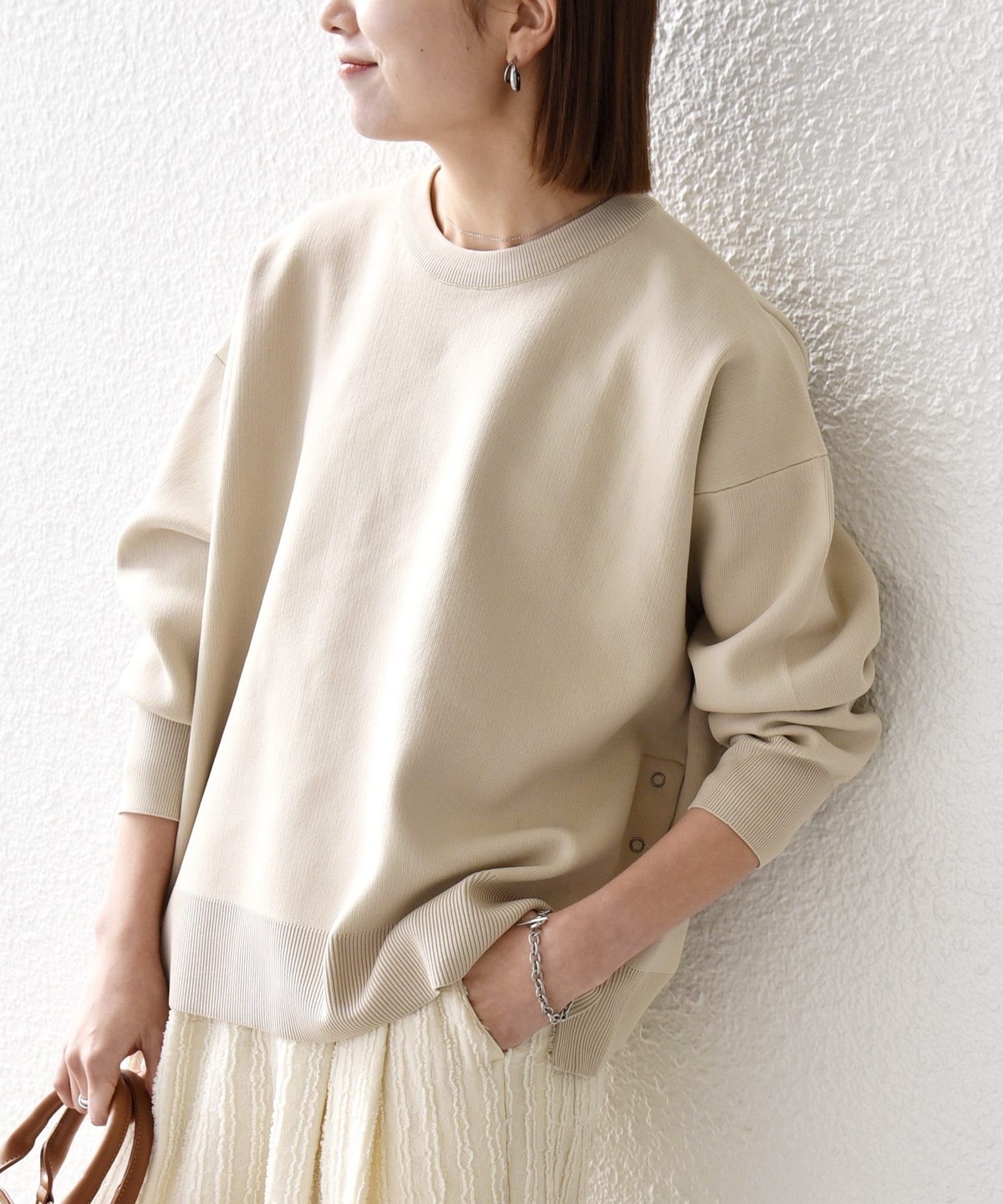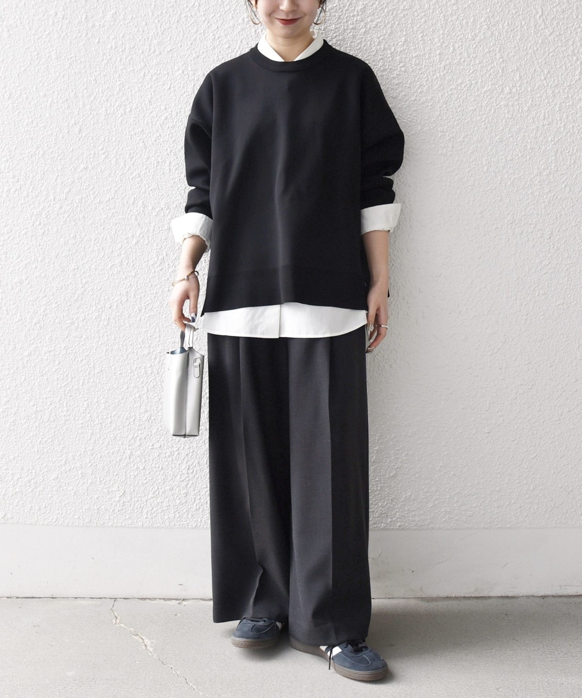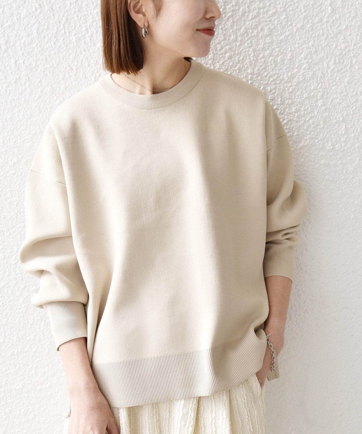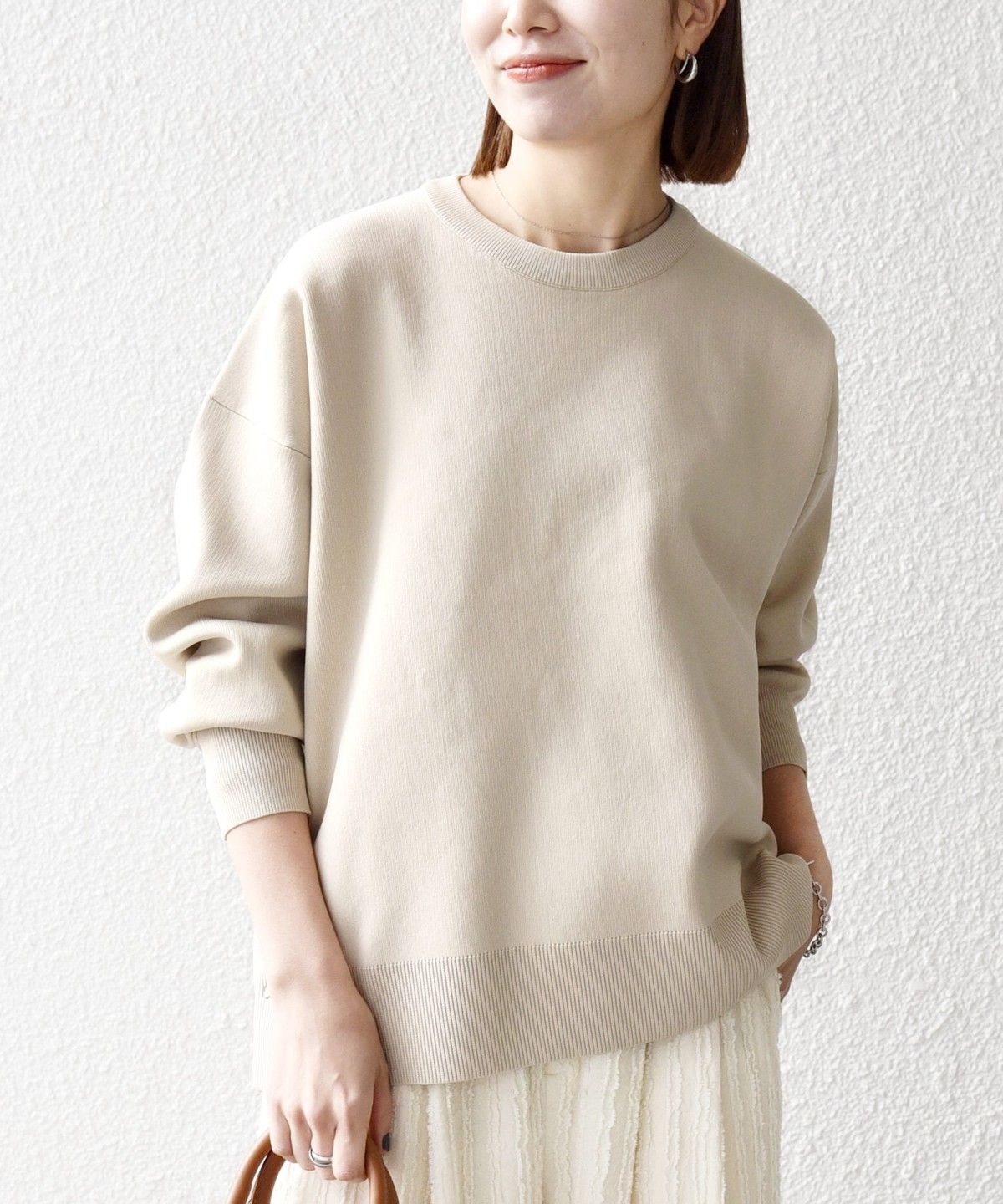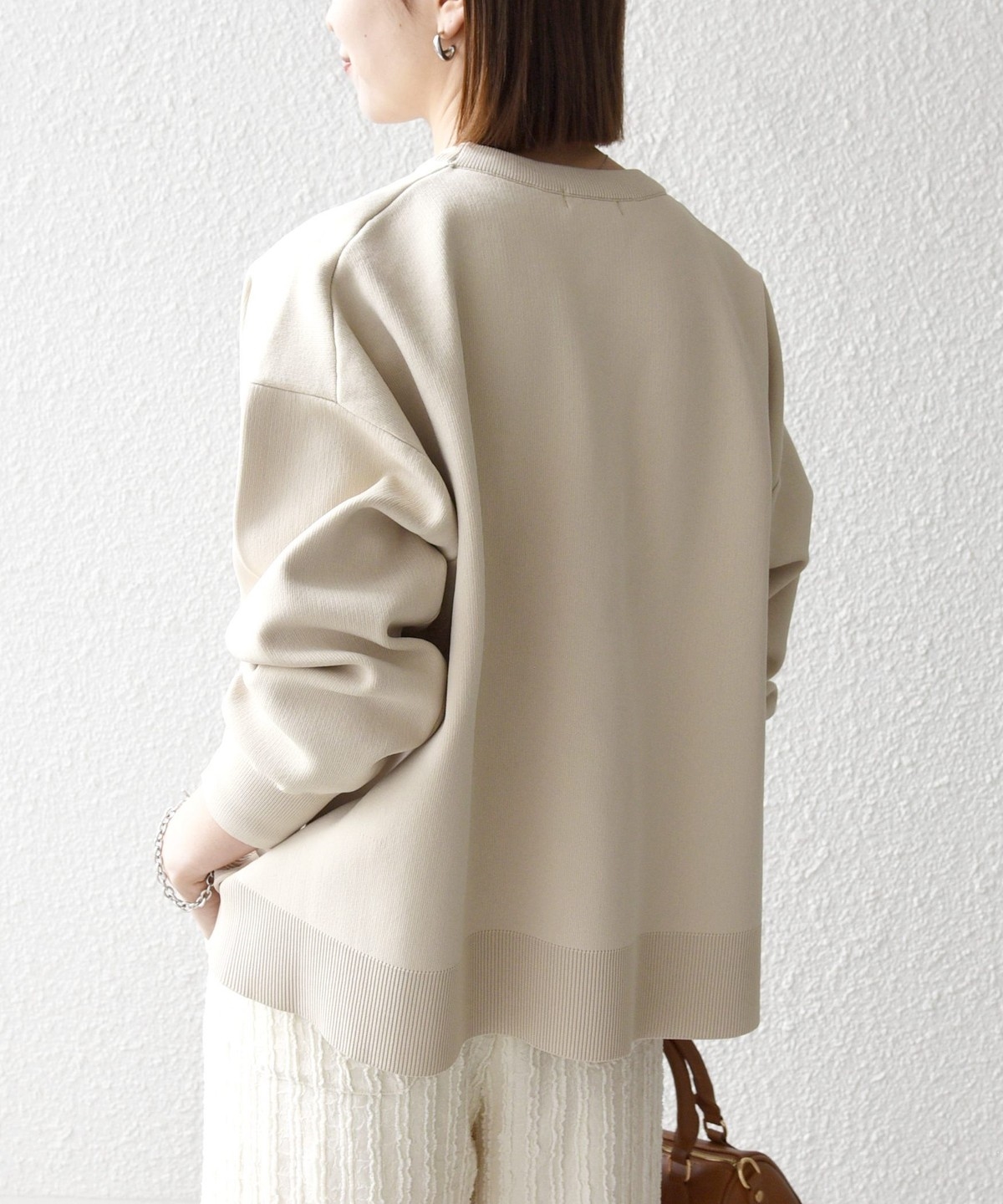 ややハリのある素材で、スウェットのようなリラックス感がありつつも上品に決まる、大人カジュアルにぴったりの一枚です。