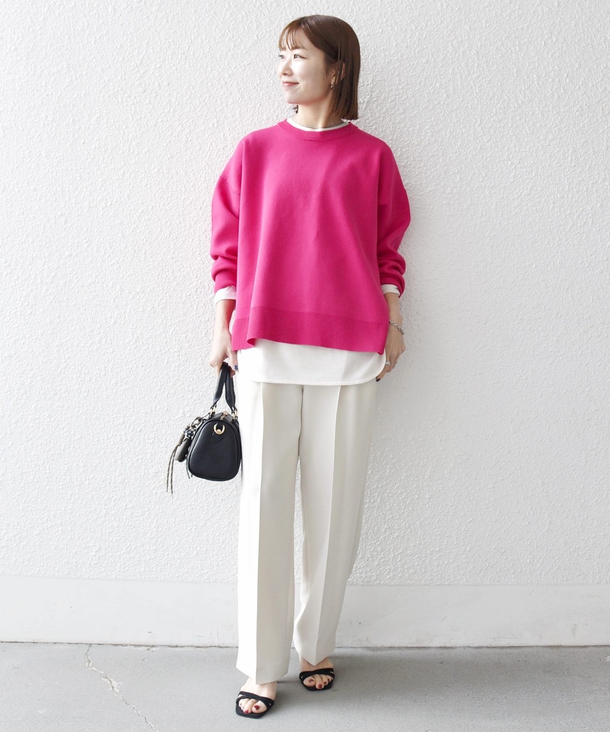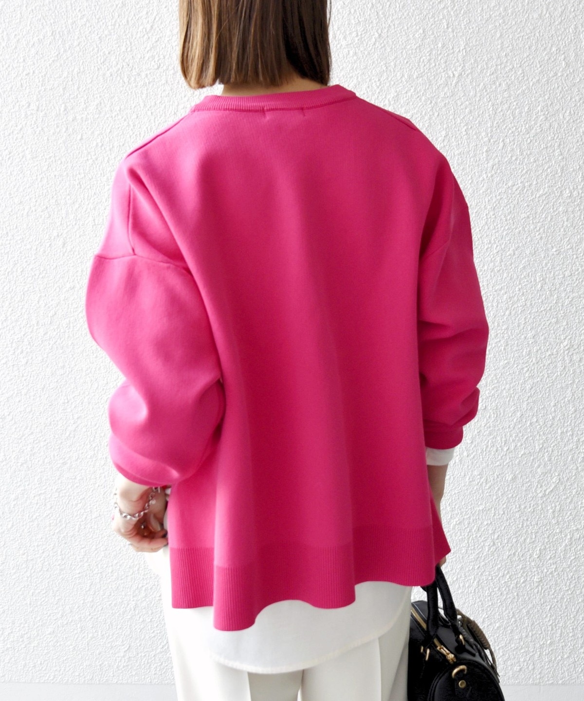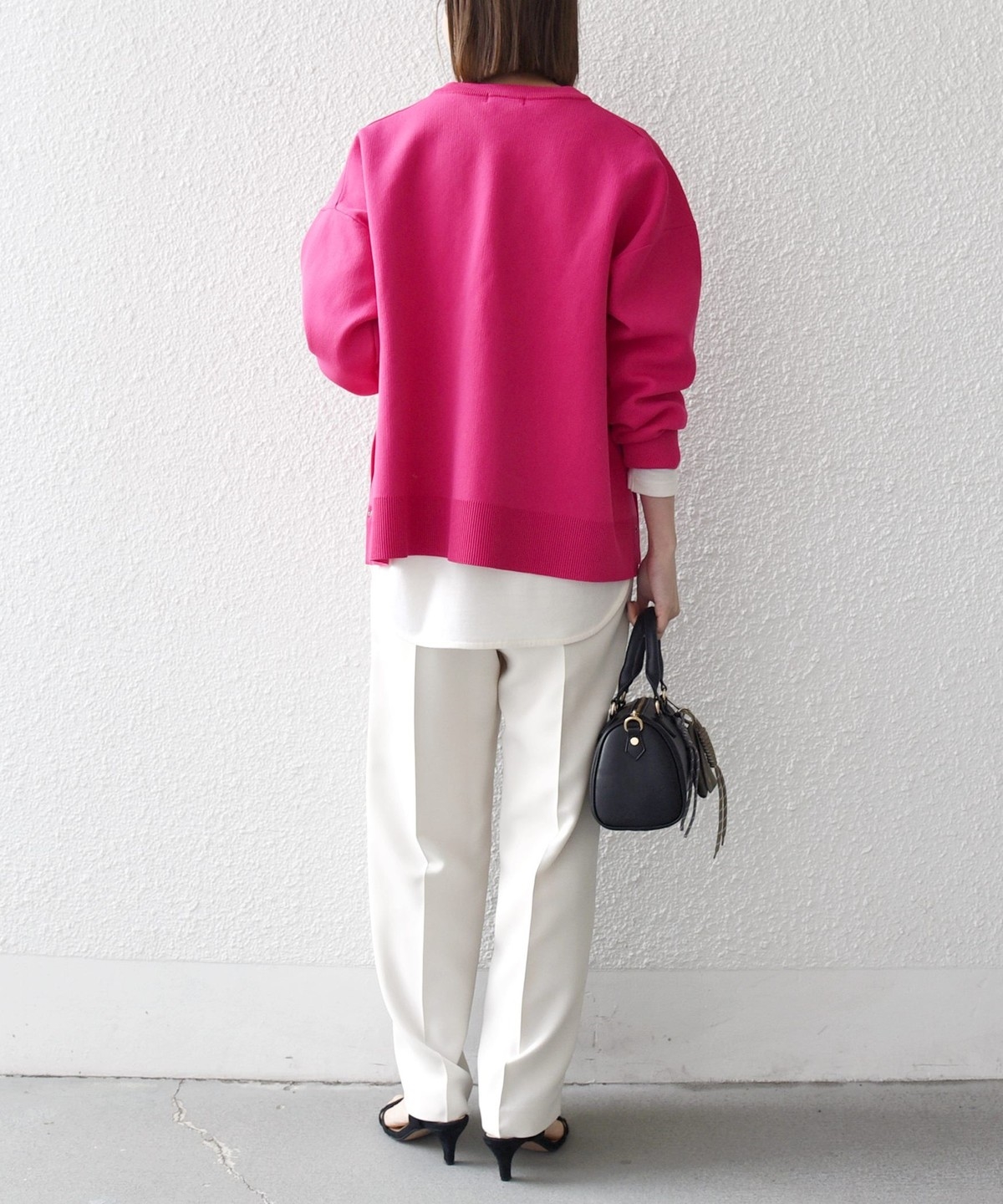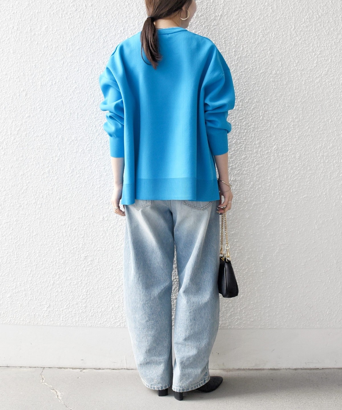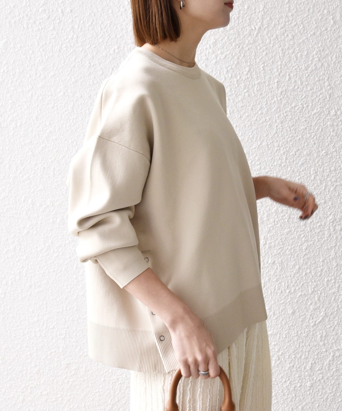 ややハリのある素材で、スウェットのようなリラックス感がありつつも上品に決まる、大人カジュアルにぴったりの一枚です。