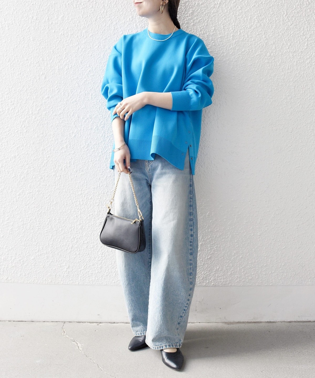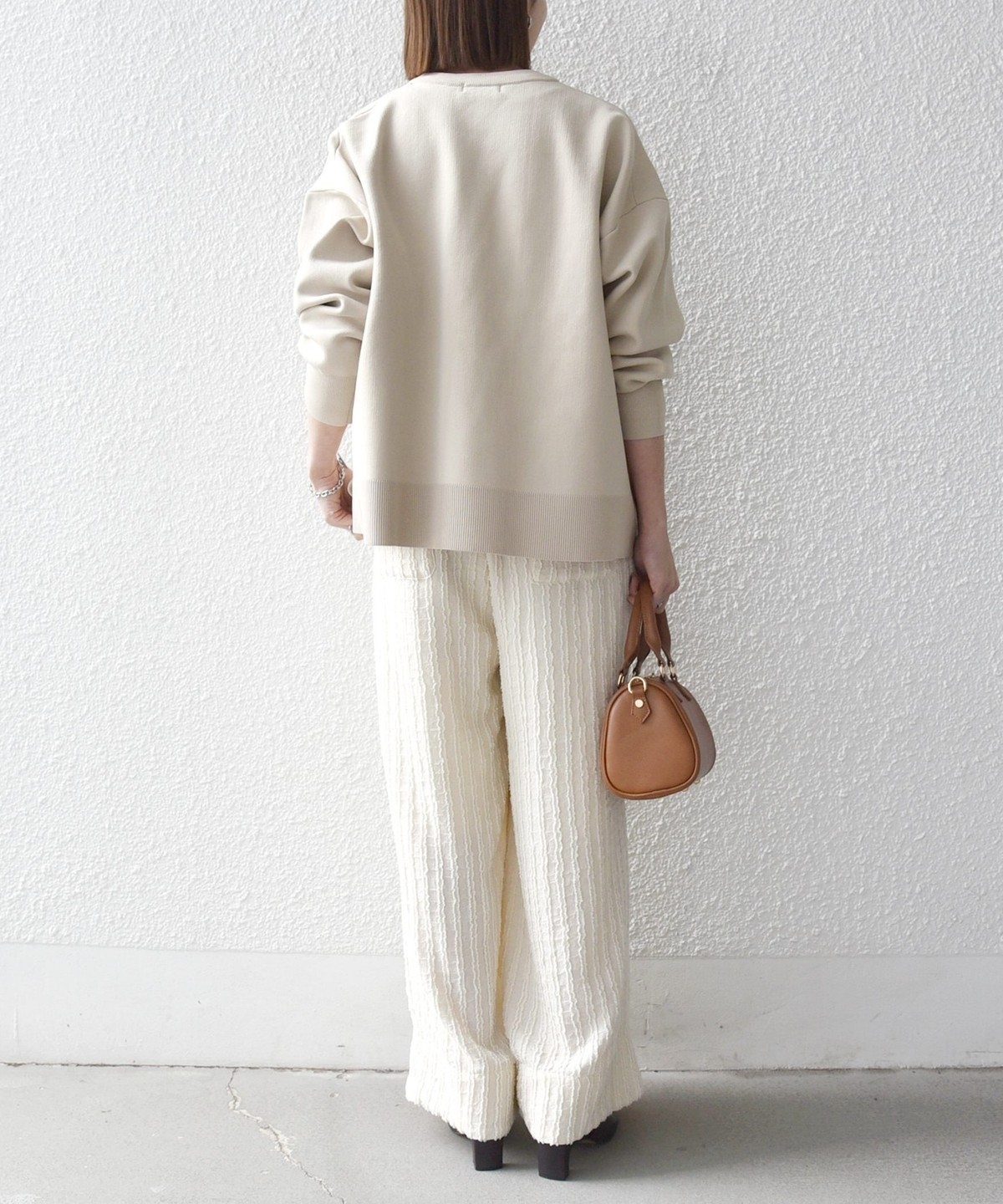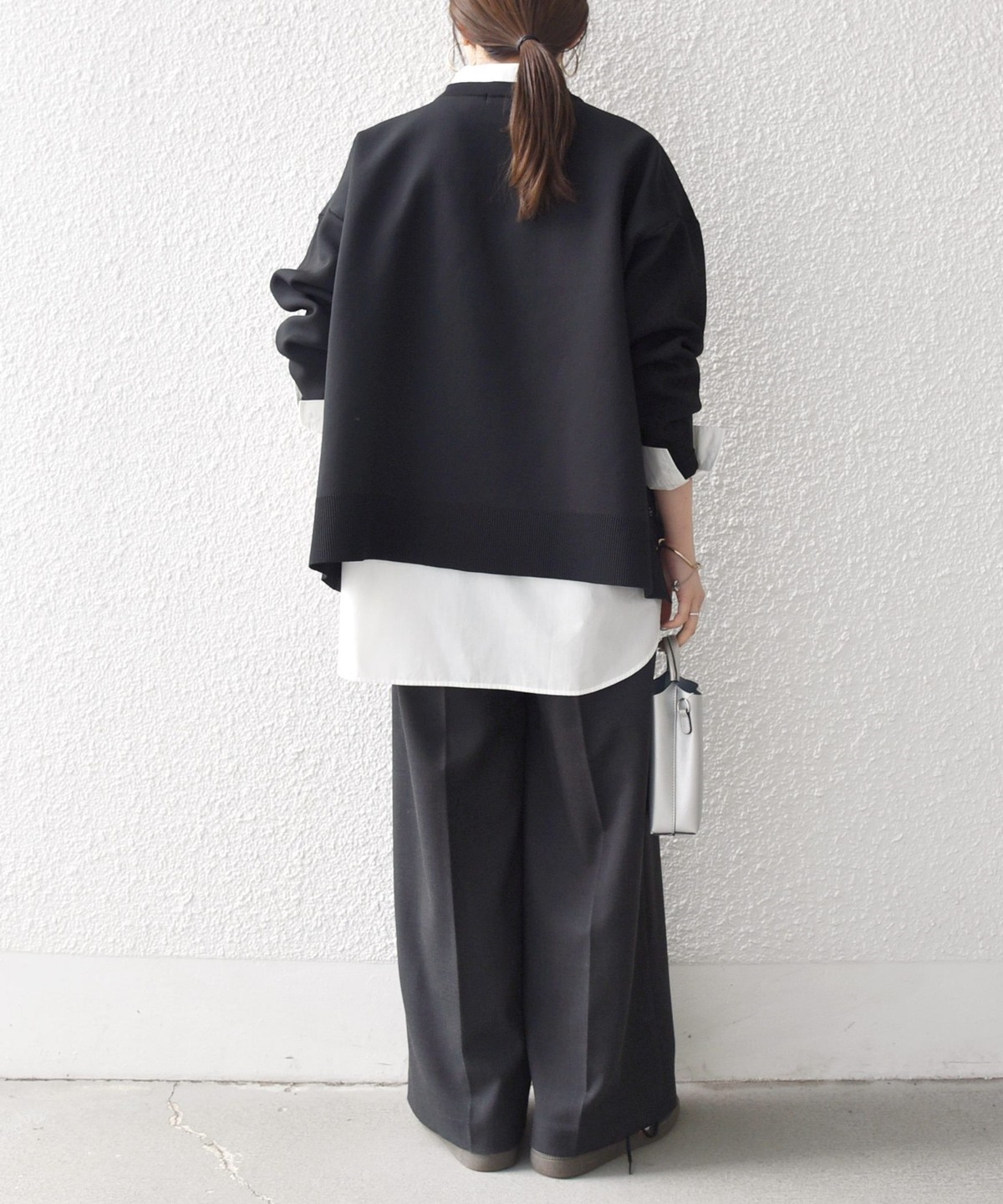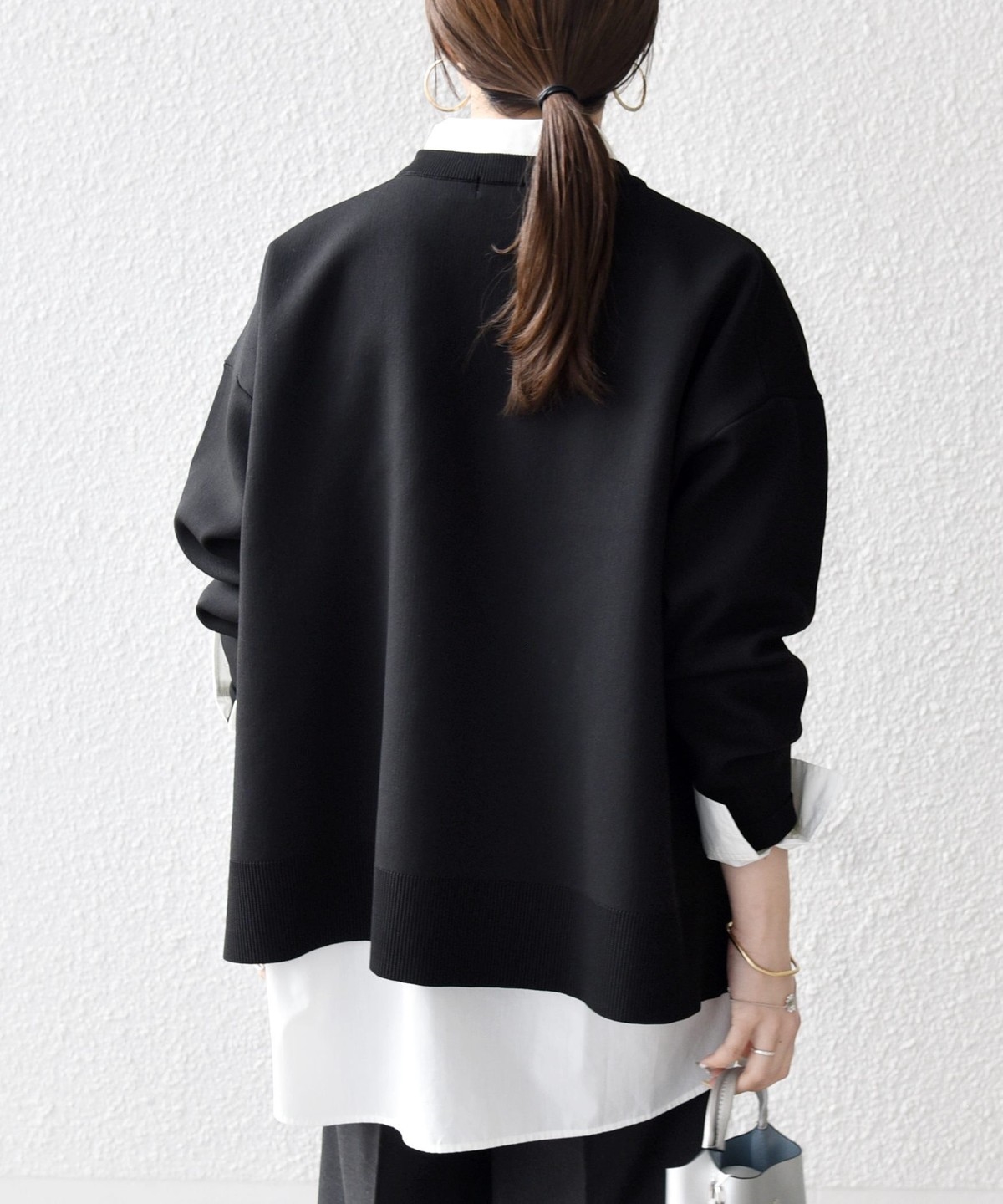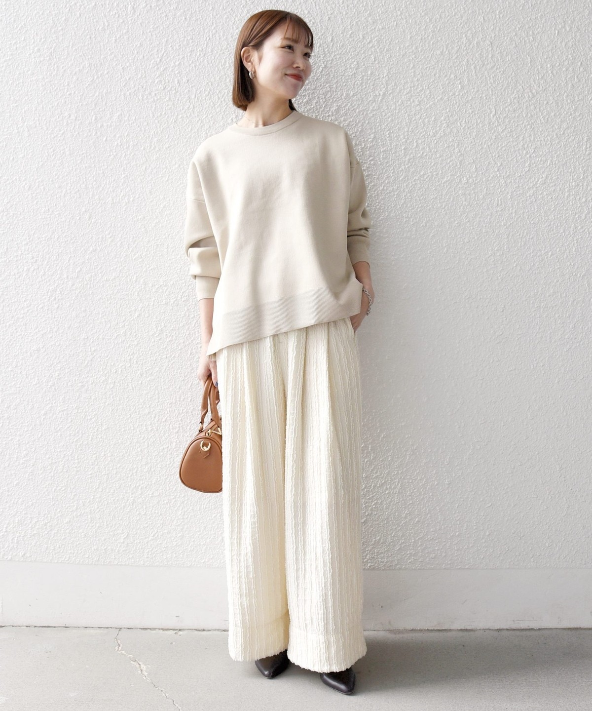 ややハリのある素材で、スウェットのようなリラックス感がありつつも上品に決まる、大人カジュアルにぴったりの一枚です。