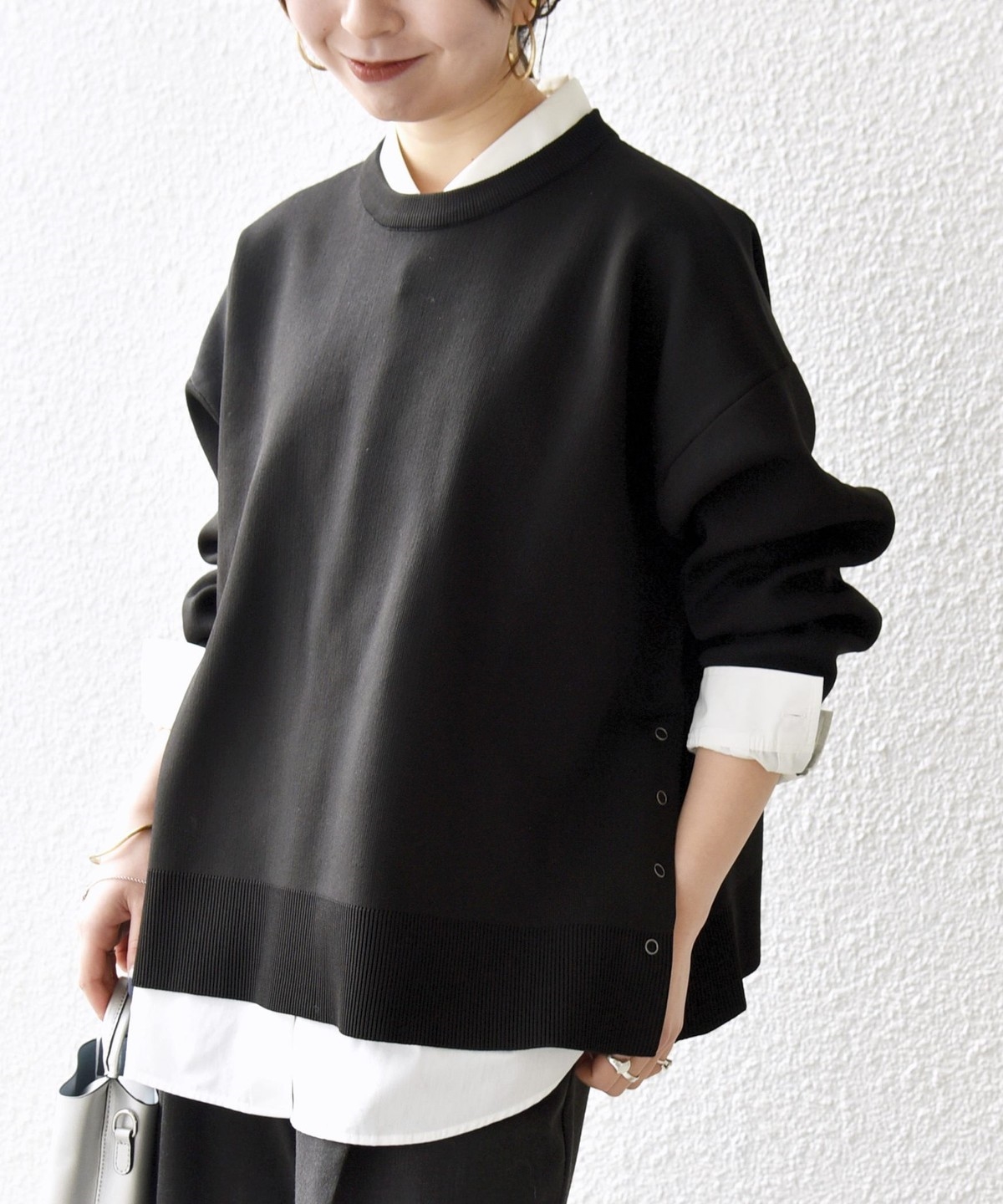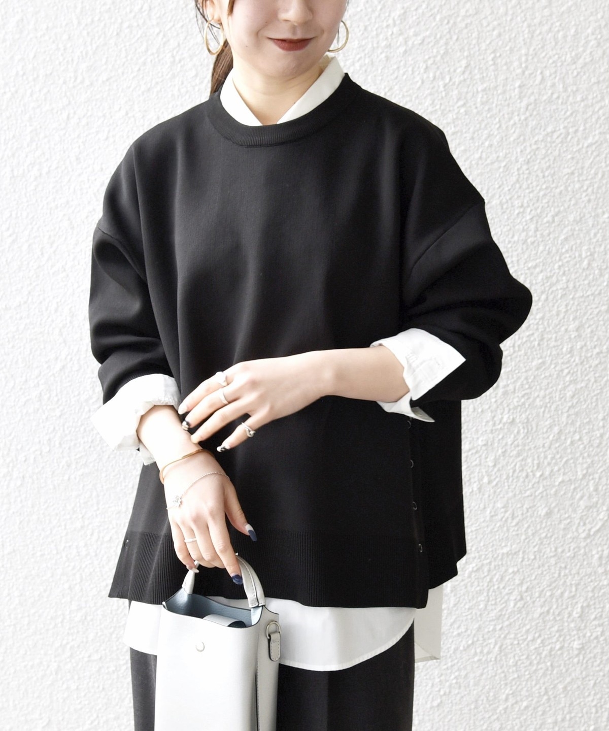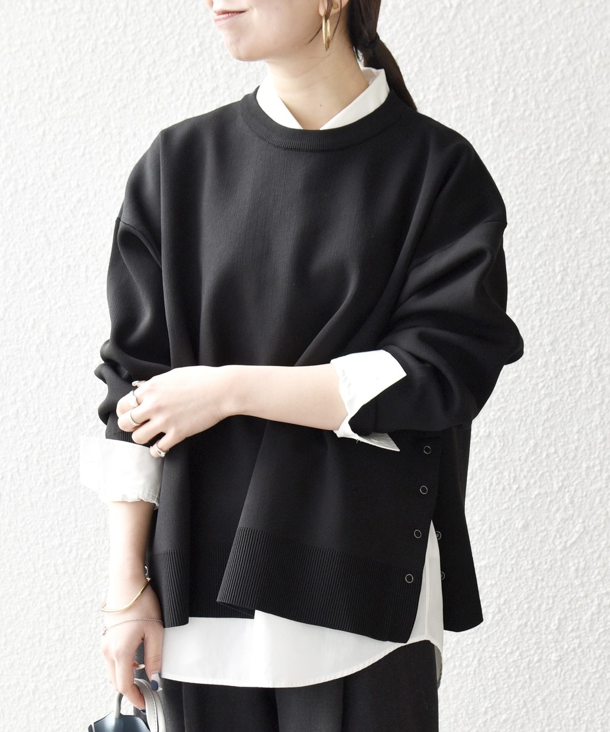身頃の両サイドにはスナップボタンを配し、スタイリングに合わせて開閉が可能です。