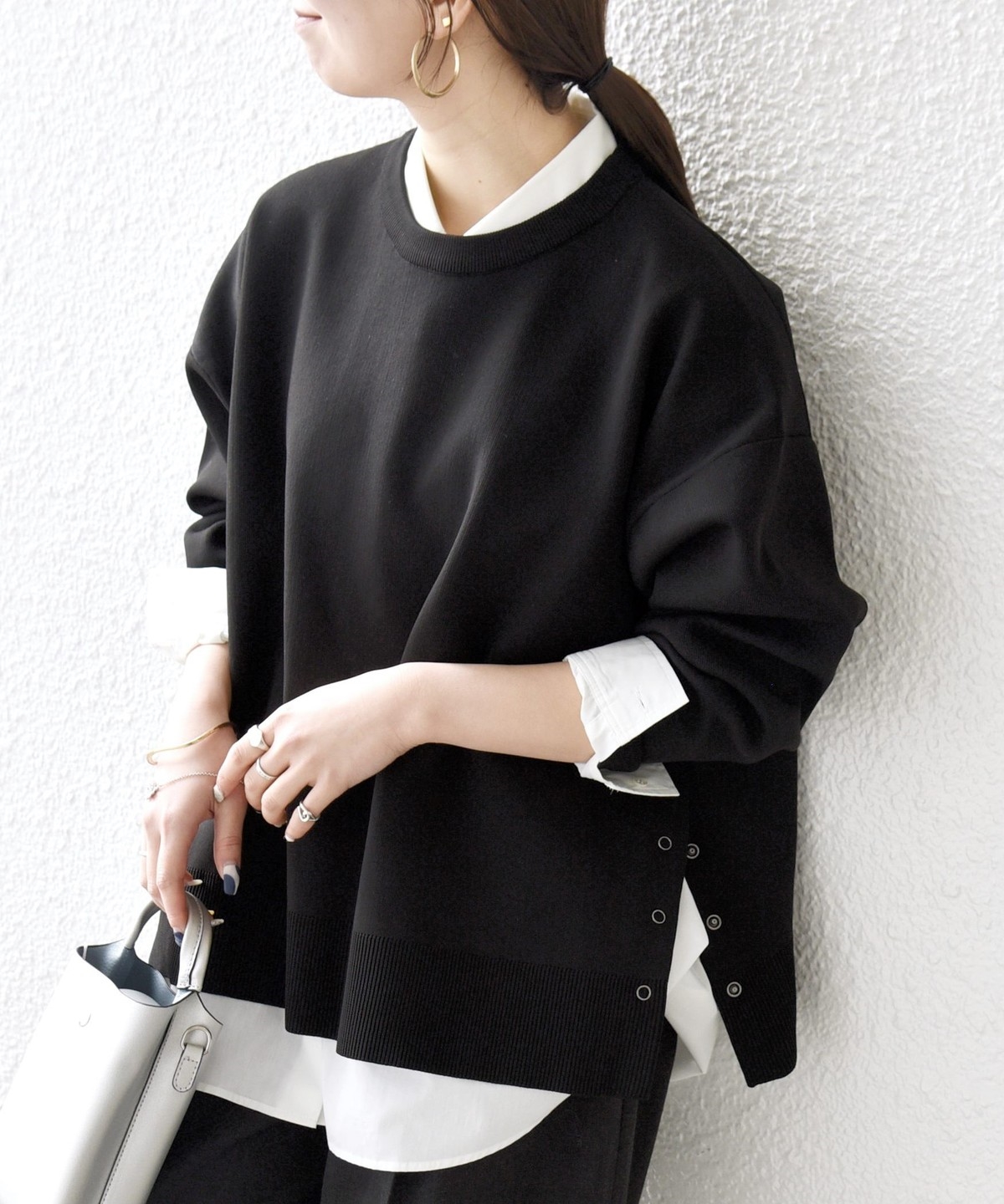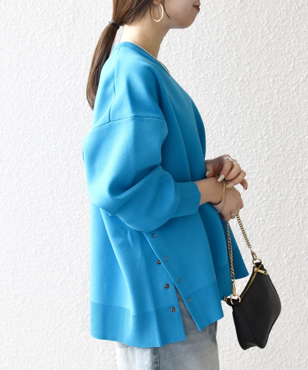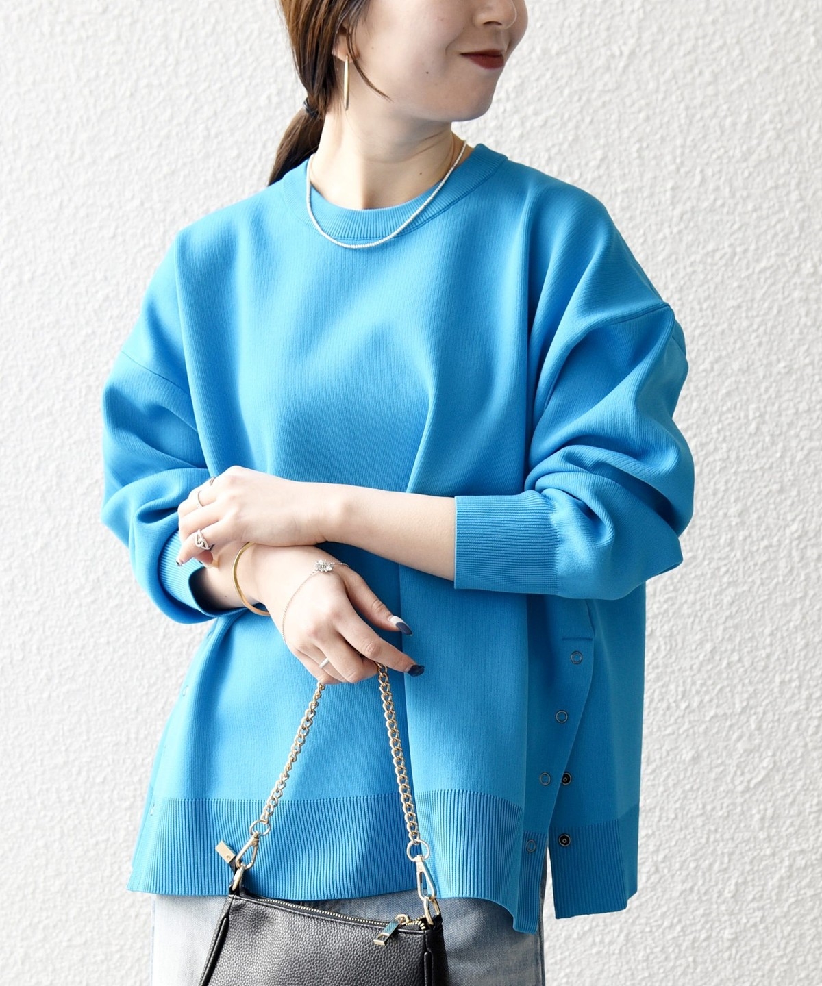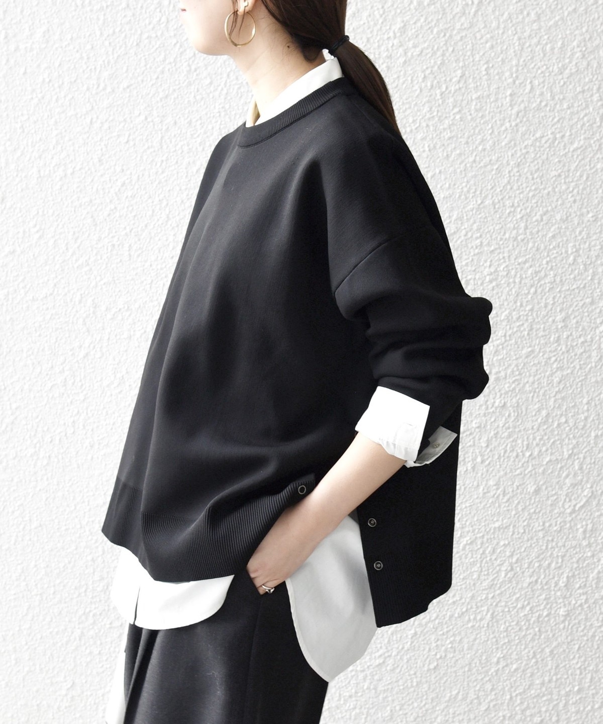 身頃の両サイドにはスナップボタンを配し、スタイリングに合わせて開閉が可能です。