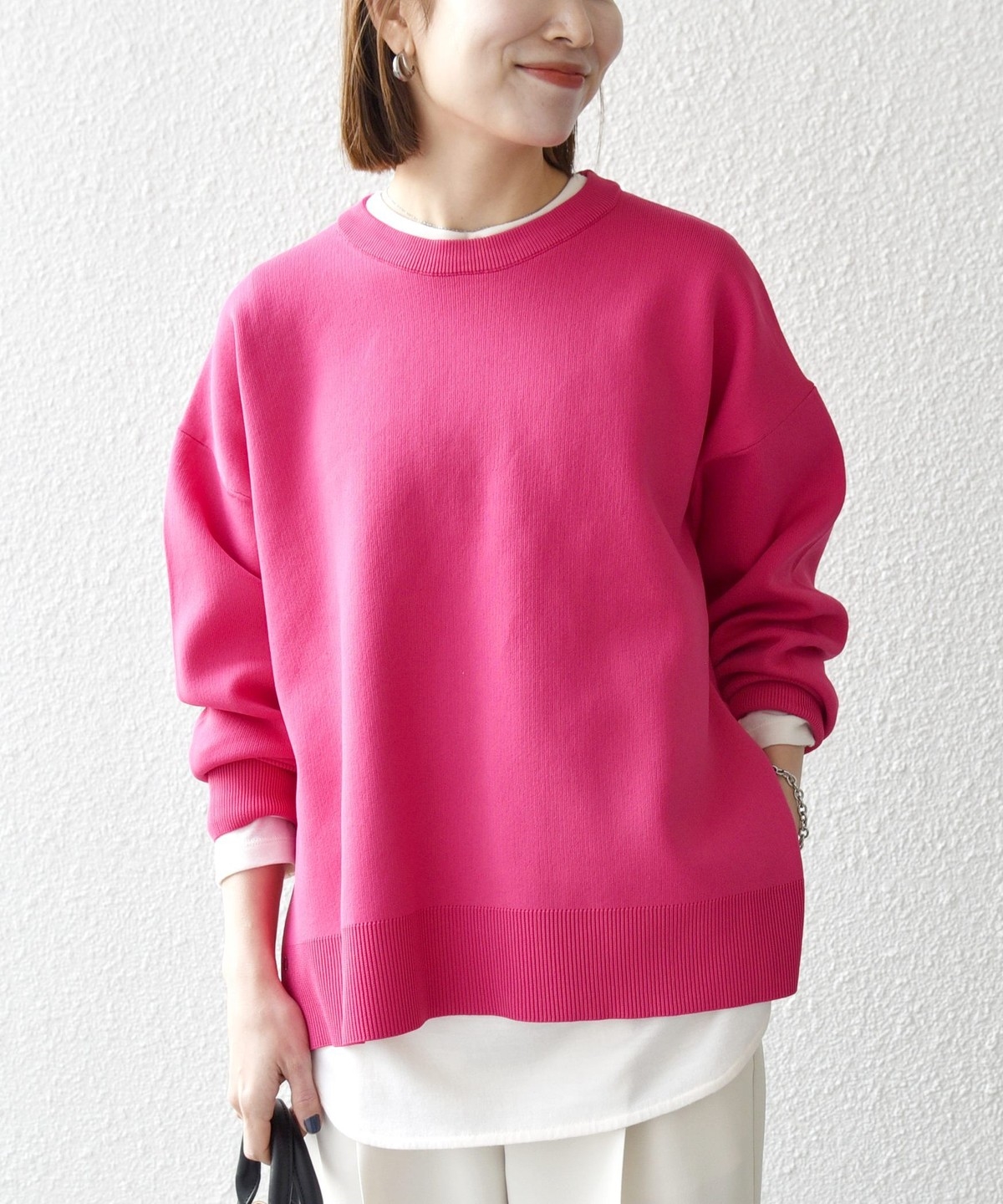 肩を落としたドロップショルダーと程よいゆとりのあるシルエットが魅力のニットプルオーバー。