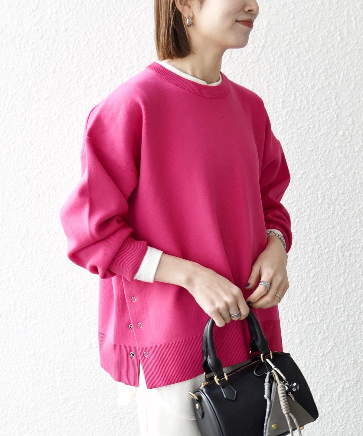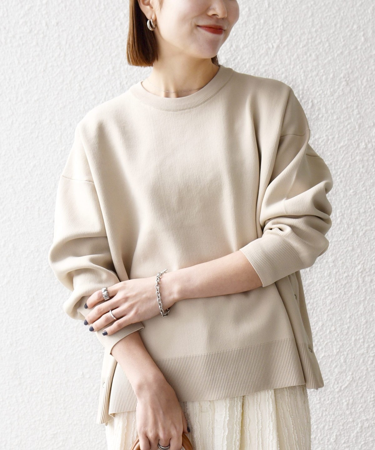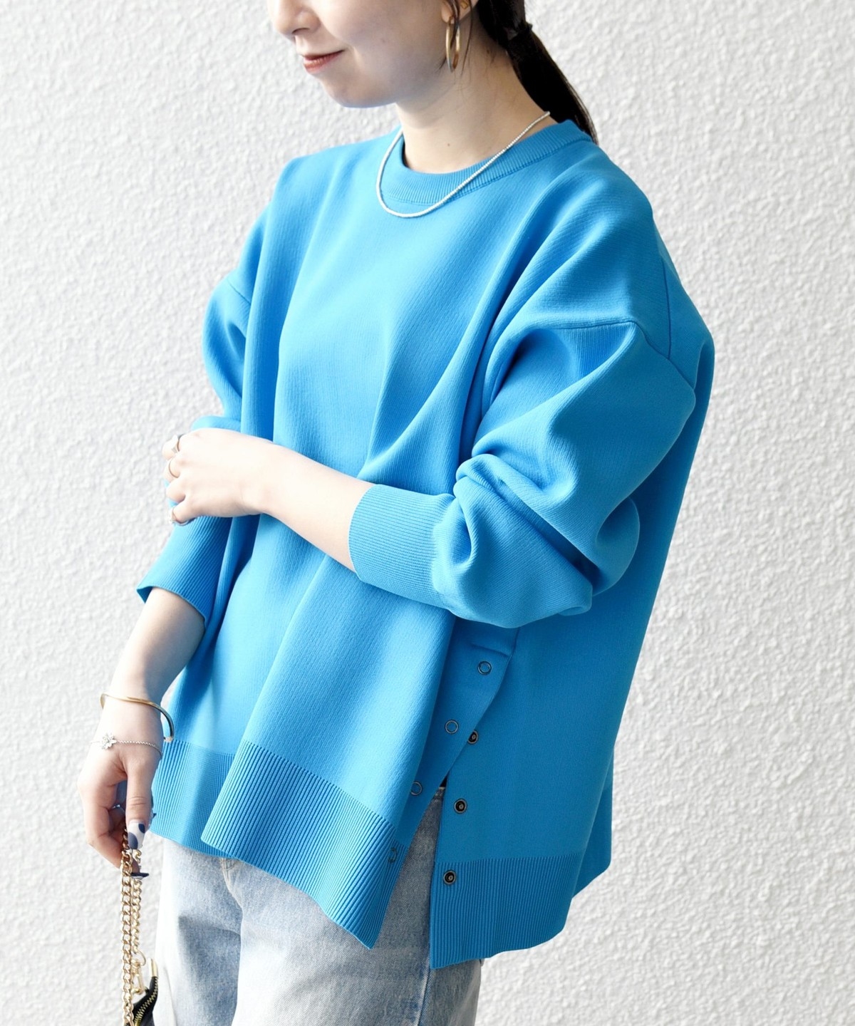 《予約》SHIPS any:〈手洗い可能〉サイドスリット クルーネック ルーズ プルオーバー