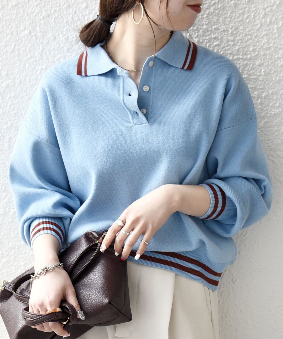 > > >  > 《予約》SHIPS any:〈手洗い可能〉コットン ミックス ライン ポロニット プルオーバー