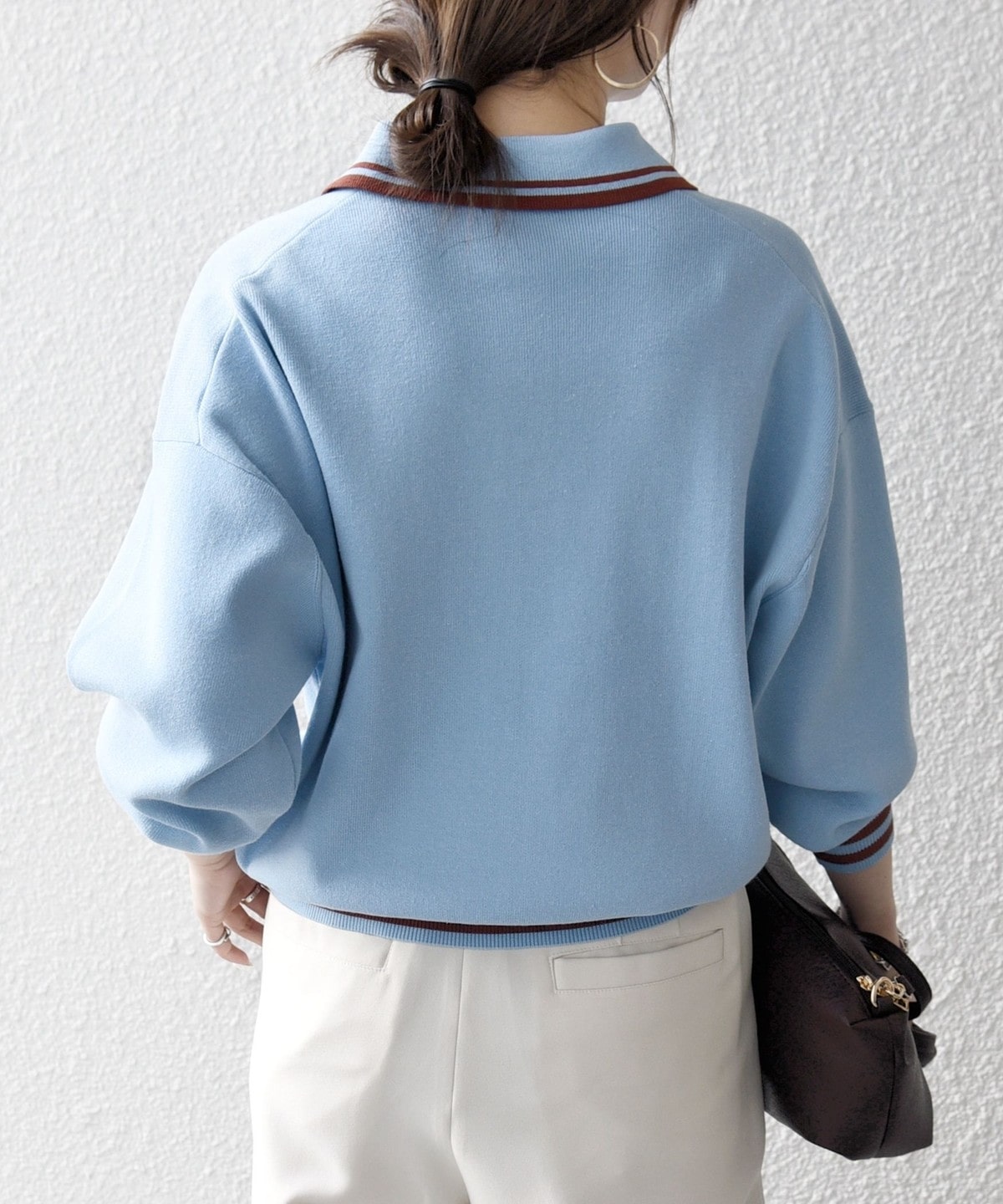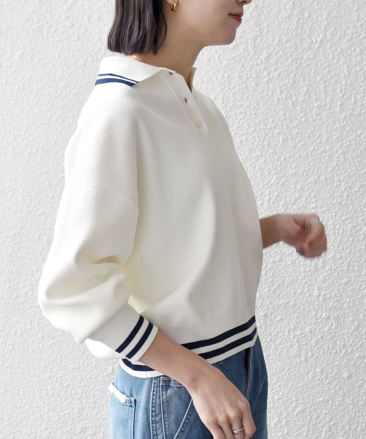 36. 《予約》SHIPS any:〈手洗い可能〉コットン ミックス ライン ポロニット プルオーバー