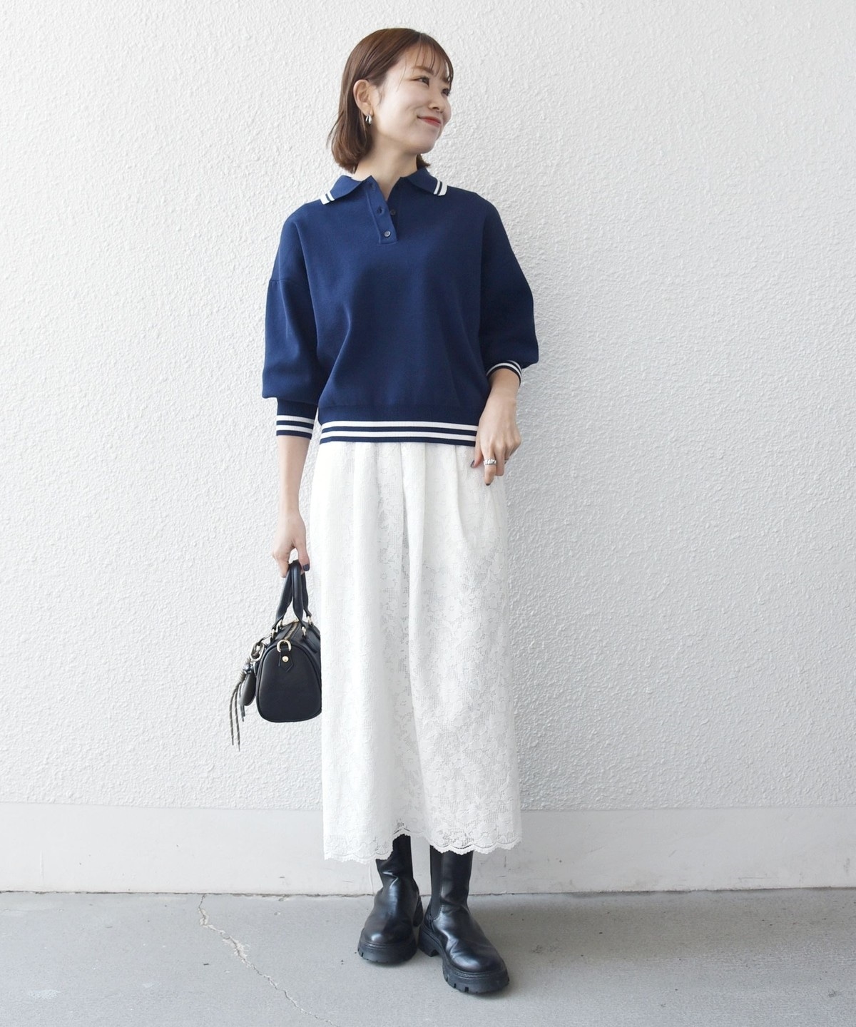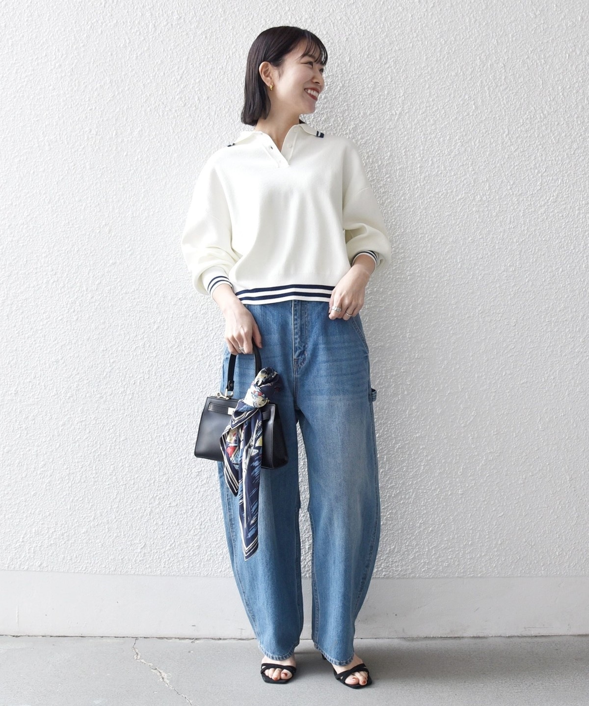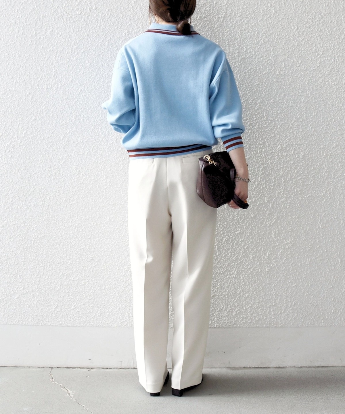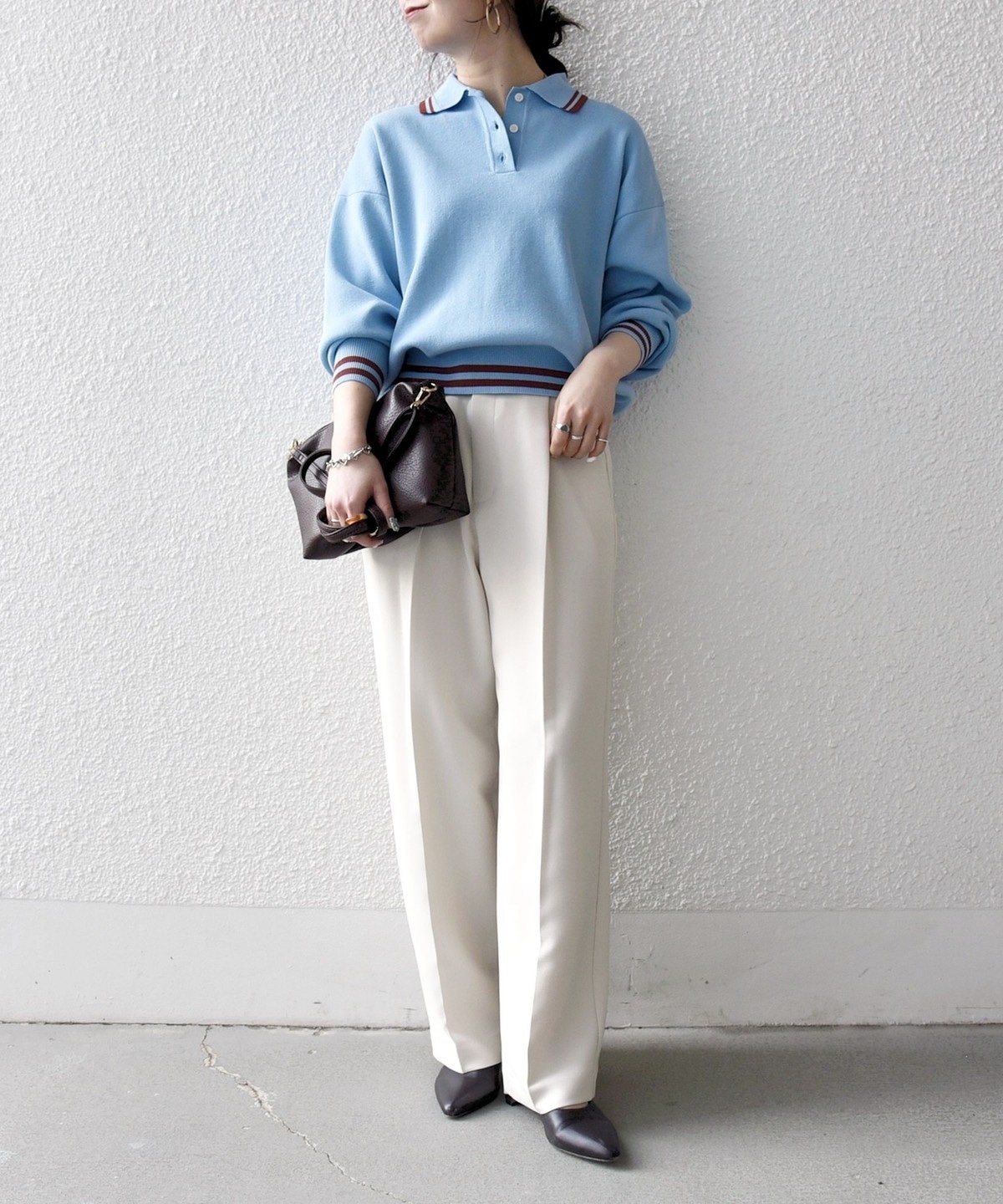 きれいめなパンツやロングスカートと合わせると、品のあるカジュアルミックススタイルも楽しめます。