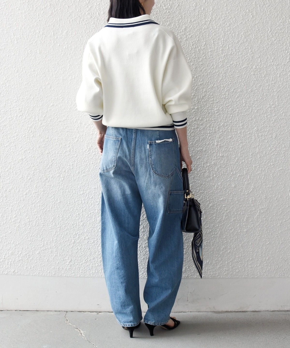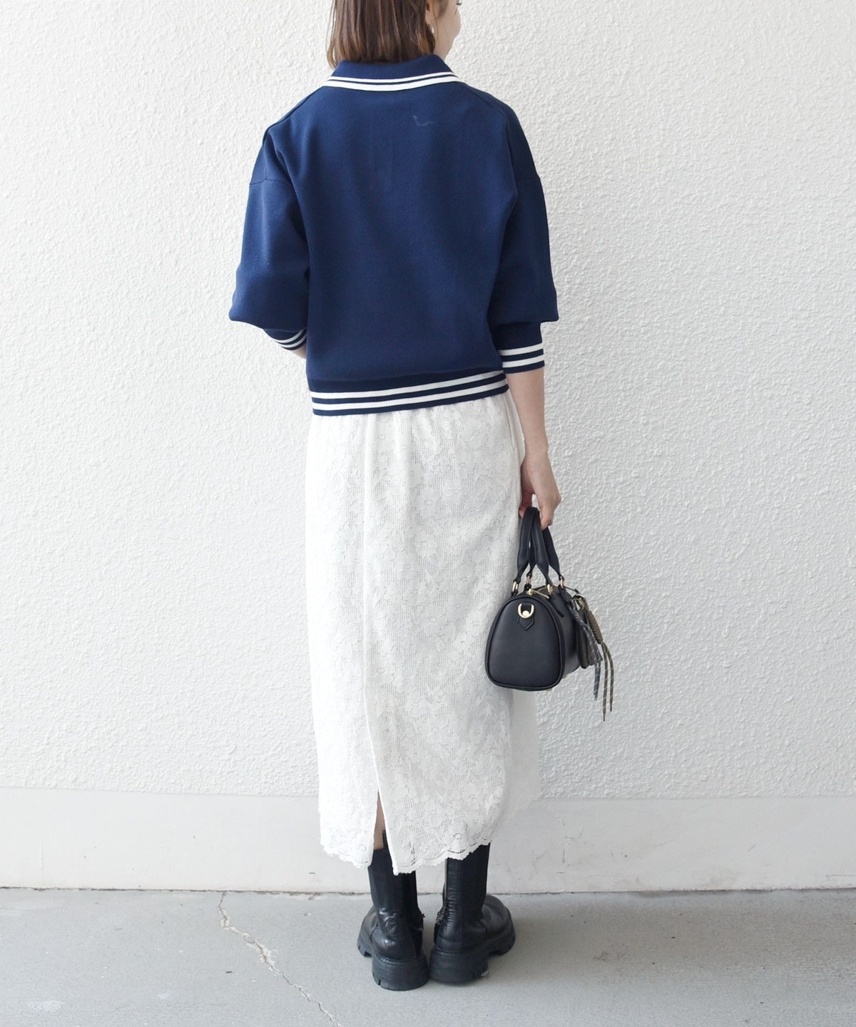 襟元・袖口・裾に施したライン使いが、シンプルながらもスタイリングのアクセントになります。