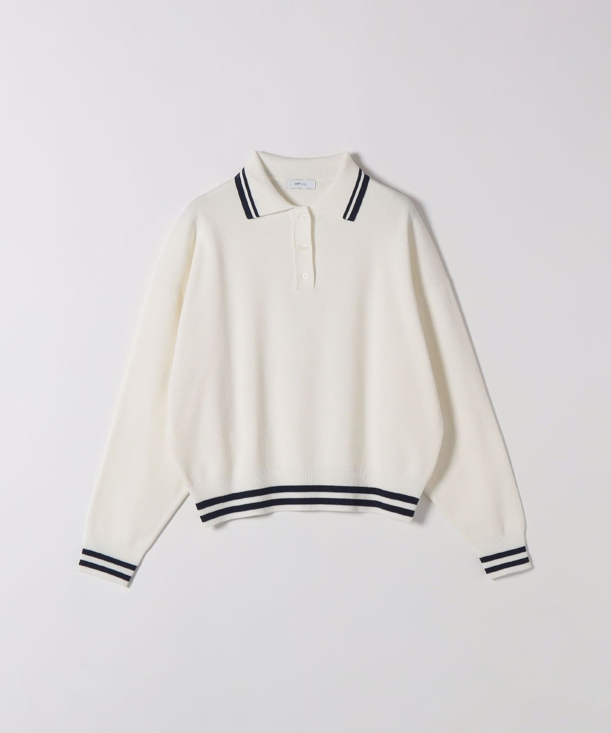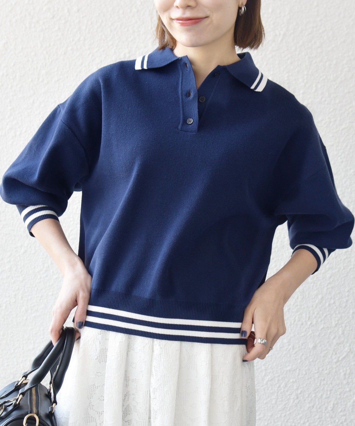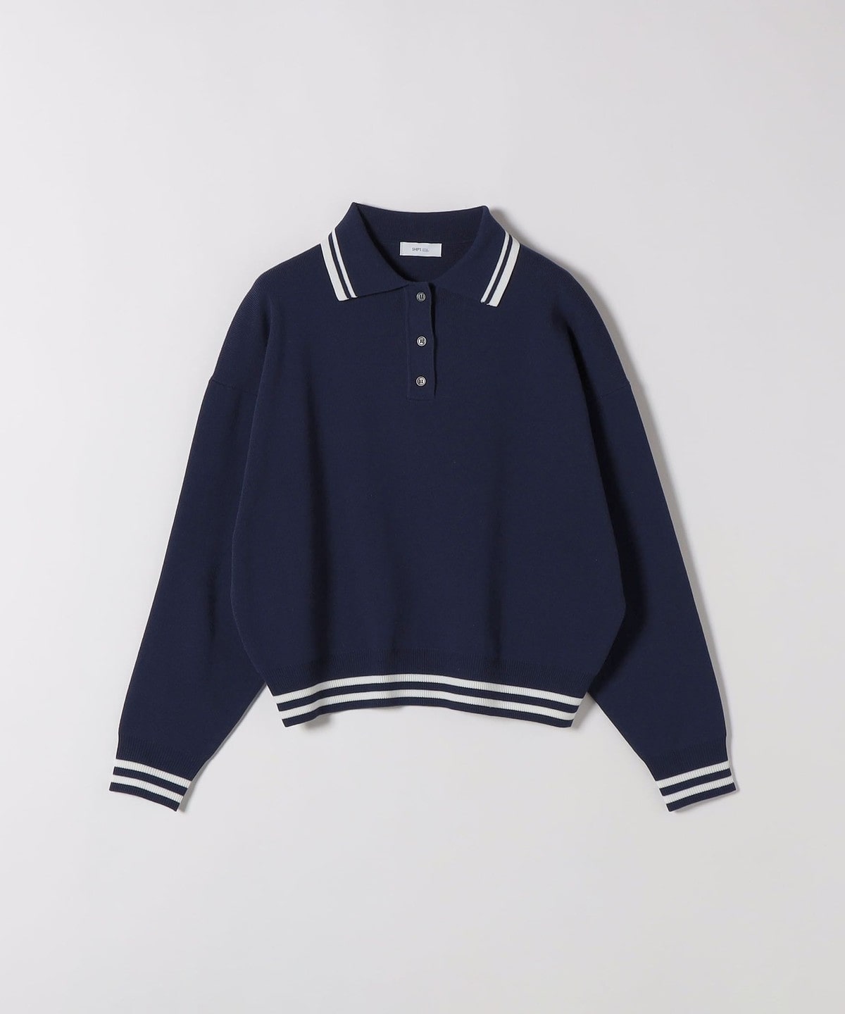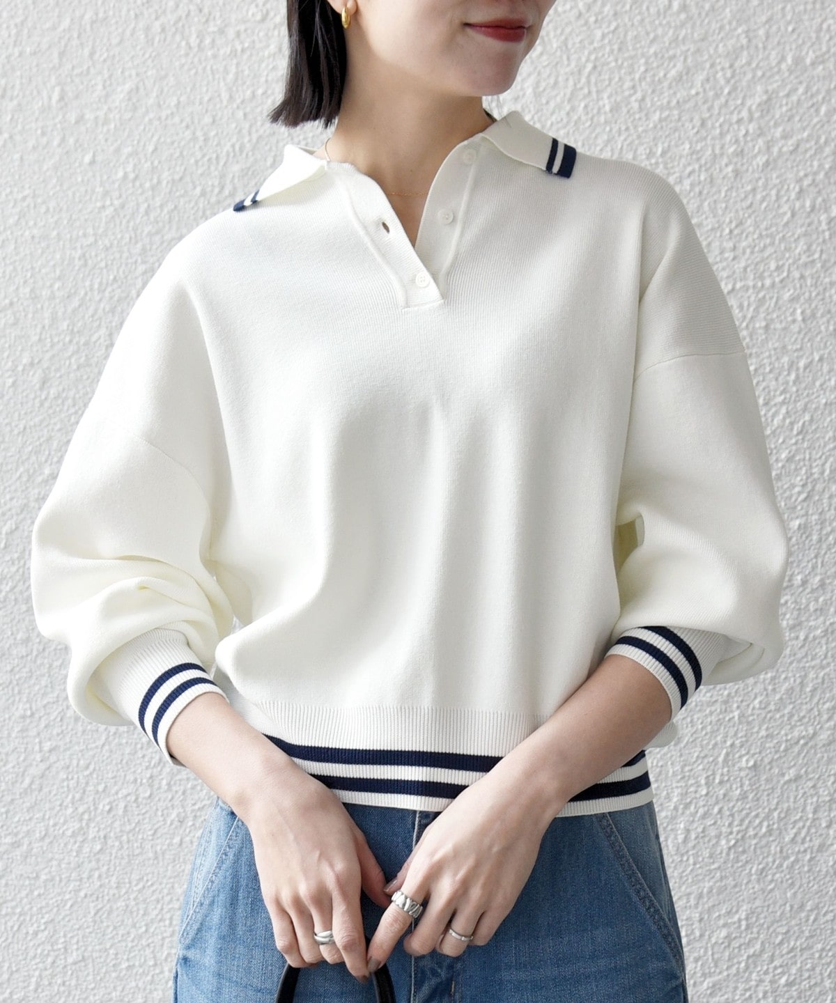 40. 《予約》SHIPS any:〈手洗い可能〉コットン ミックス ライン ポロニット プルオーバー