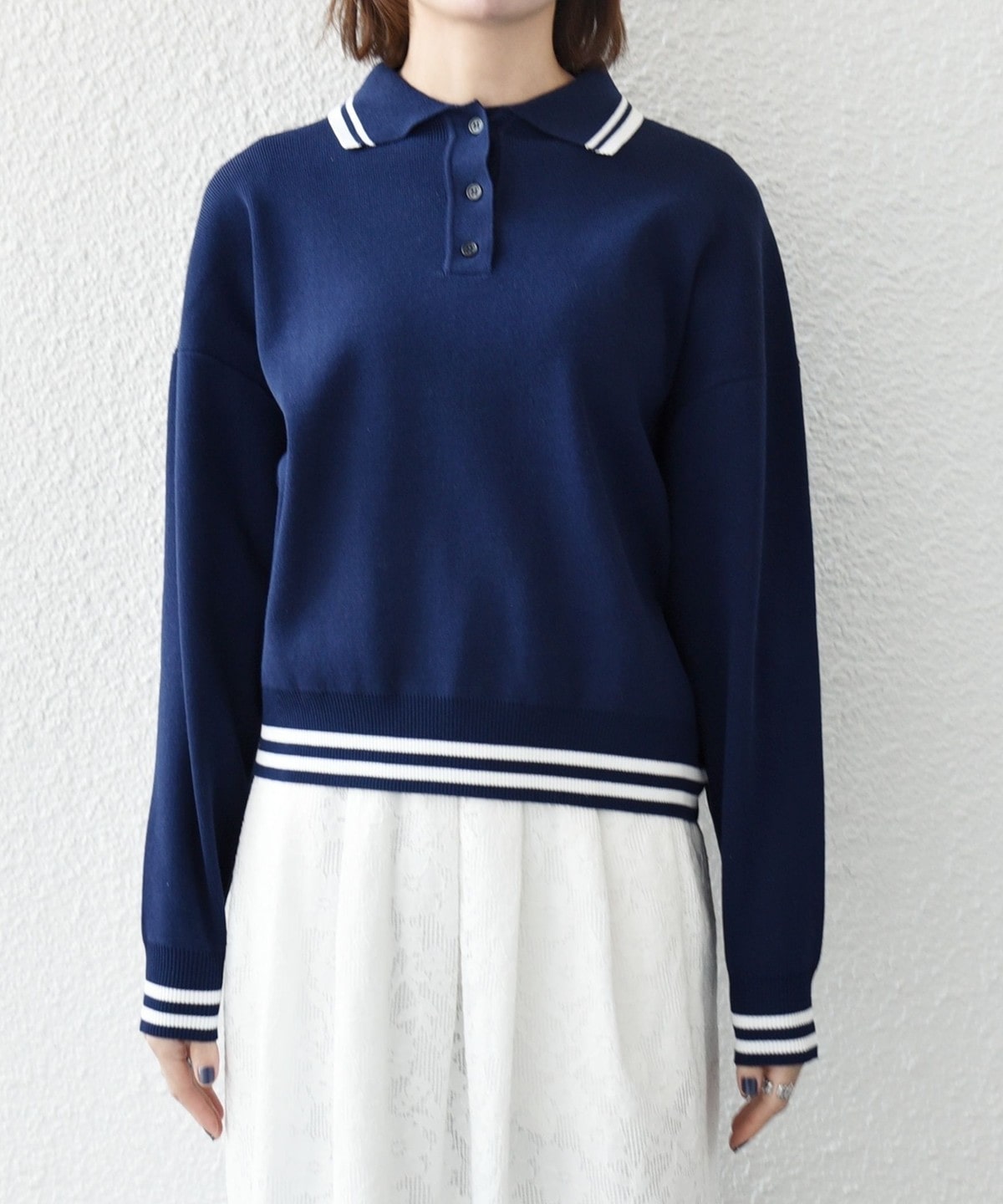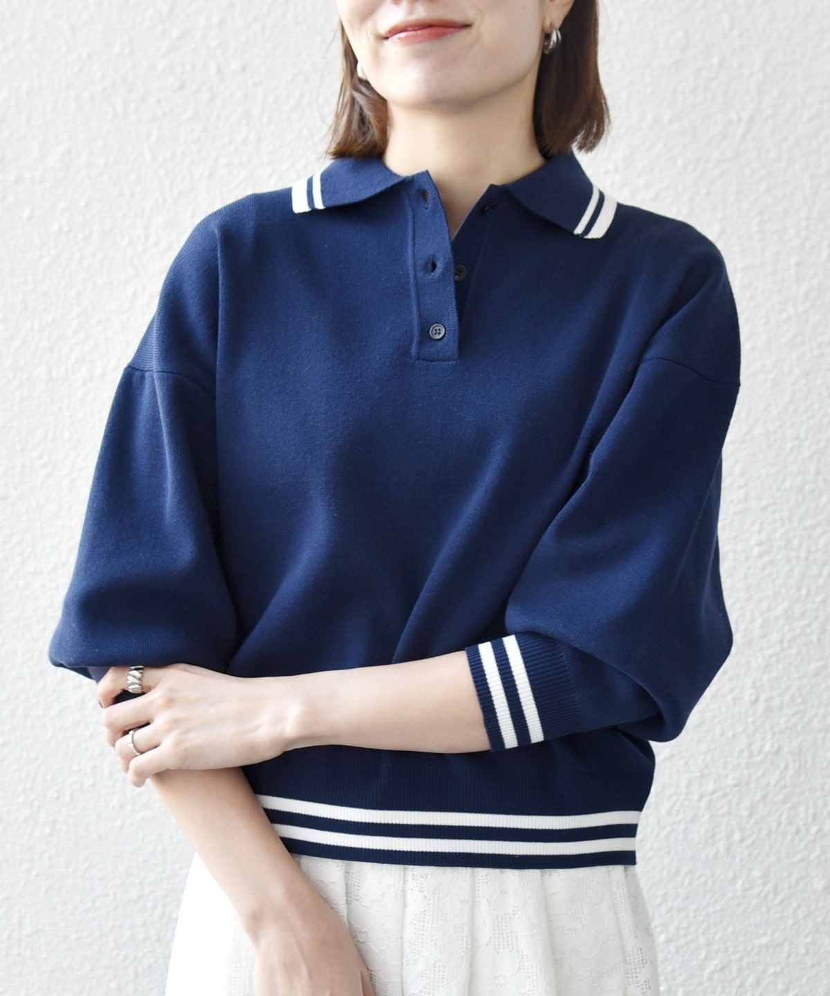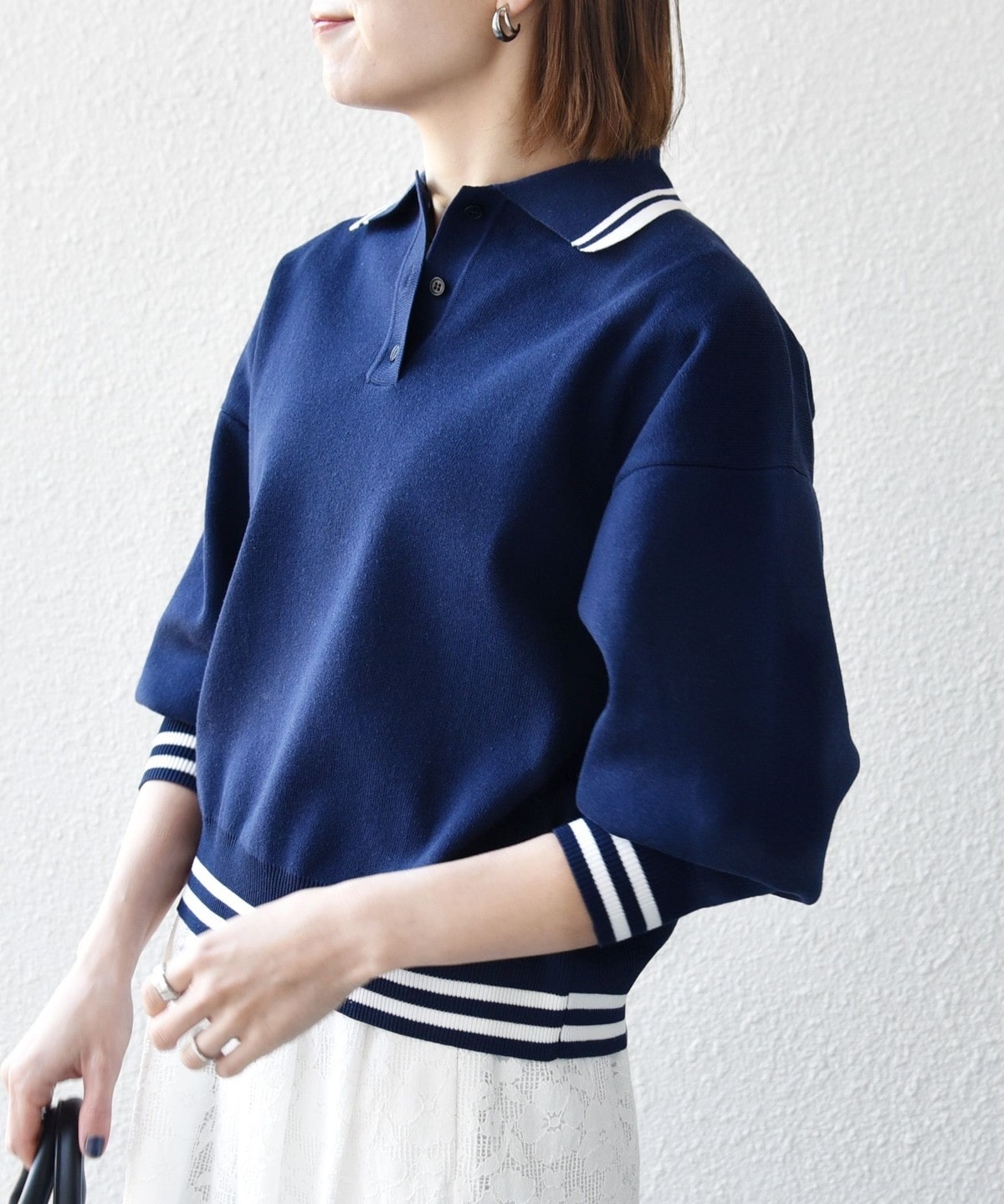 40. 《予約》SHIPS any:〈手洗い可能〉コットン ミックス ライン ポロニット プルオーバー