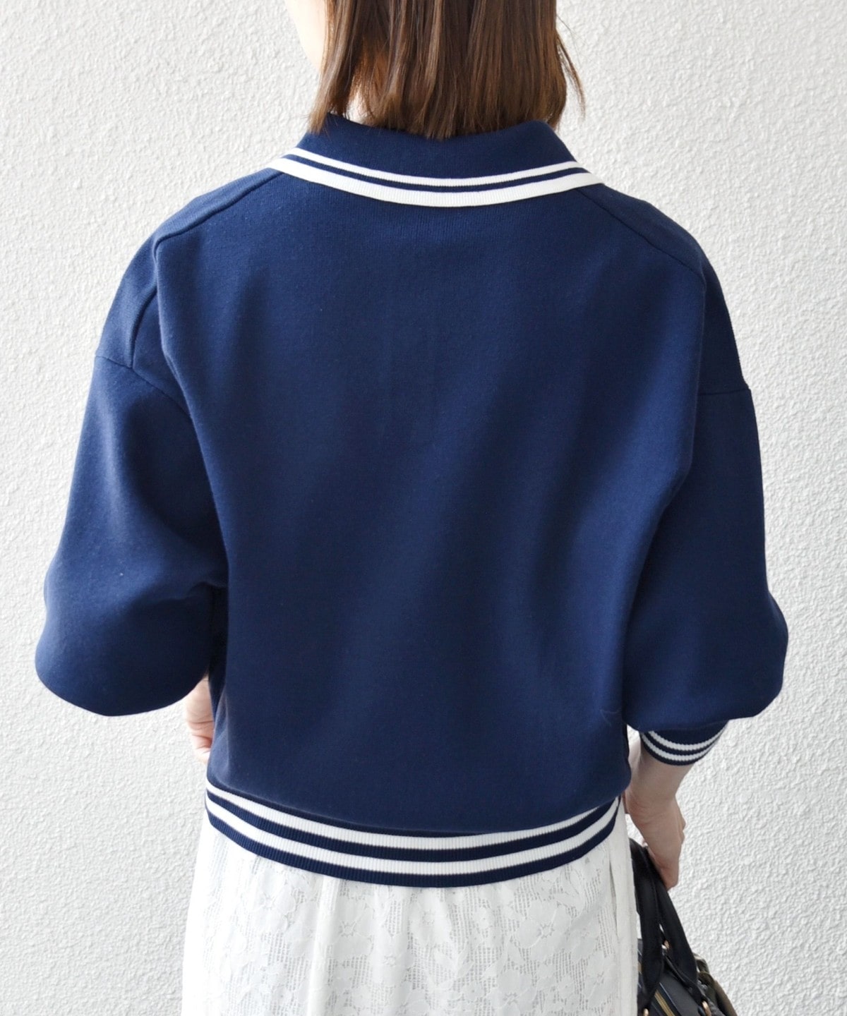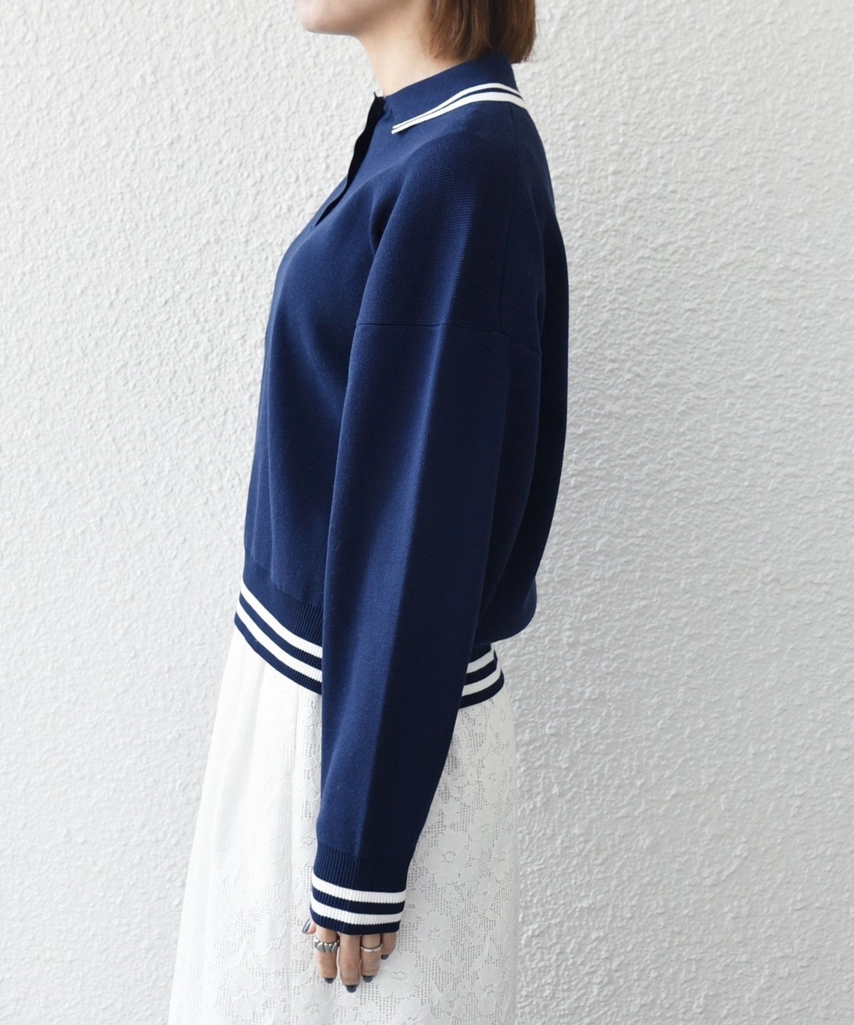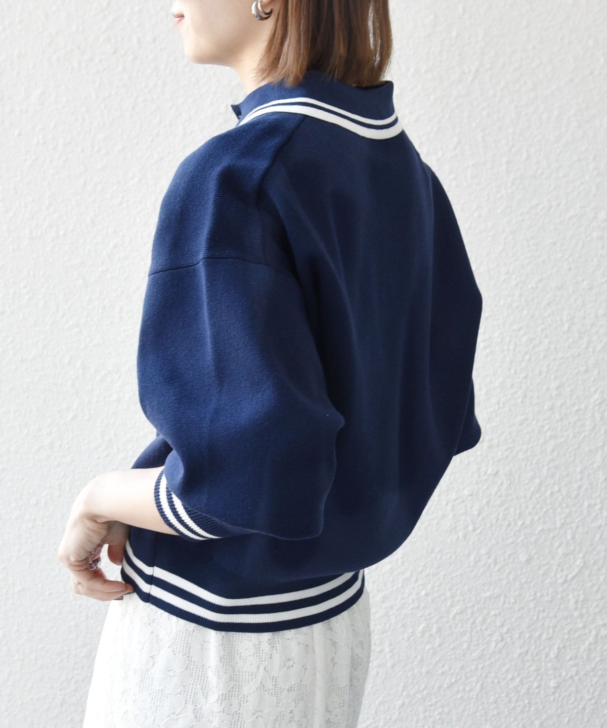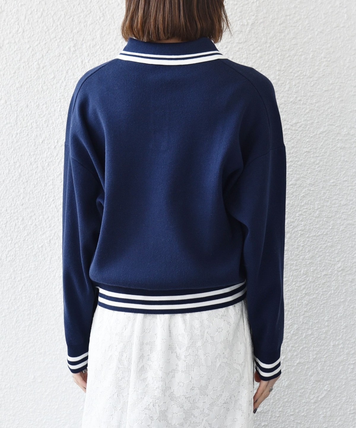 40. 《予約》SHIPS any:〈手洗い可能〉コットン ミックス ライン ポロニット プルオーバー