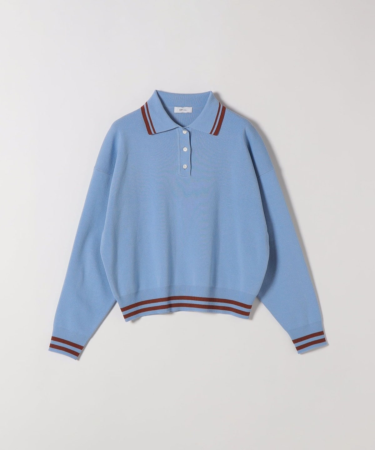 2. 《予約》SHIPS any:〈手洗い可能〉コットン ミックス ライン ポロニット プルオーバー ライトブルー