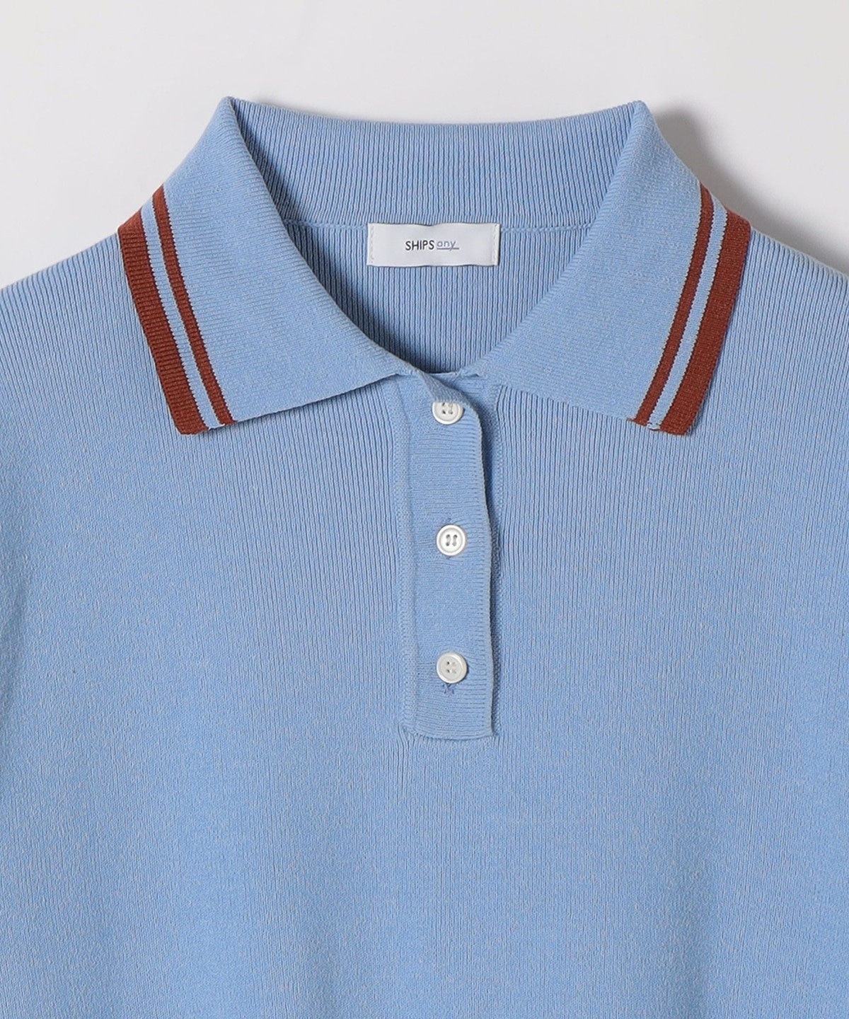 19. 《予約》SHIPS any:〈手洗い可能〉コットン ミックス ライン ポロニット プルオーバー