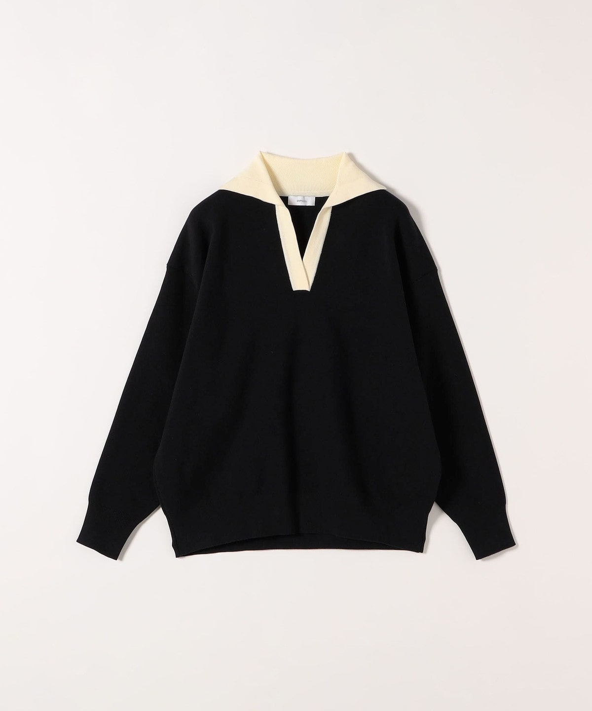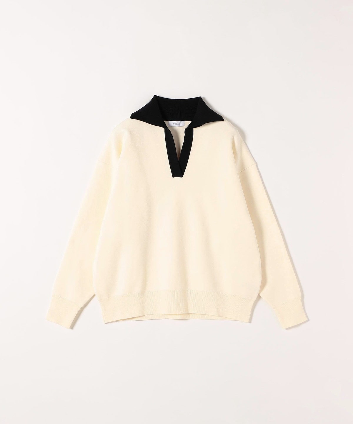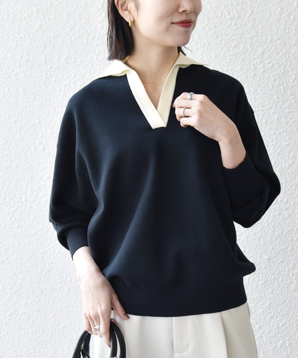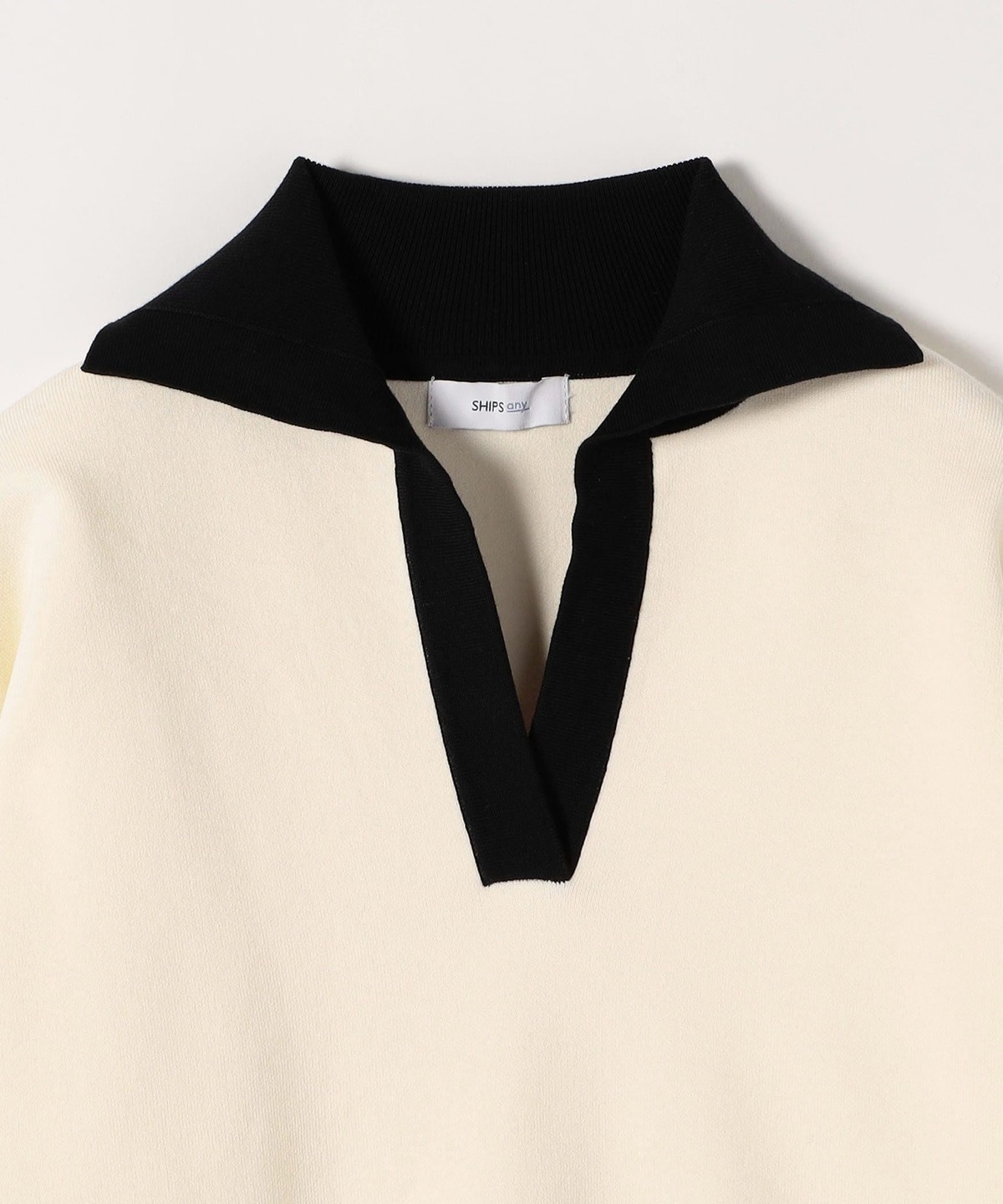 《予約》SHIPS any:〈手洗い可能〉バイカラー スキッパー ニット プルオーバー