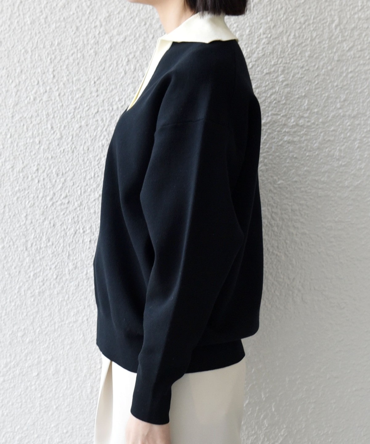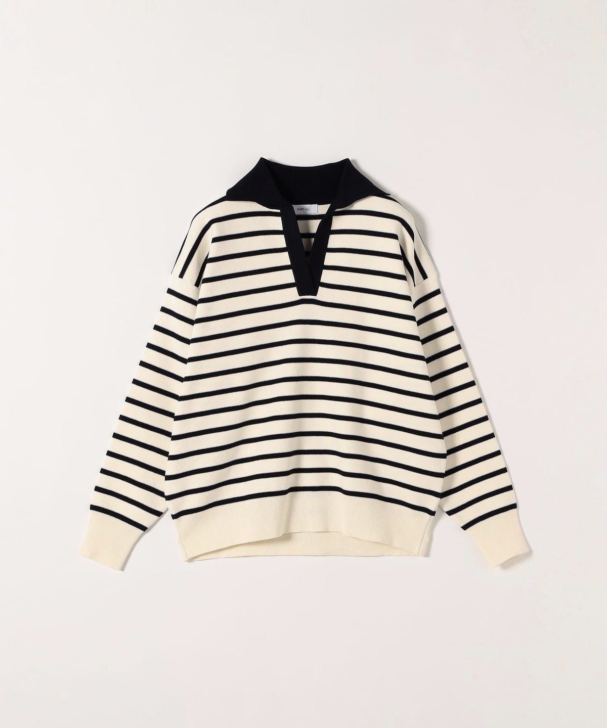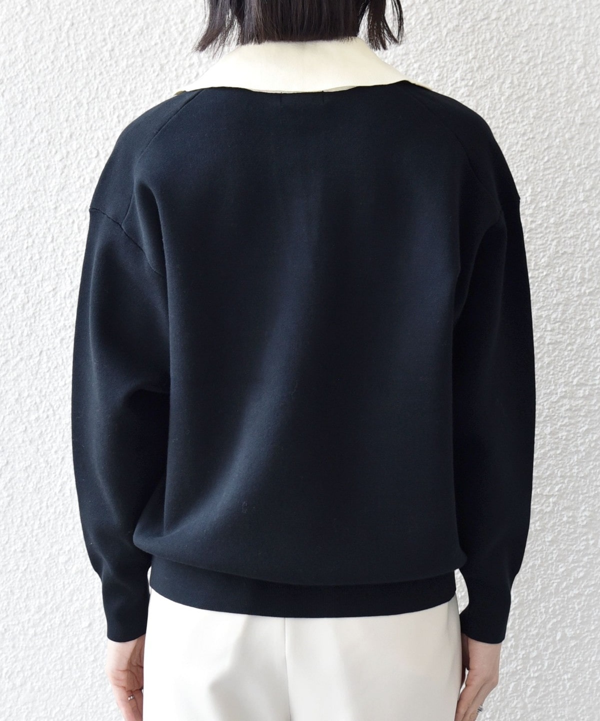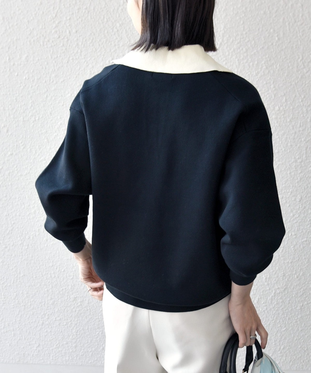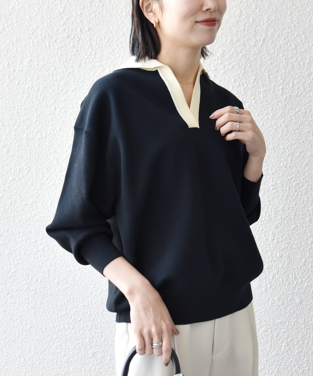 《予約》SHIPS any:〈手洗い可能〉バイカラー スキッパー ニット プルオーバー