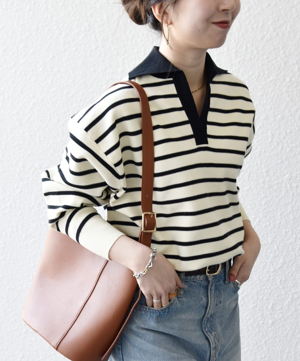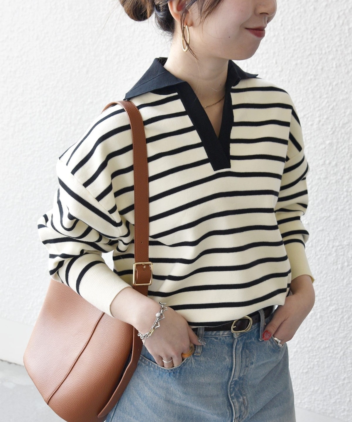 その他はモノトーンボーダーなので、カラーもののロンTやシャツを重ねたレイヤードスタイルがおすすめです。