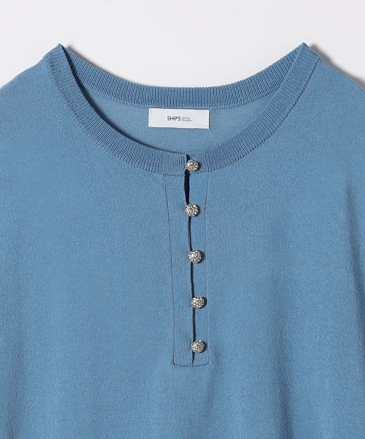 《一部予約》SHIPS any:〈接触冷感/手洗い可能〉ビジュー ヘンリーネック ニット プルオーバー