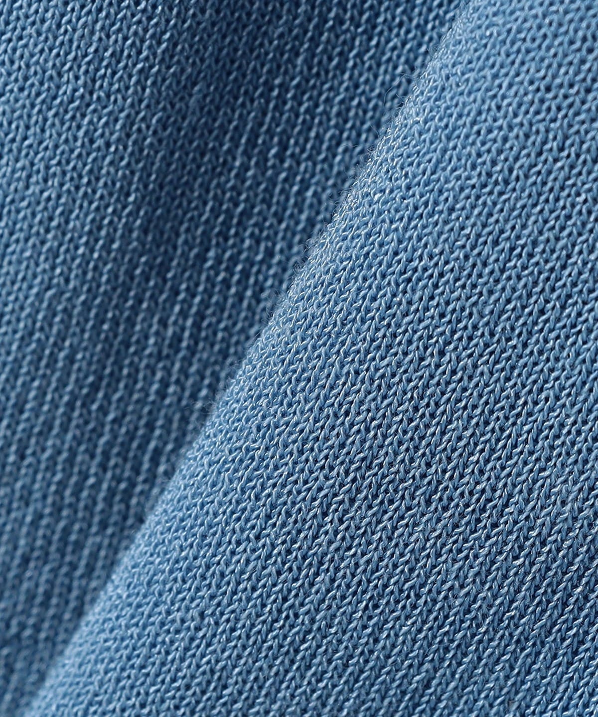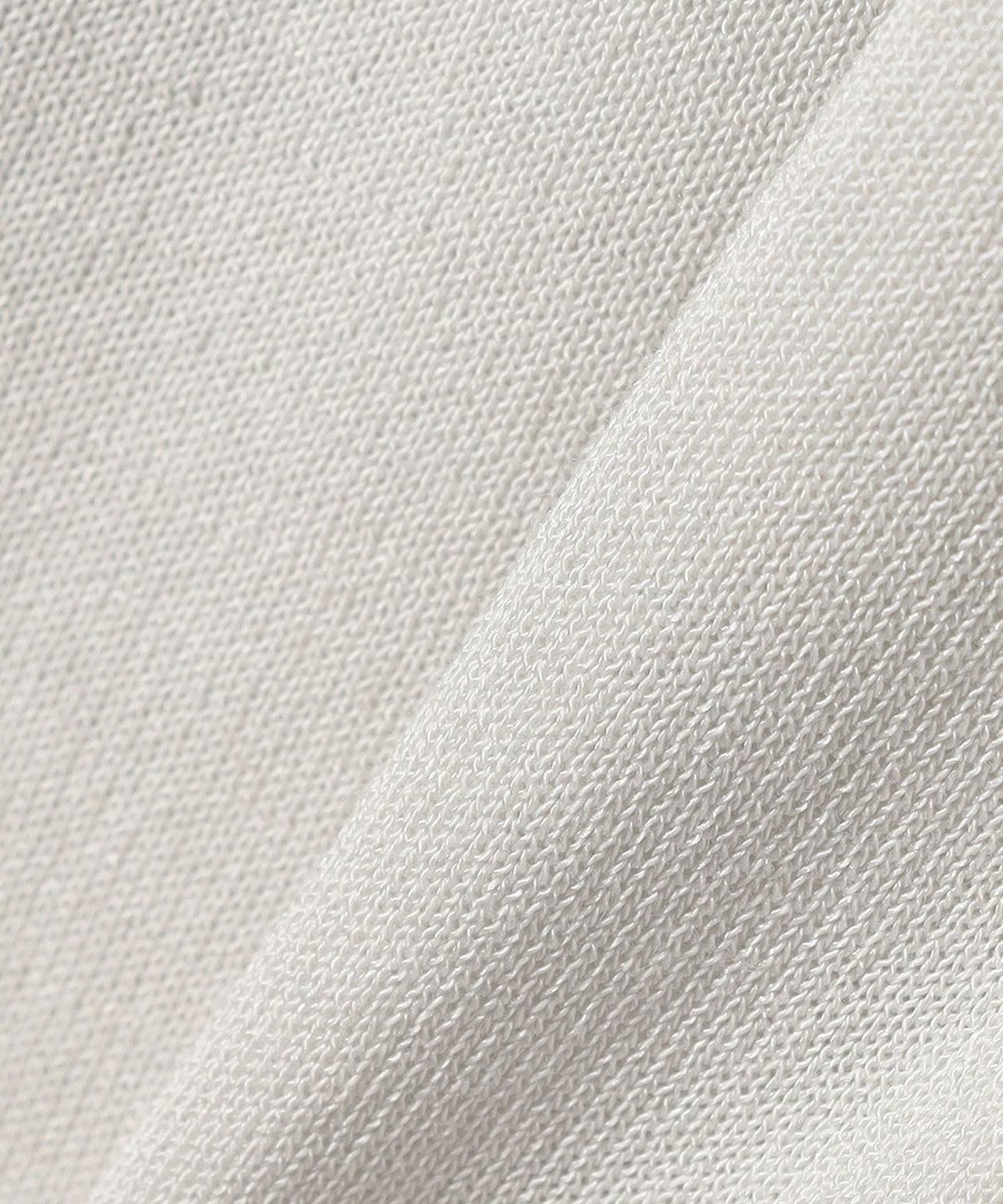 コットンアセテートの糸に接触冷感加工を施し、度目を詰めて天竺編みにした素材を使用。