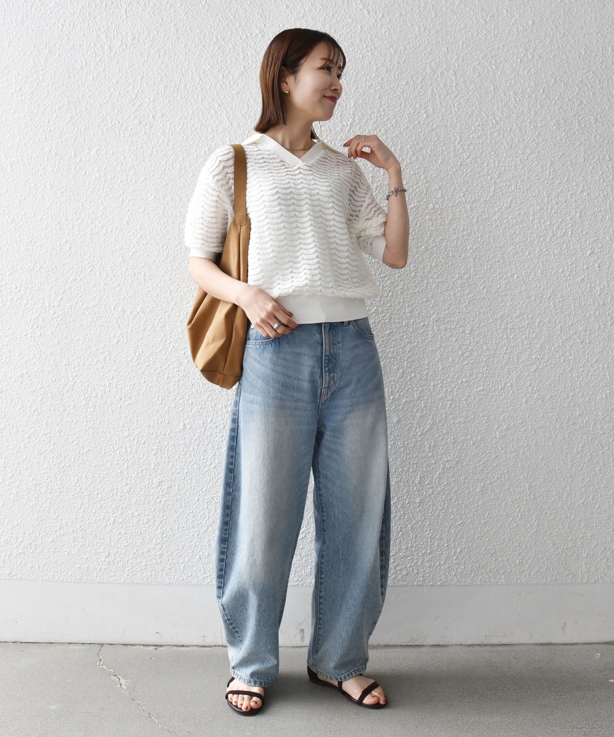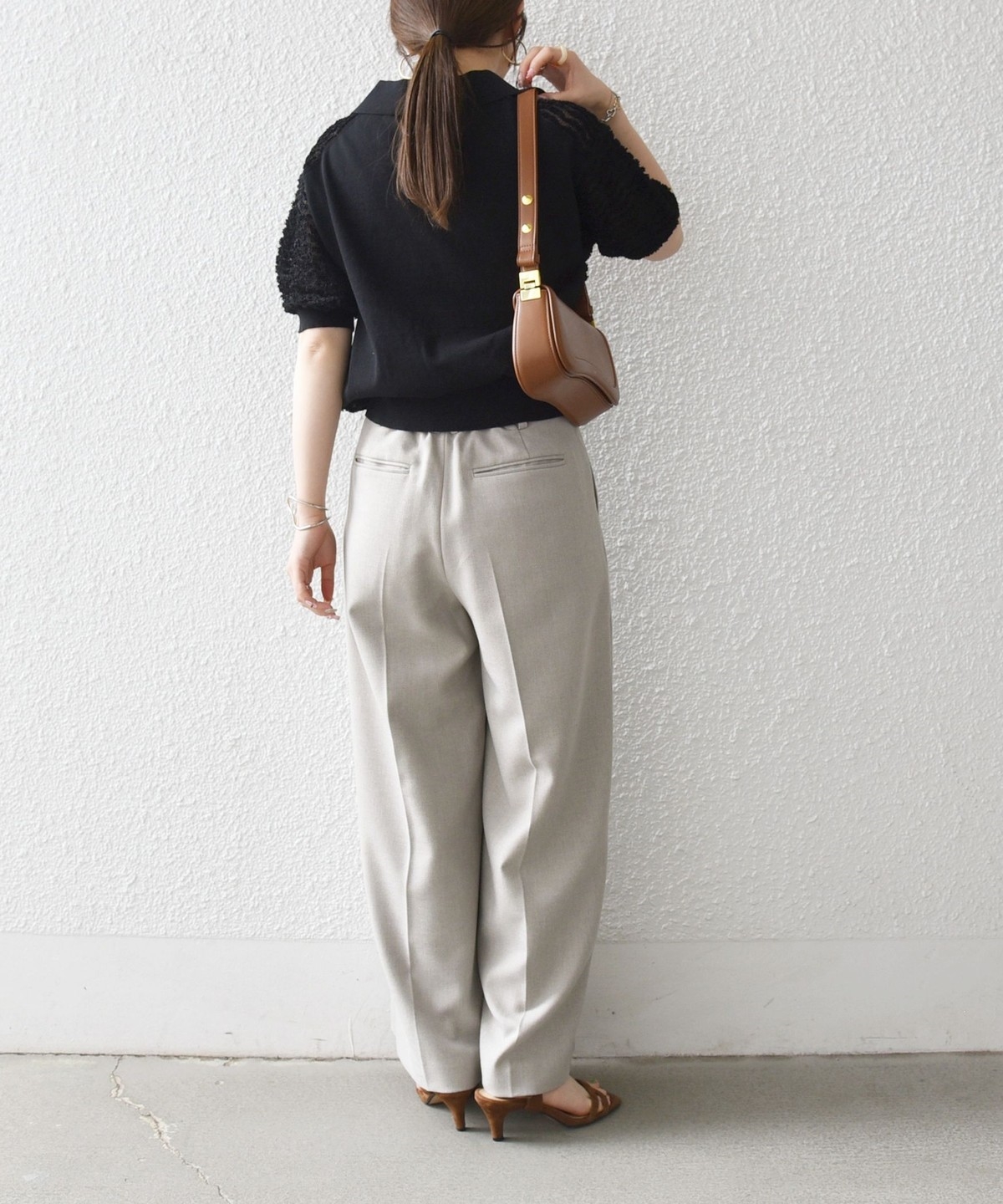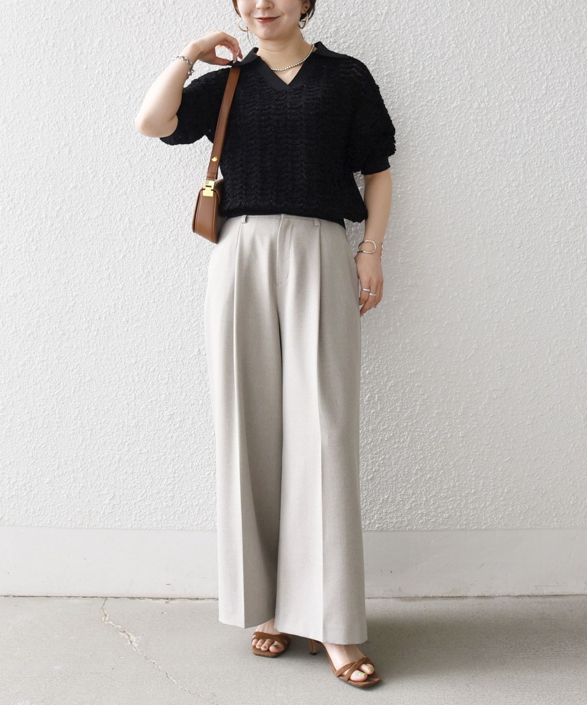 程よい透け感でワントーンでも重たくなりすぎず、洗練された印象に。