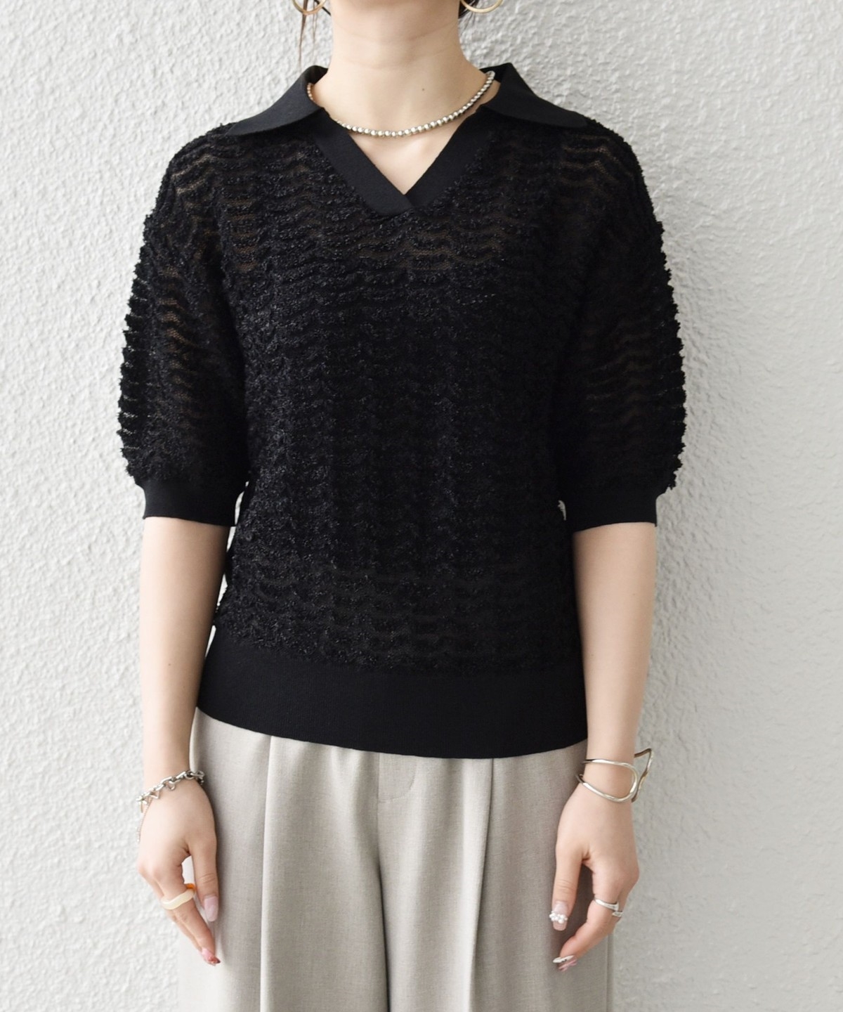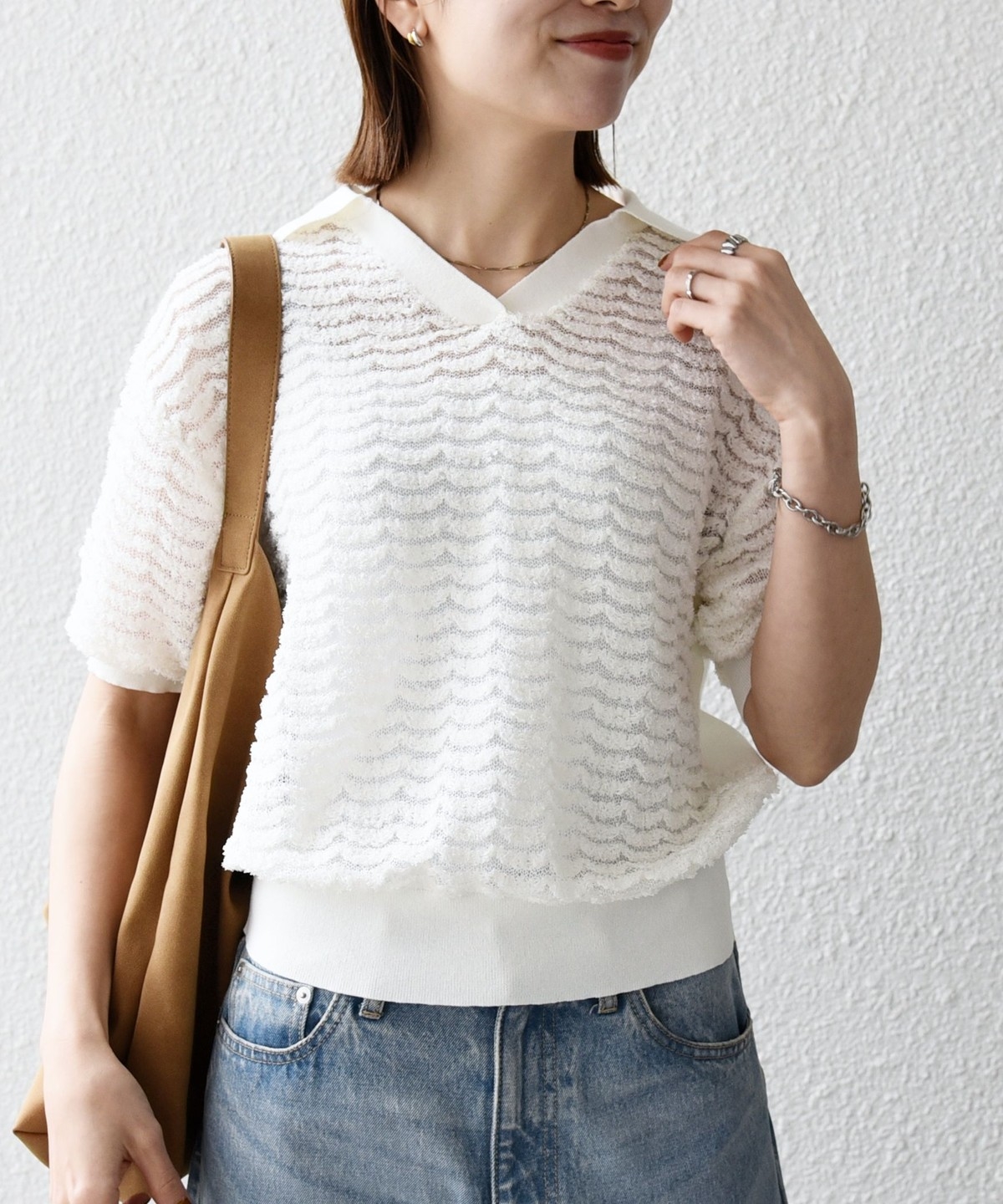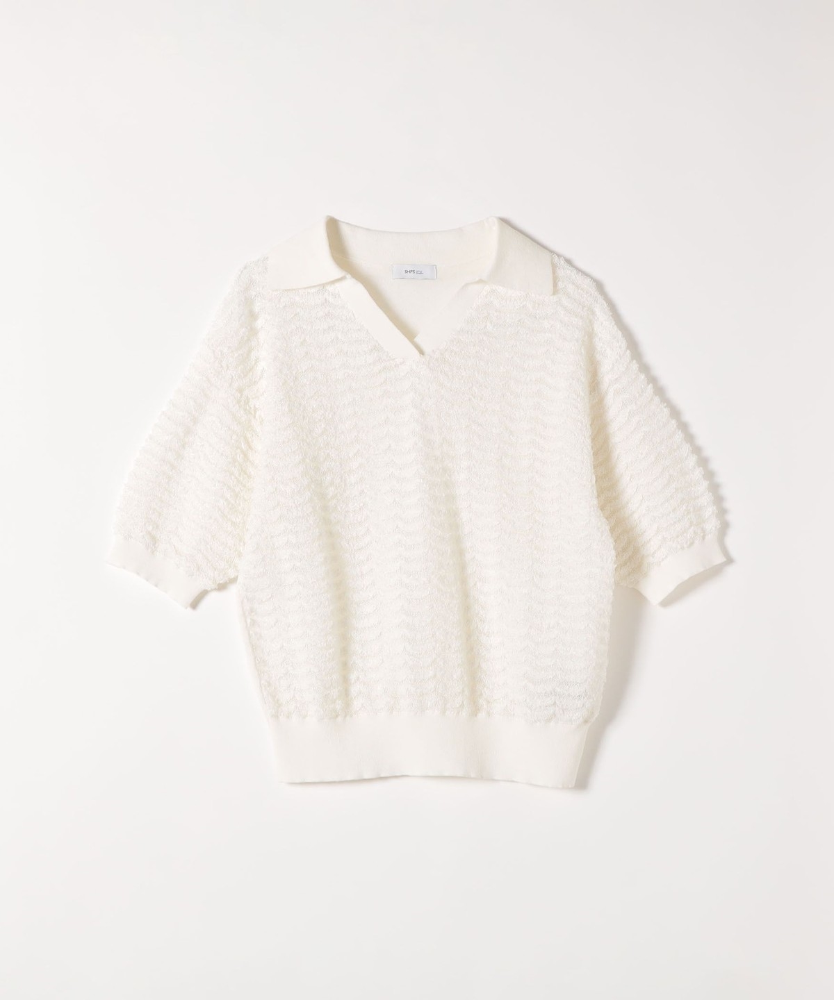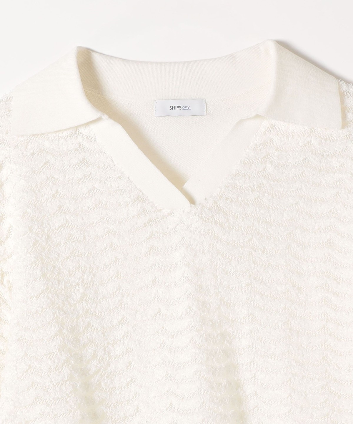 《予約》SHIPS any:〈手洗い可能〉シアー ジャカード スキッパー ポロ ニット