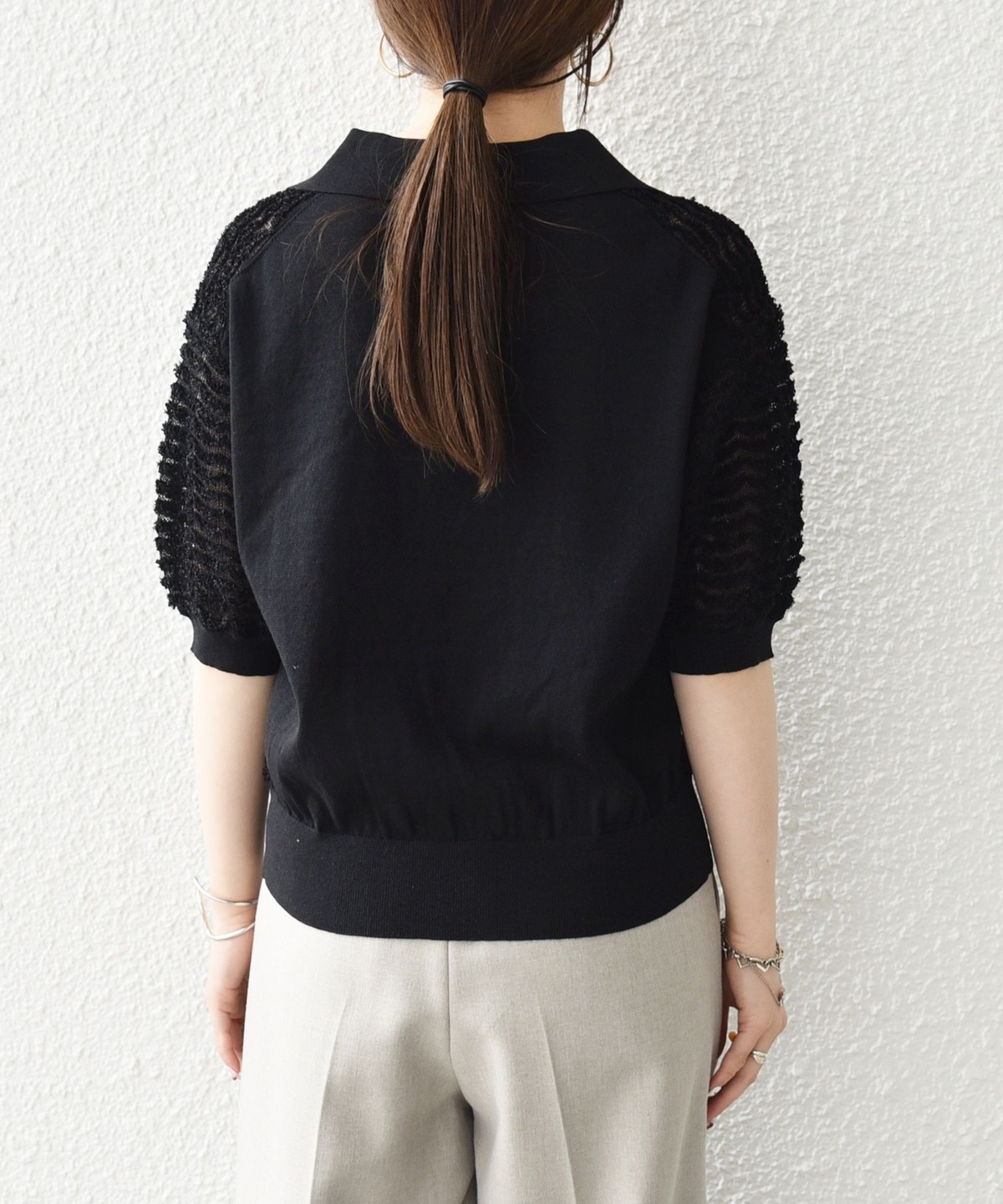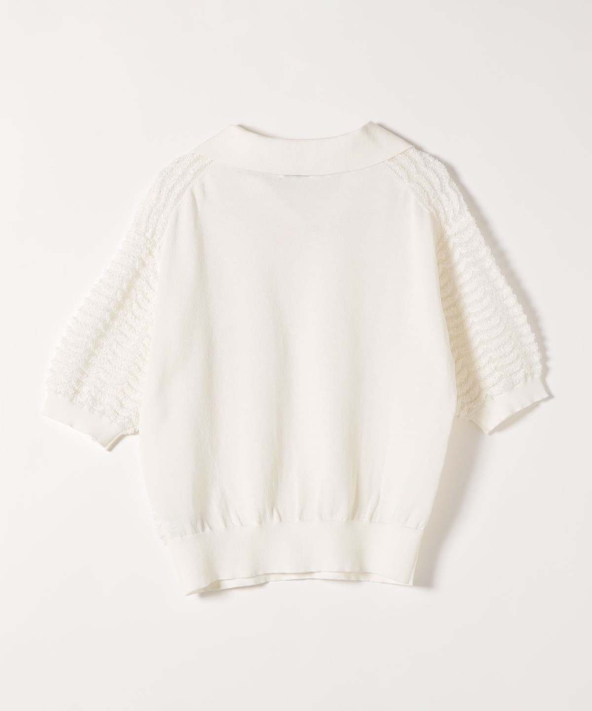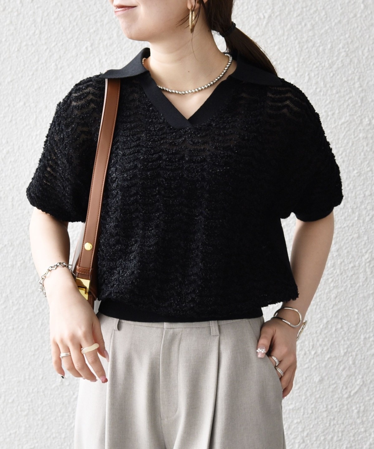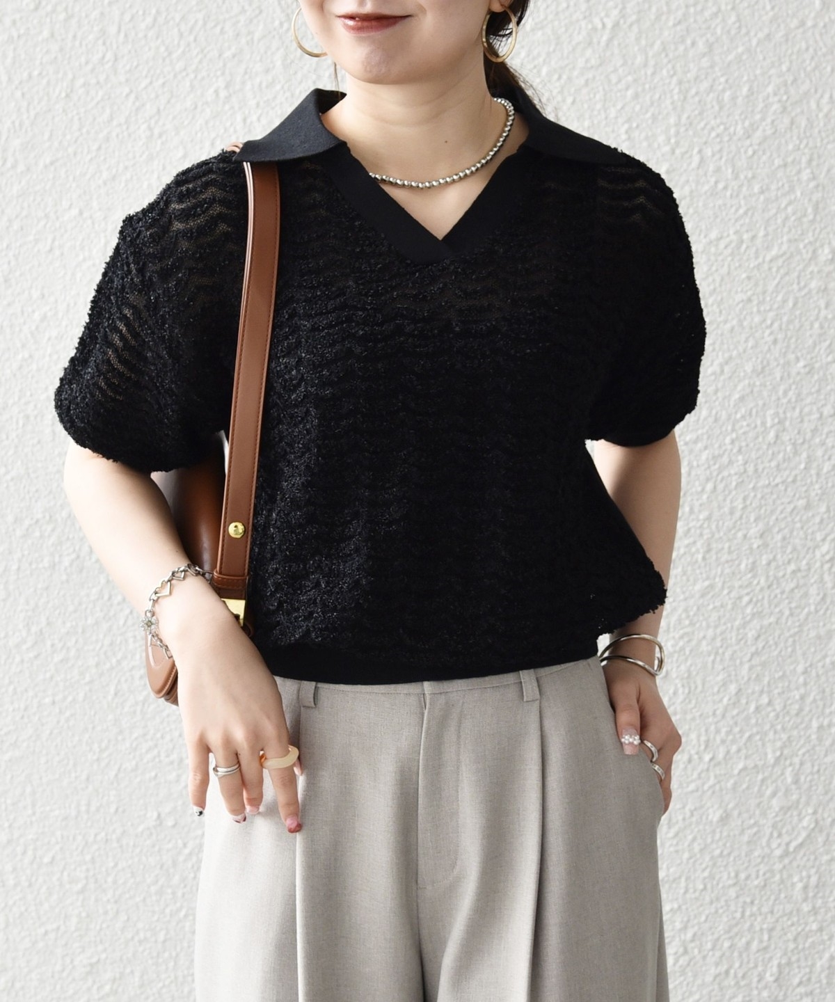 《予約》SHIPS any:〈手洗い可能〉シアー ジャカード スキッパー ポロ ニット