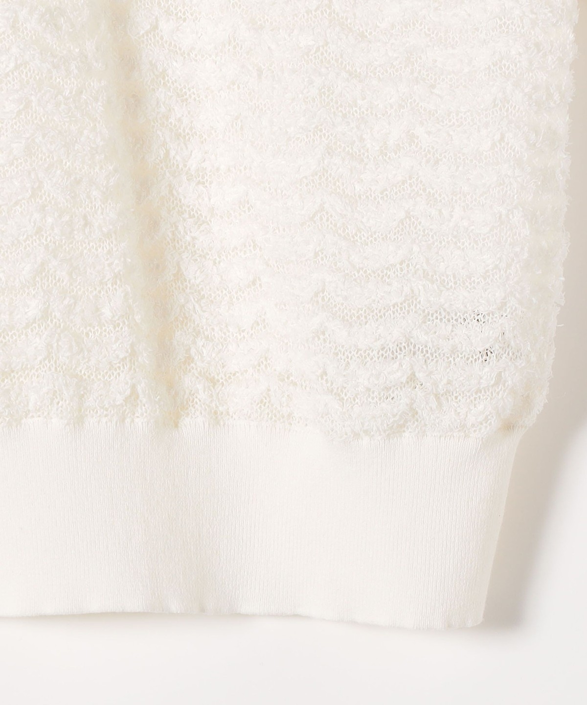フロントと袖に施した立体的なジャカード編みがポイントのサマーニットプルオーバー。