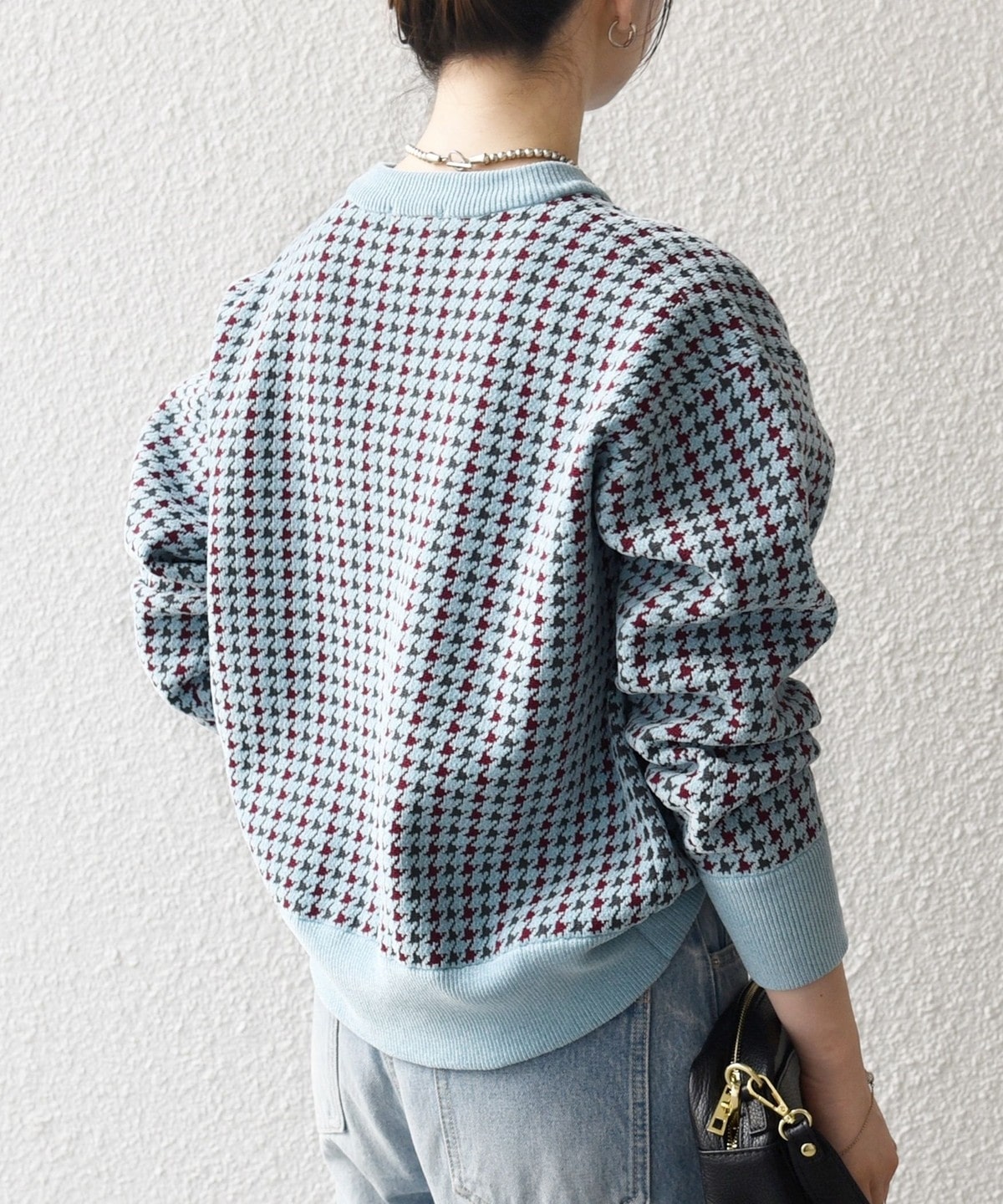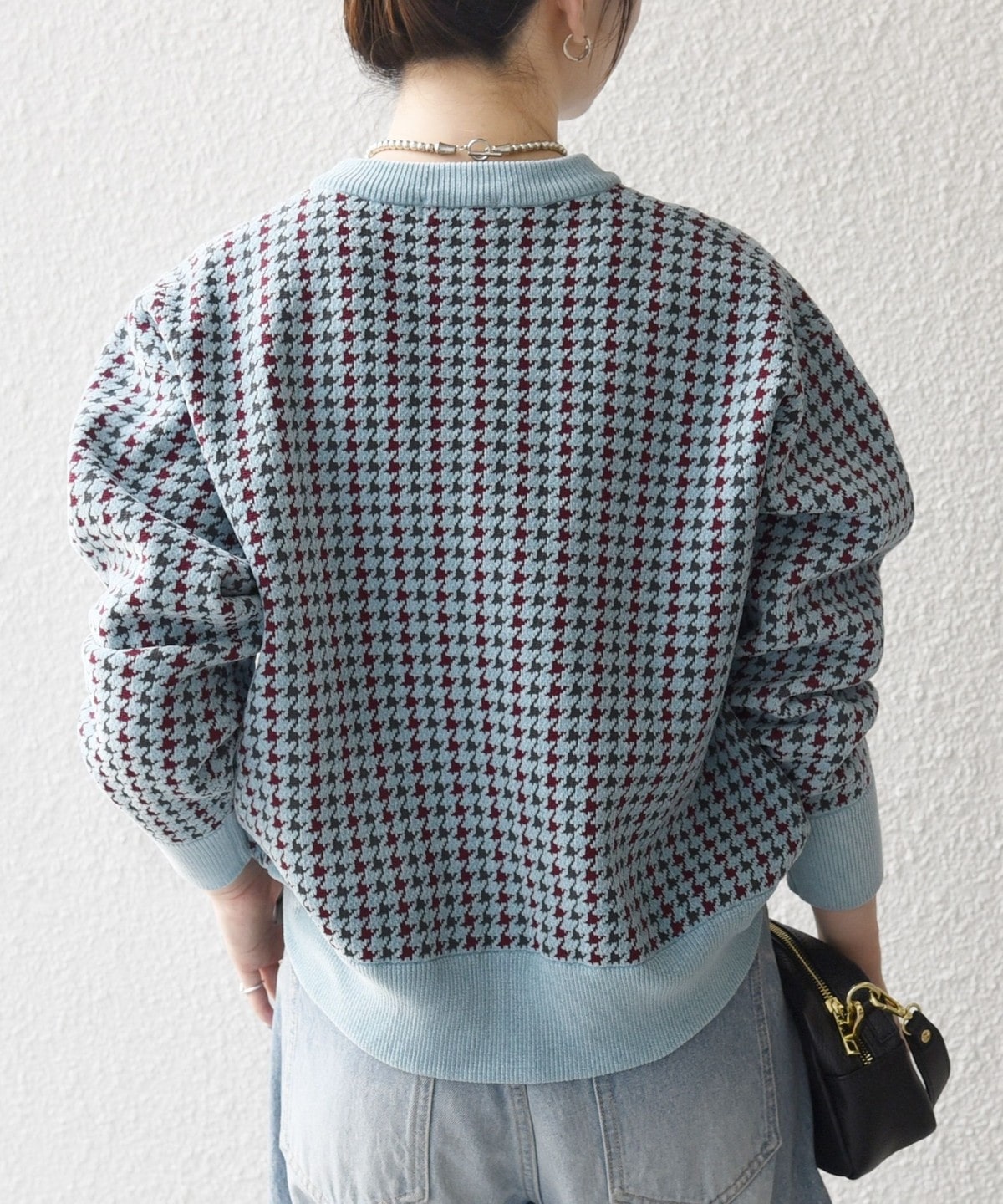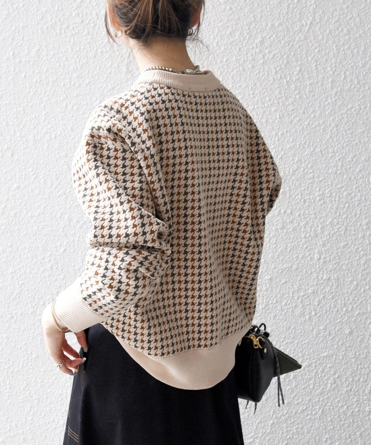 27. SHIPS any:〈手洗い可能〉モールヤーン クルーネック ロゴ 千鳥柄 プルオーバー