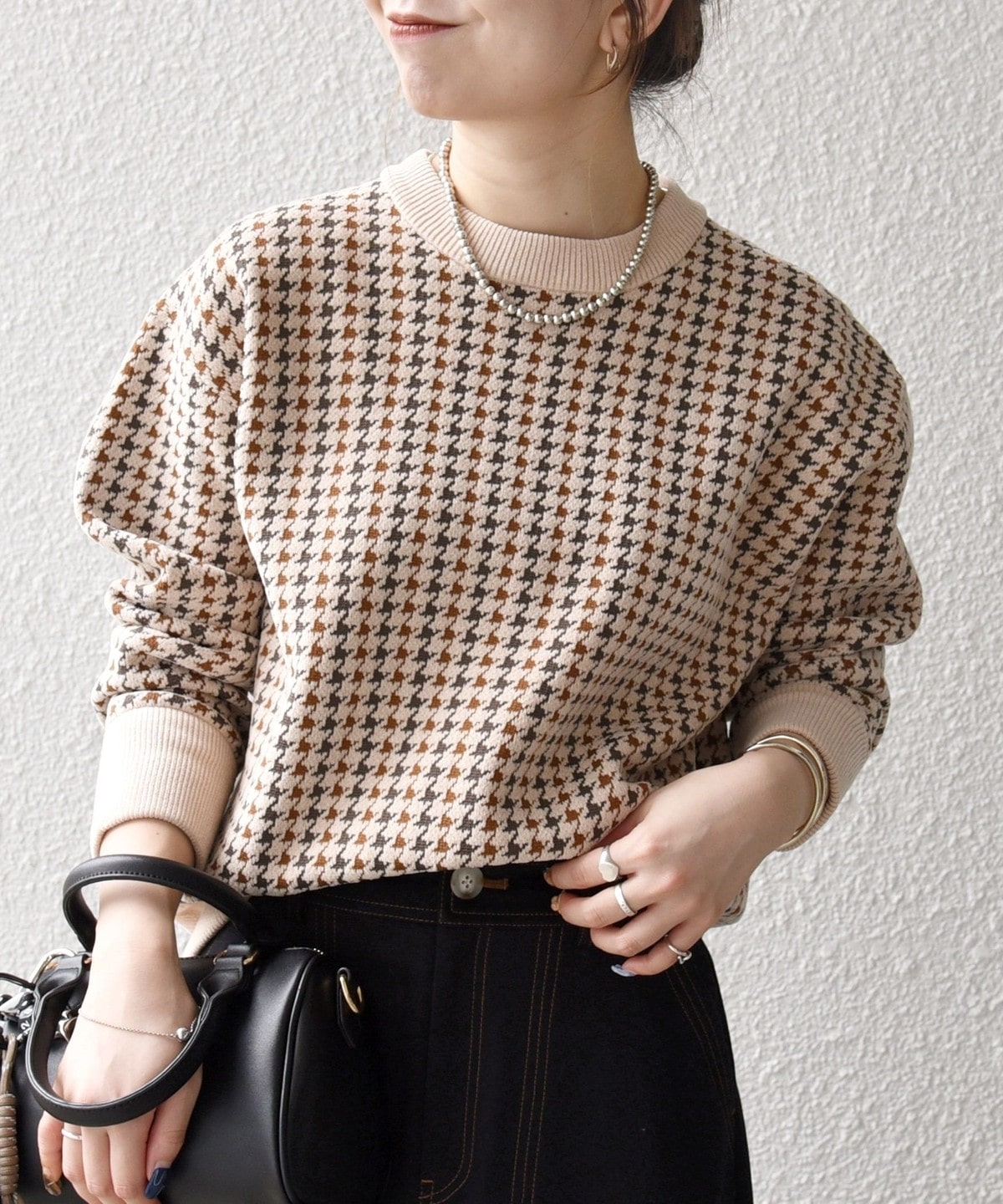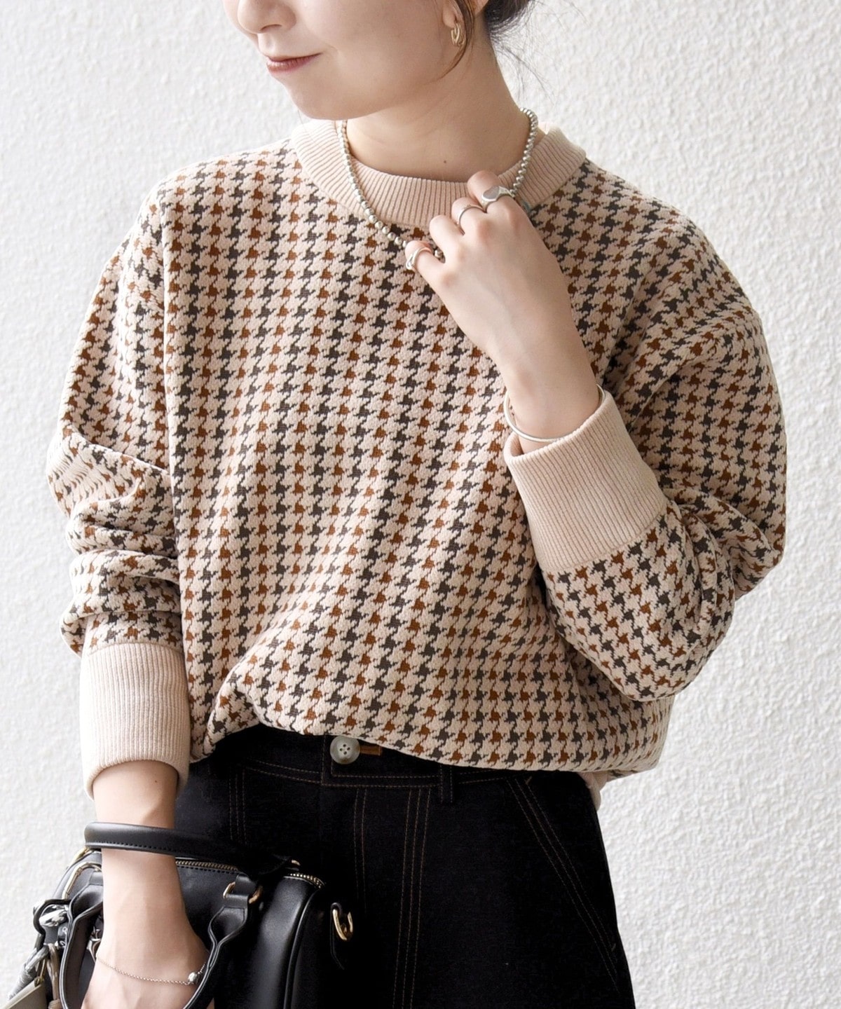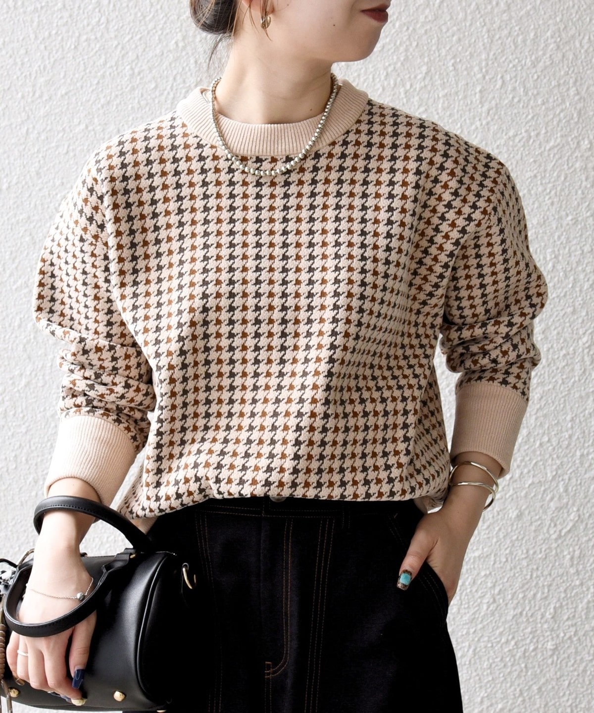27. SHIPS any:〈手洗い可能〉モールヤーン クルーネック ロゴ 千鳥柄 プルオーバー