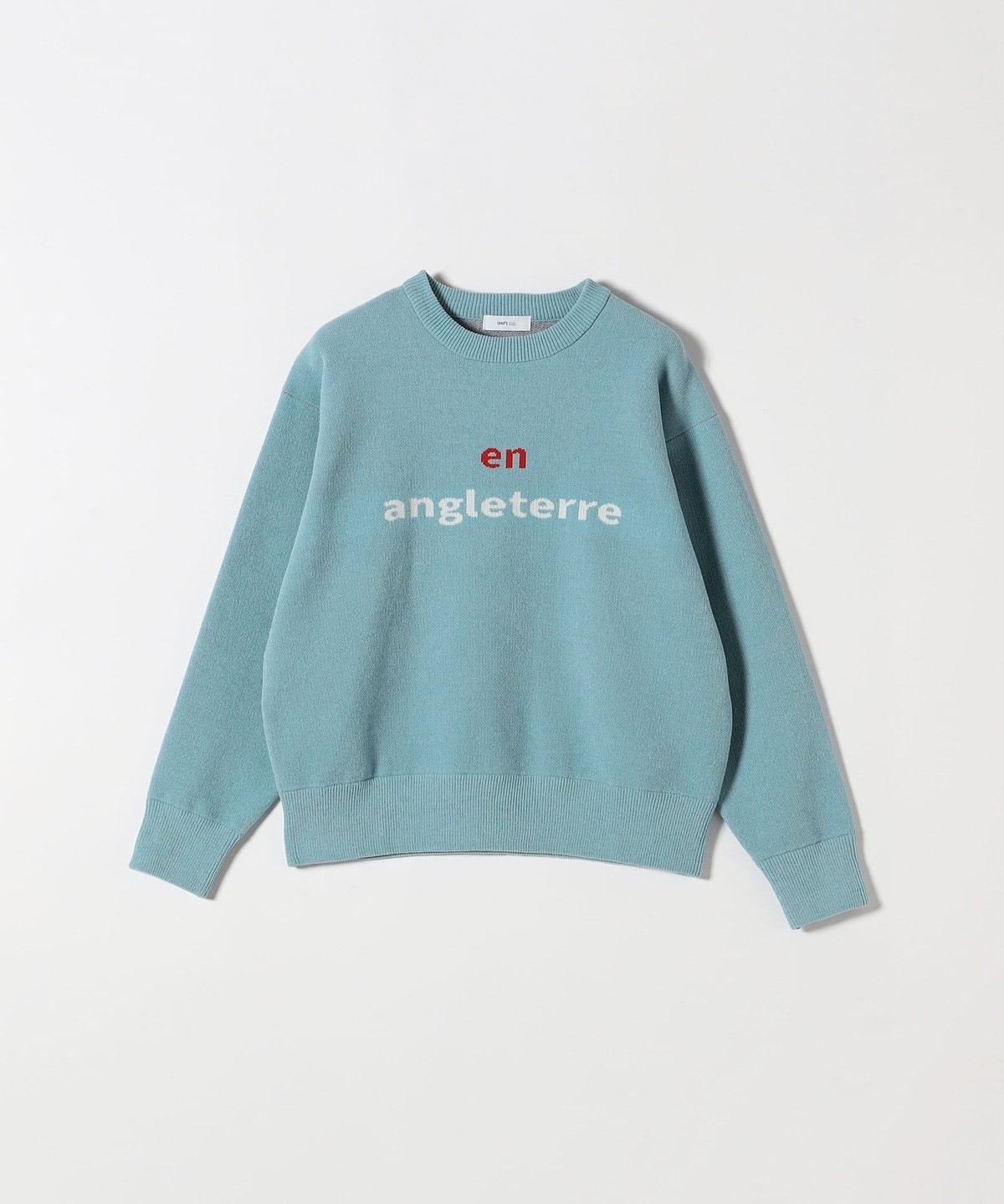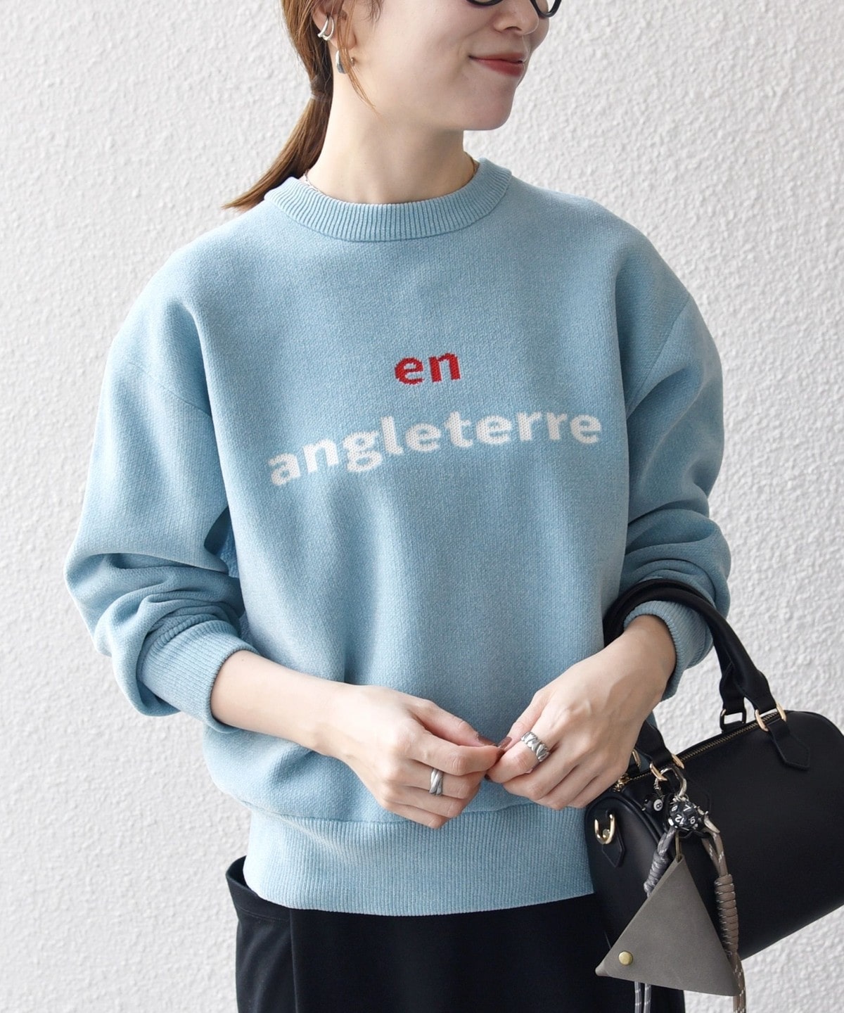 4. SHIPS any:〈手洗い可能〉モールヤーン クルーネック ロゴ 千鳥柄 プルオーバー スカイブルー
