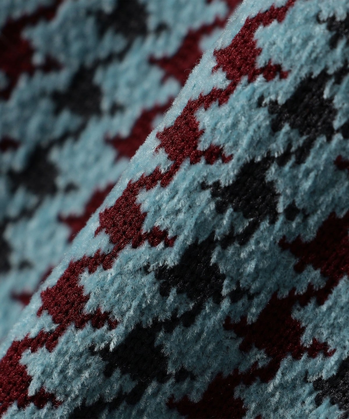 滑らかでソフトな肌触りが特徴のモール糸を使用した、ポリエステルベロアのような上品な風合いの素材。