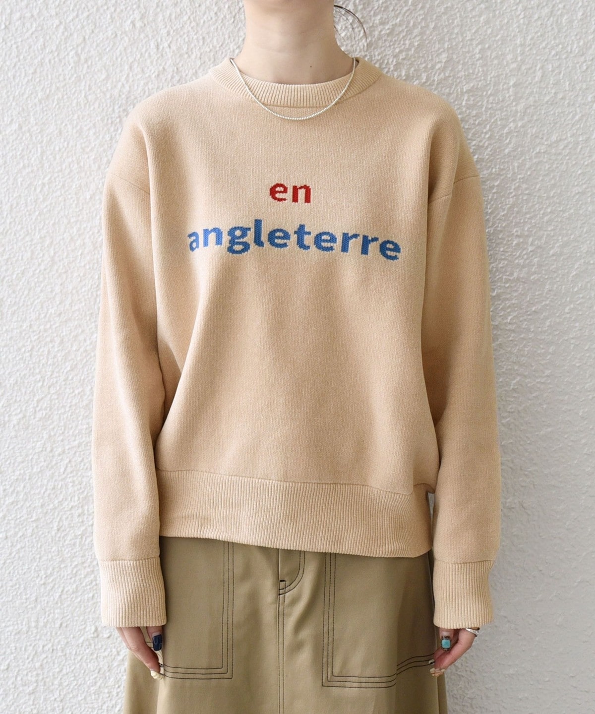 2. SHIPS any:〈手洗い可能〉モールヤーン クルーネック ロゴ 千鳥柄 プルオーバー ベージュ