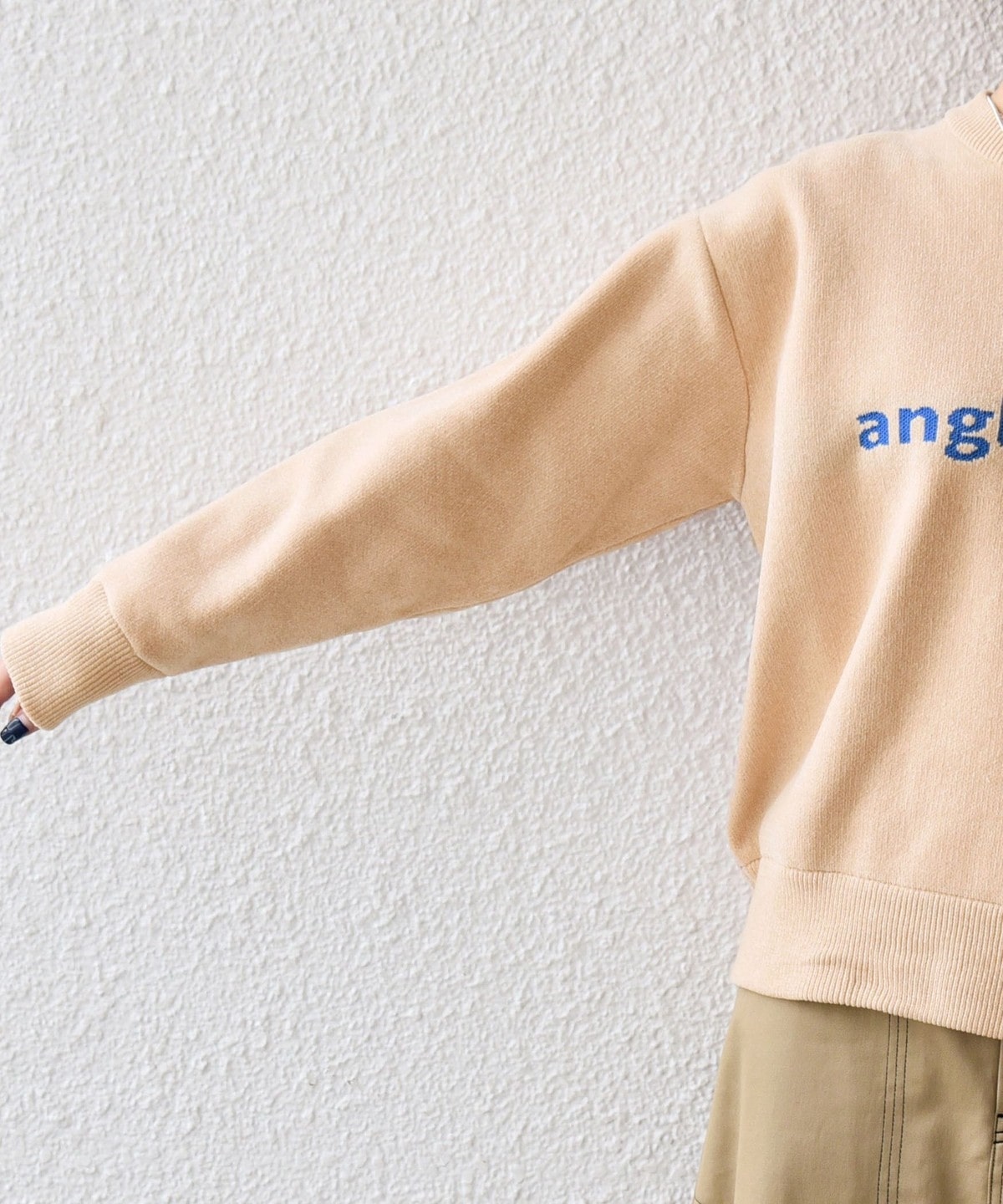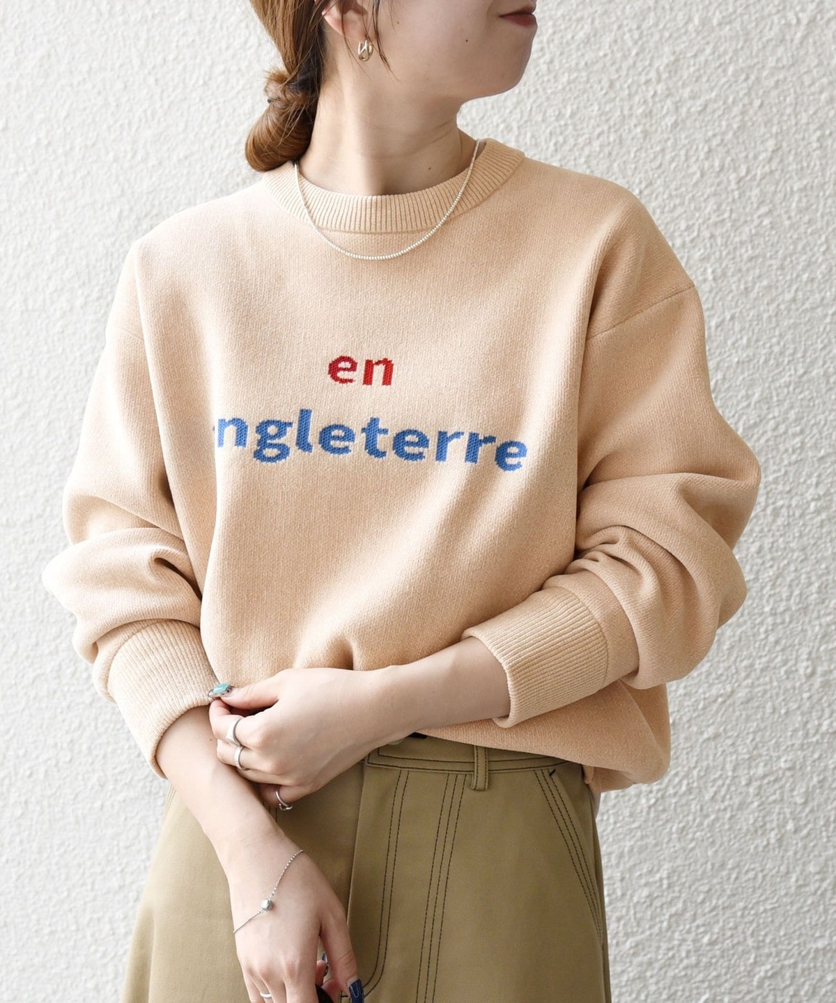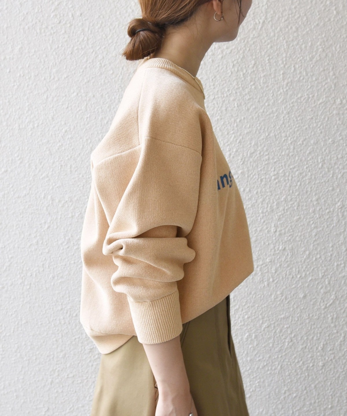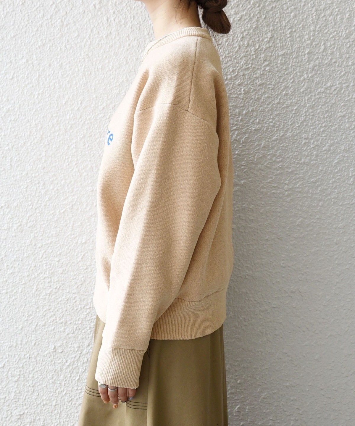 3. SHIPS any:〈手洗い可能〉モールヤーン クルーネック ロゴ 千鳥柄 プルオーバー ベージュ系