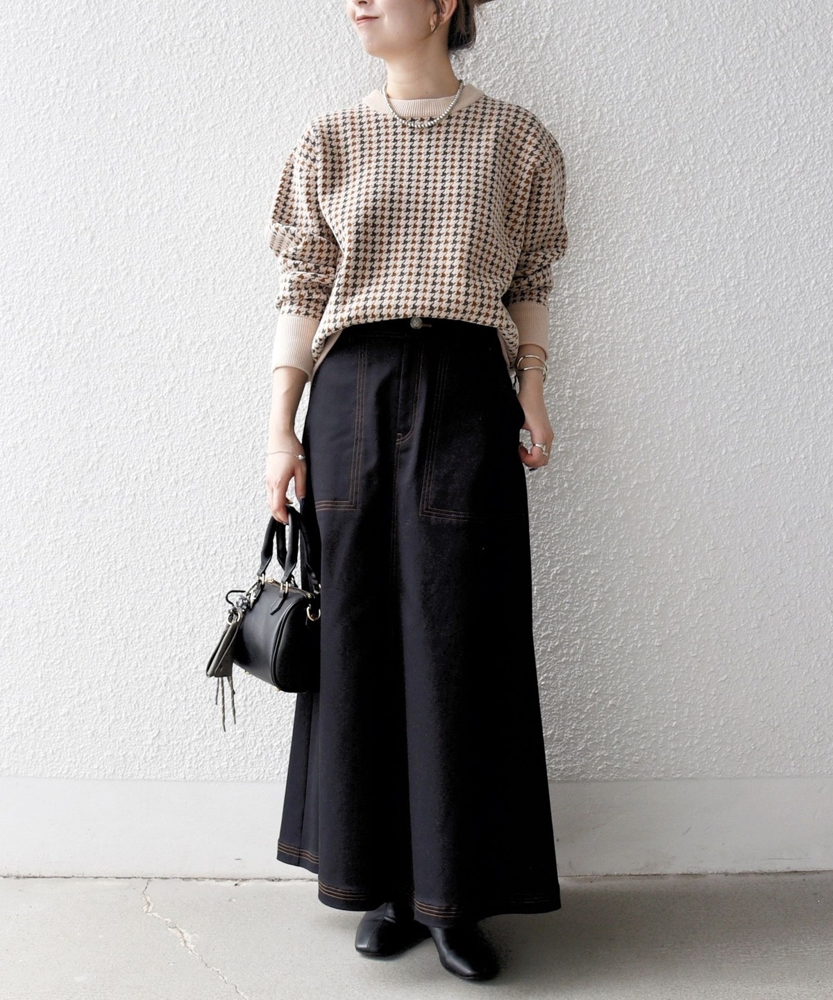 千鳥格子タイプはスラックスやマーメイドスカートと合わせて、きれいめなスタイルがおすすめです。