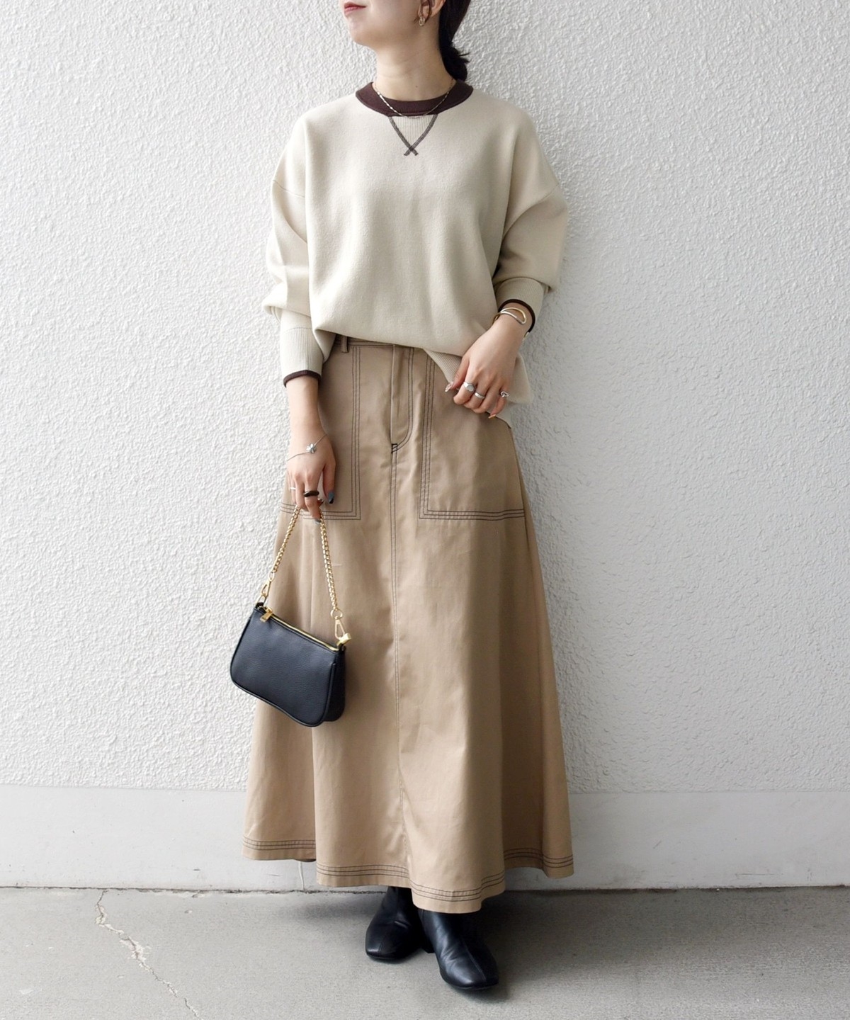 配色がアクセントになるため、シンプルなボトムス合わせでこなれた印象に仕上がります。