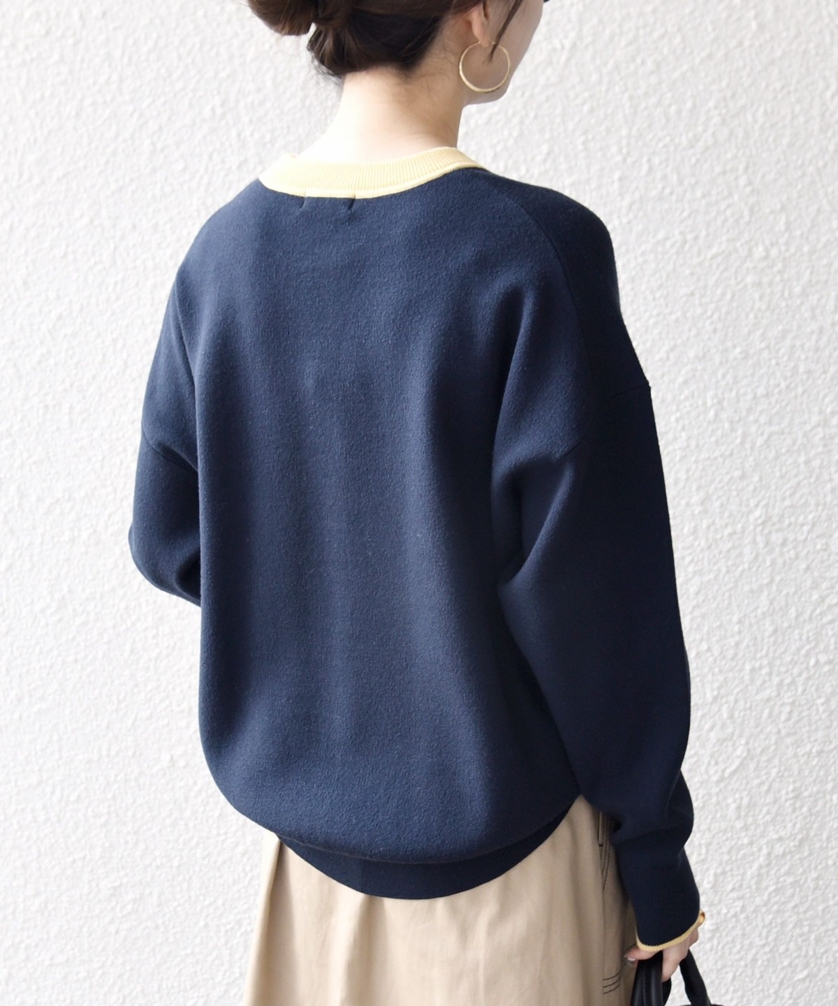 SHIPS any:〈手洗い可能〉ダブルフェイス Vガゼット ニット プルオーバー