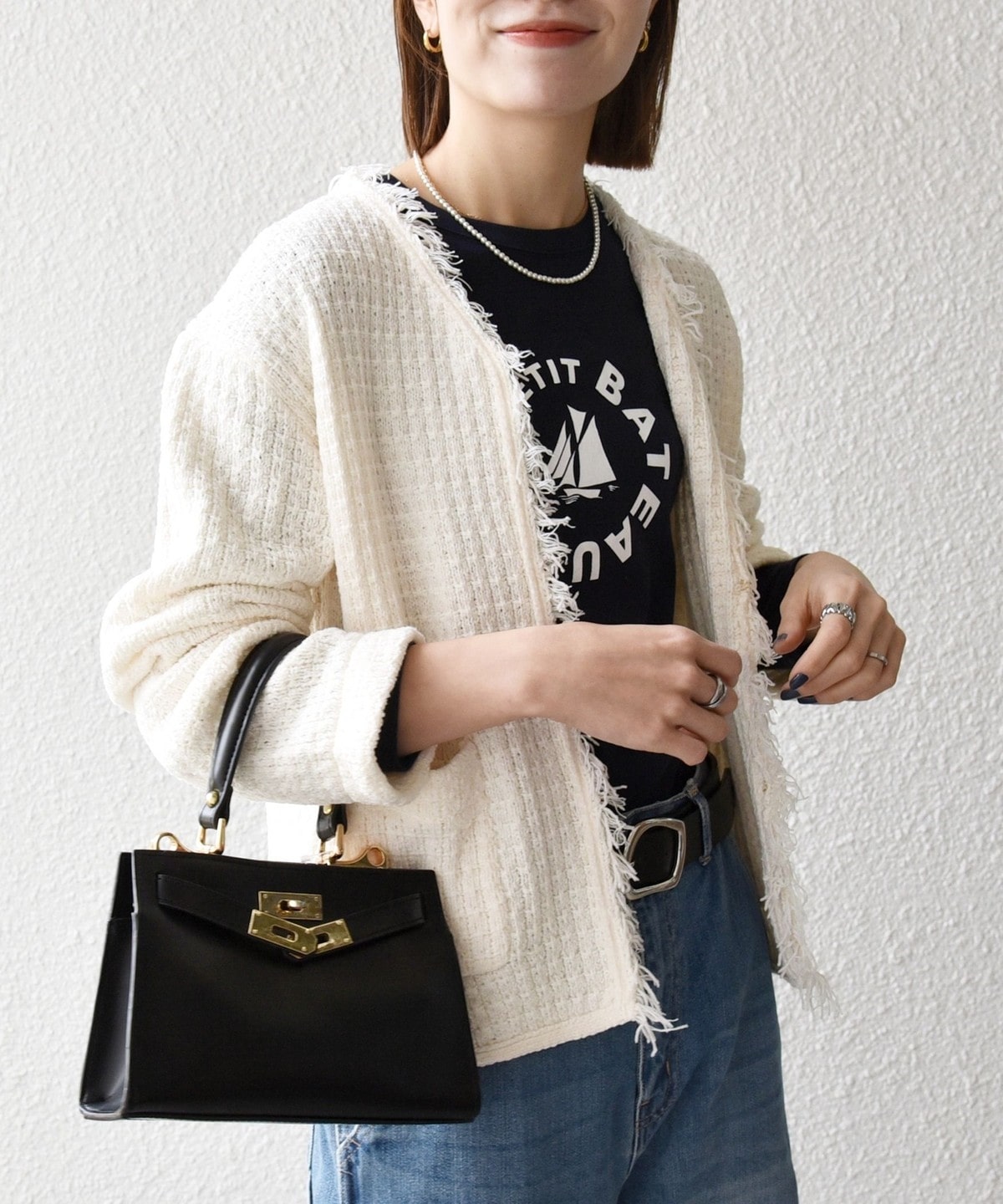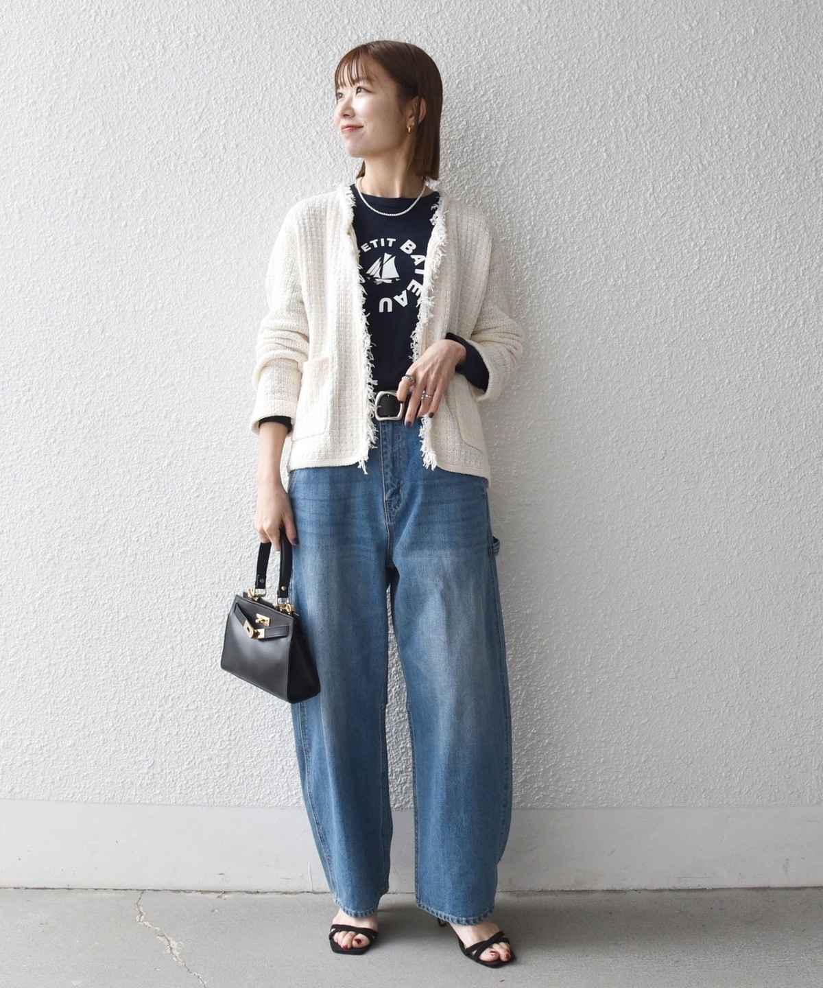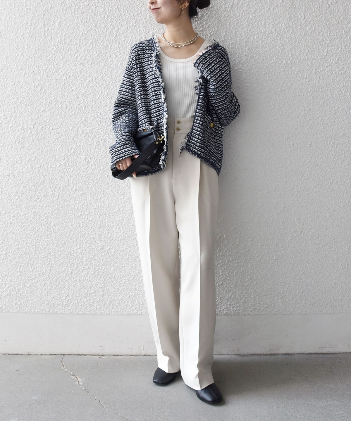 デニムパンツと合わせたカジュアルスタイルはもちろん、きれいめなパンツやスカートと合わせれば、上品なモードスタイルも楽しめます。