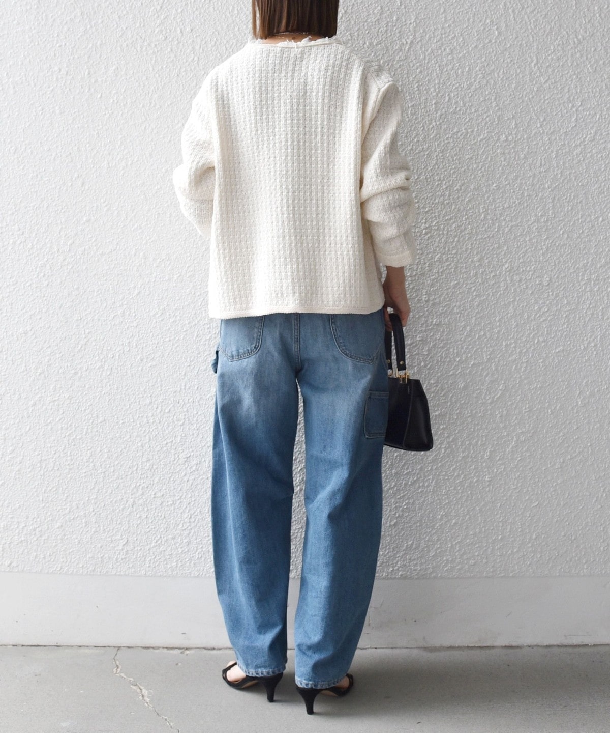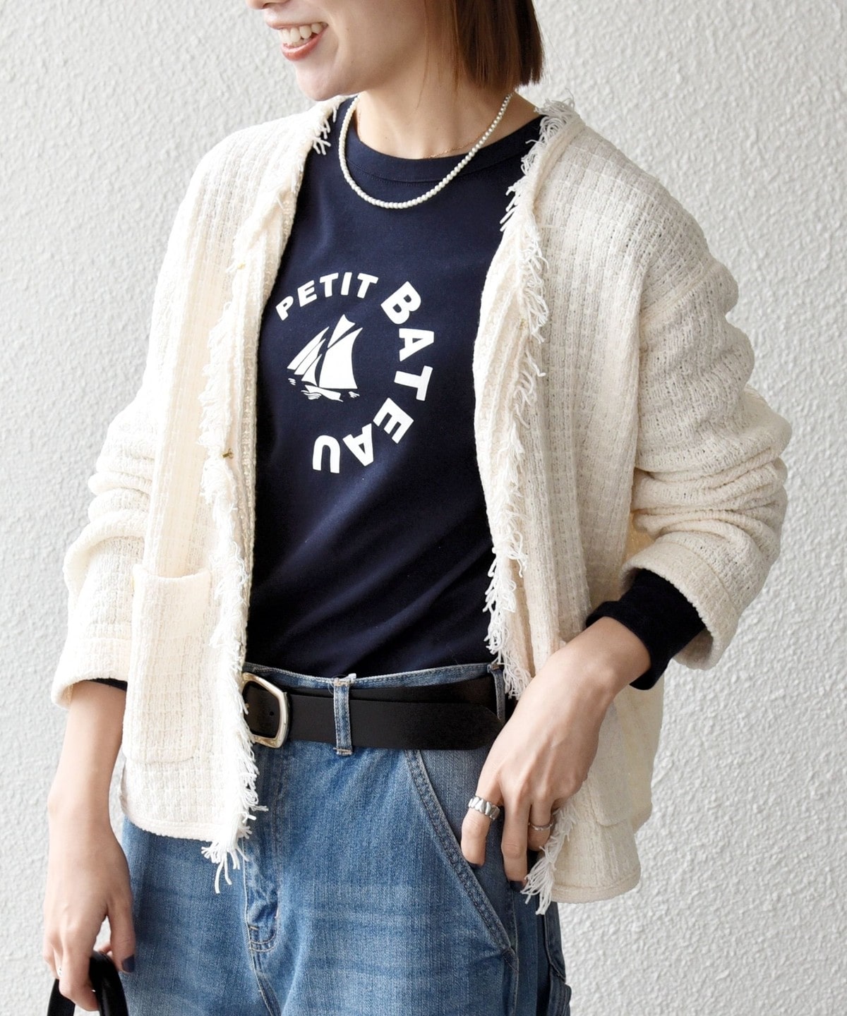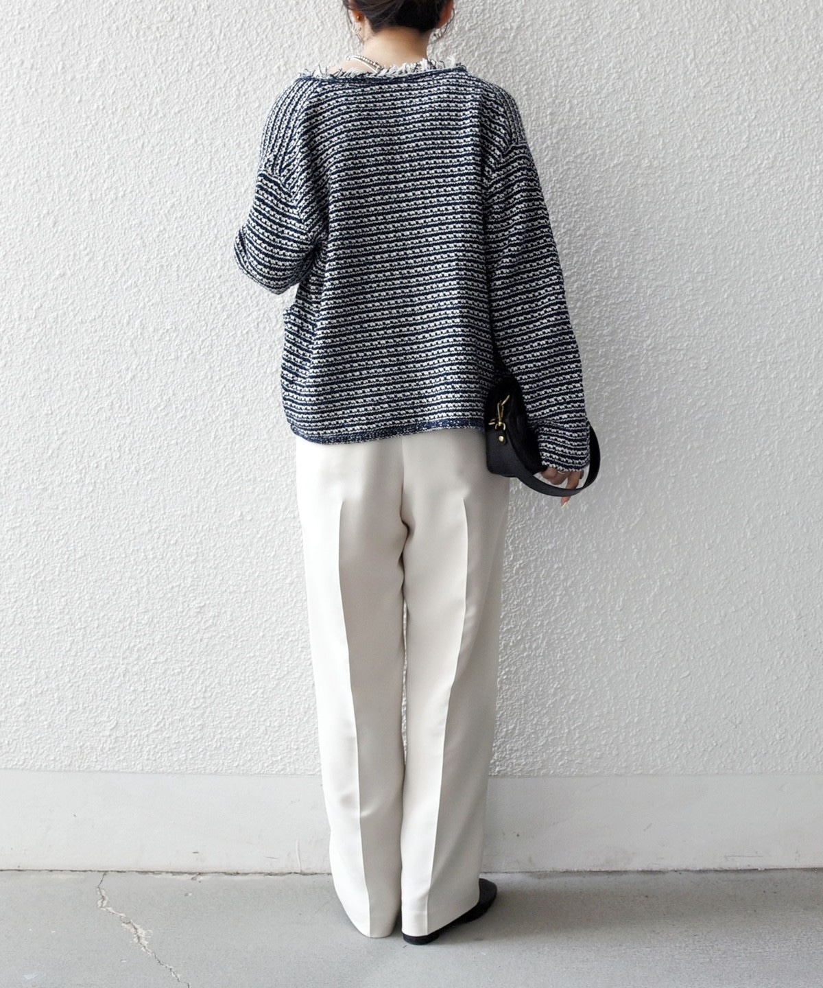 デニムパンツと合わせたカジュアルスタイルはもちろん、きれいめなパンツやスカートと合わせれば、上品なモードスタイルも楽しめます。