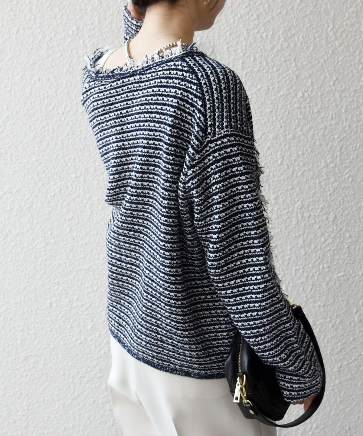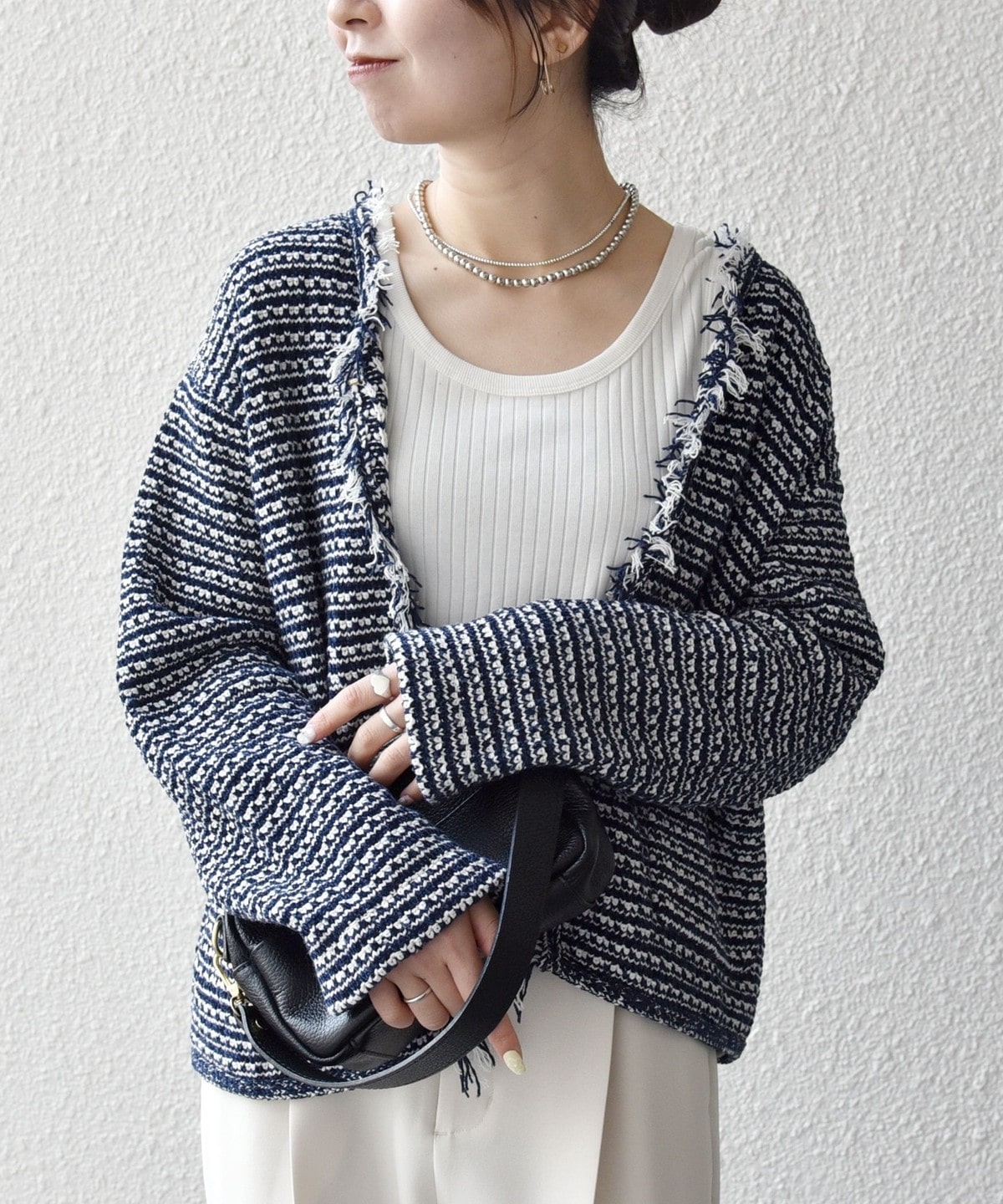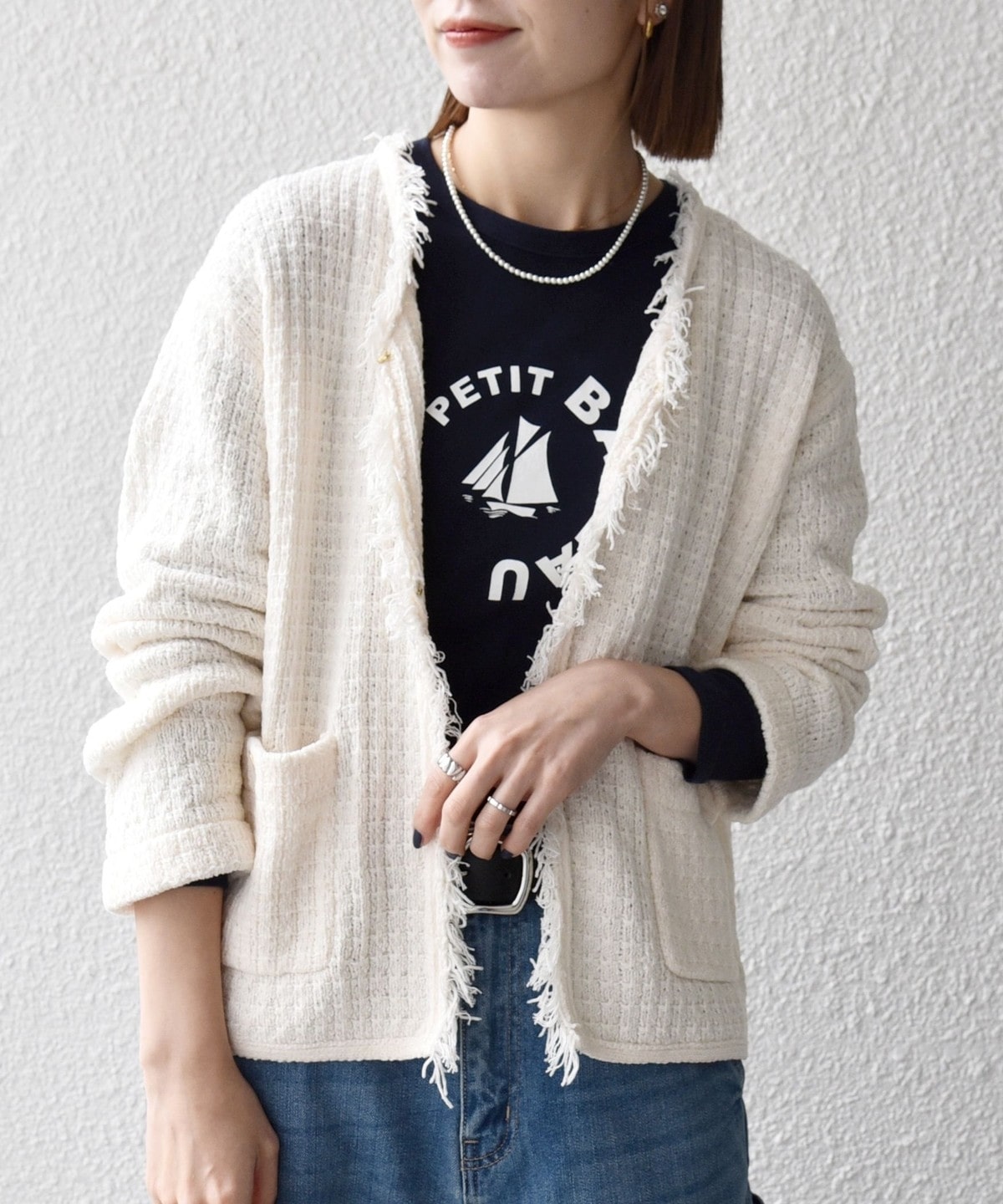 24. 《予約》SHIPS any:〈手洗い可能〉フリンジ Vネック カーディガン ジャケット