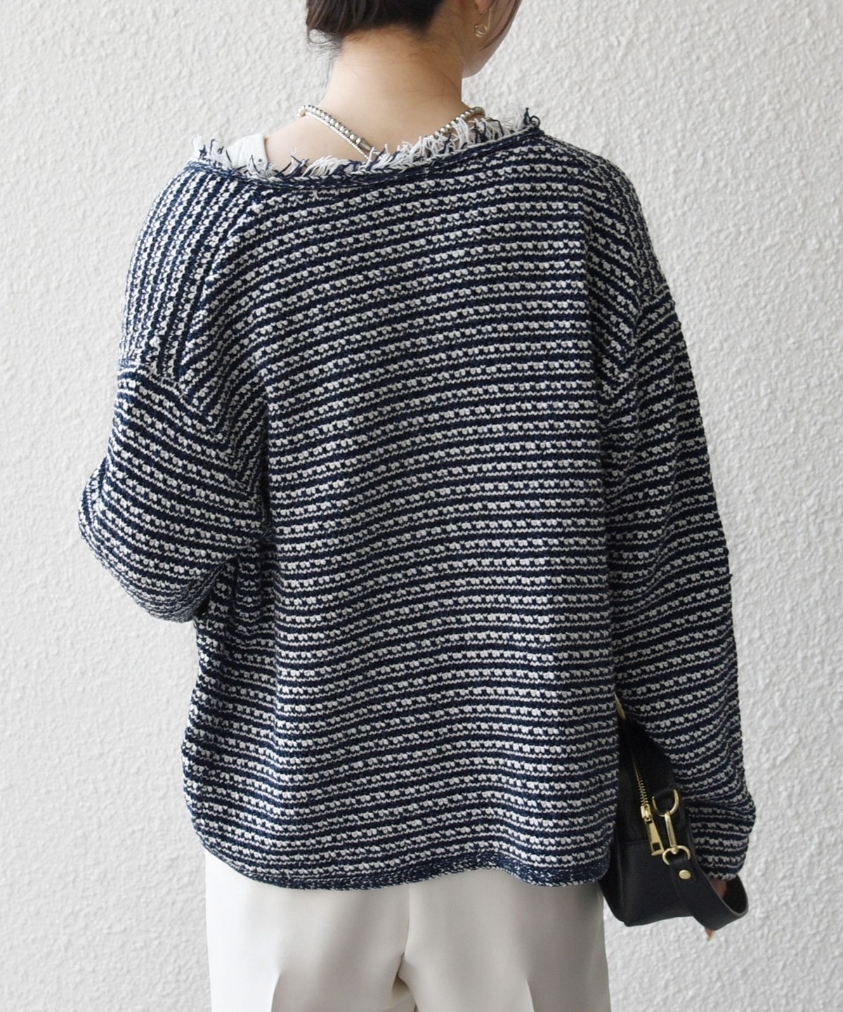 25. 《予約》SHIPS any:〈手洗い可能〉フリンジ Vネック カーディガン ジャケット