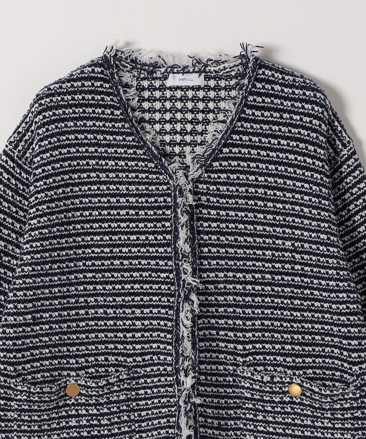 22. 《予約》SHIPS any:〈手洗い可能〉フリンジ Vネック カーディガン ジャケット