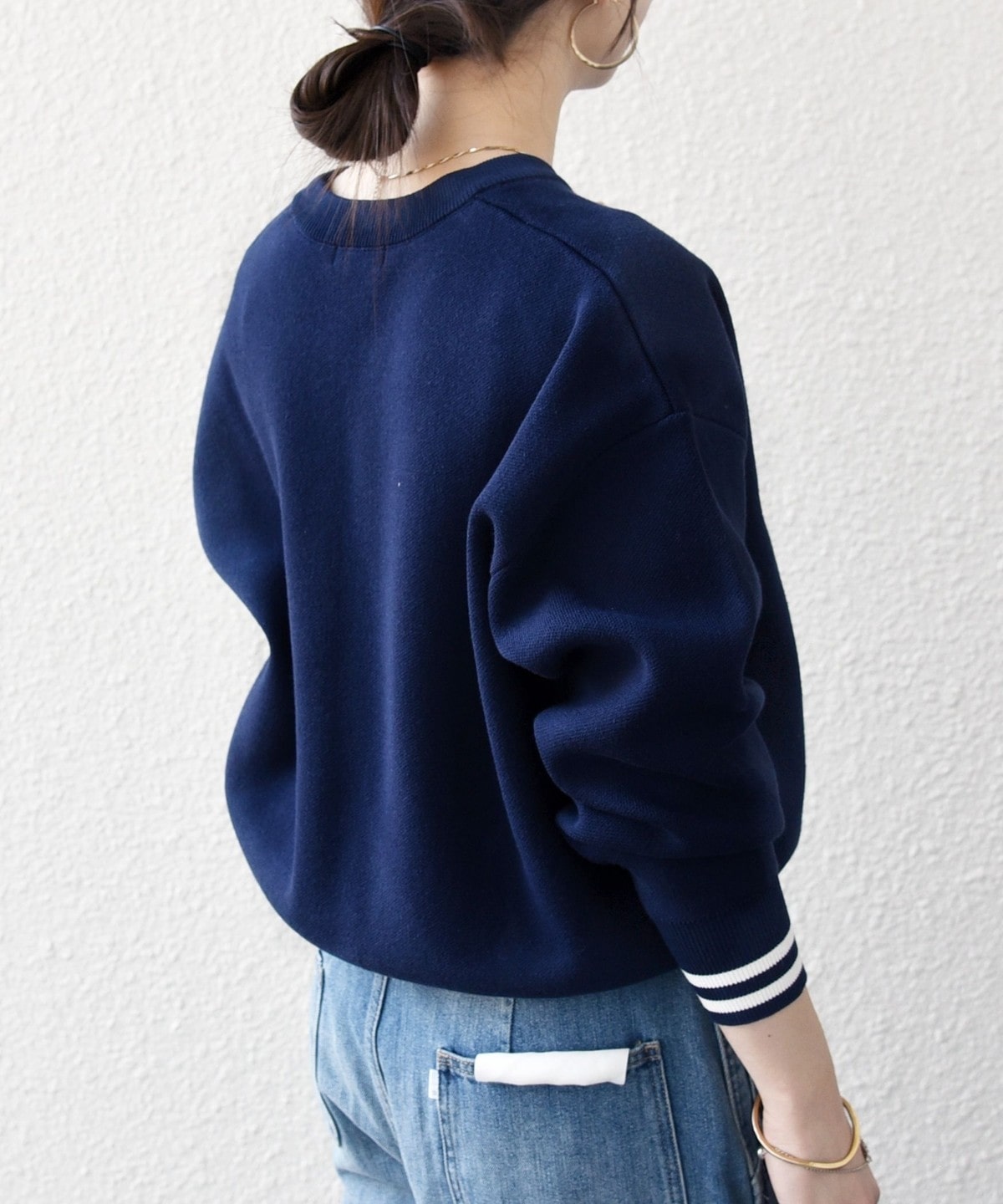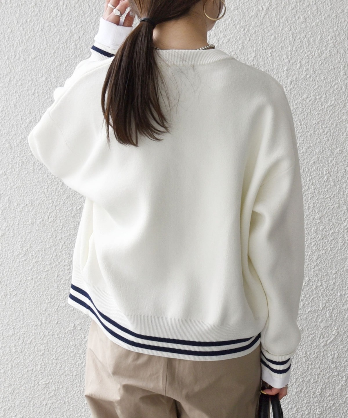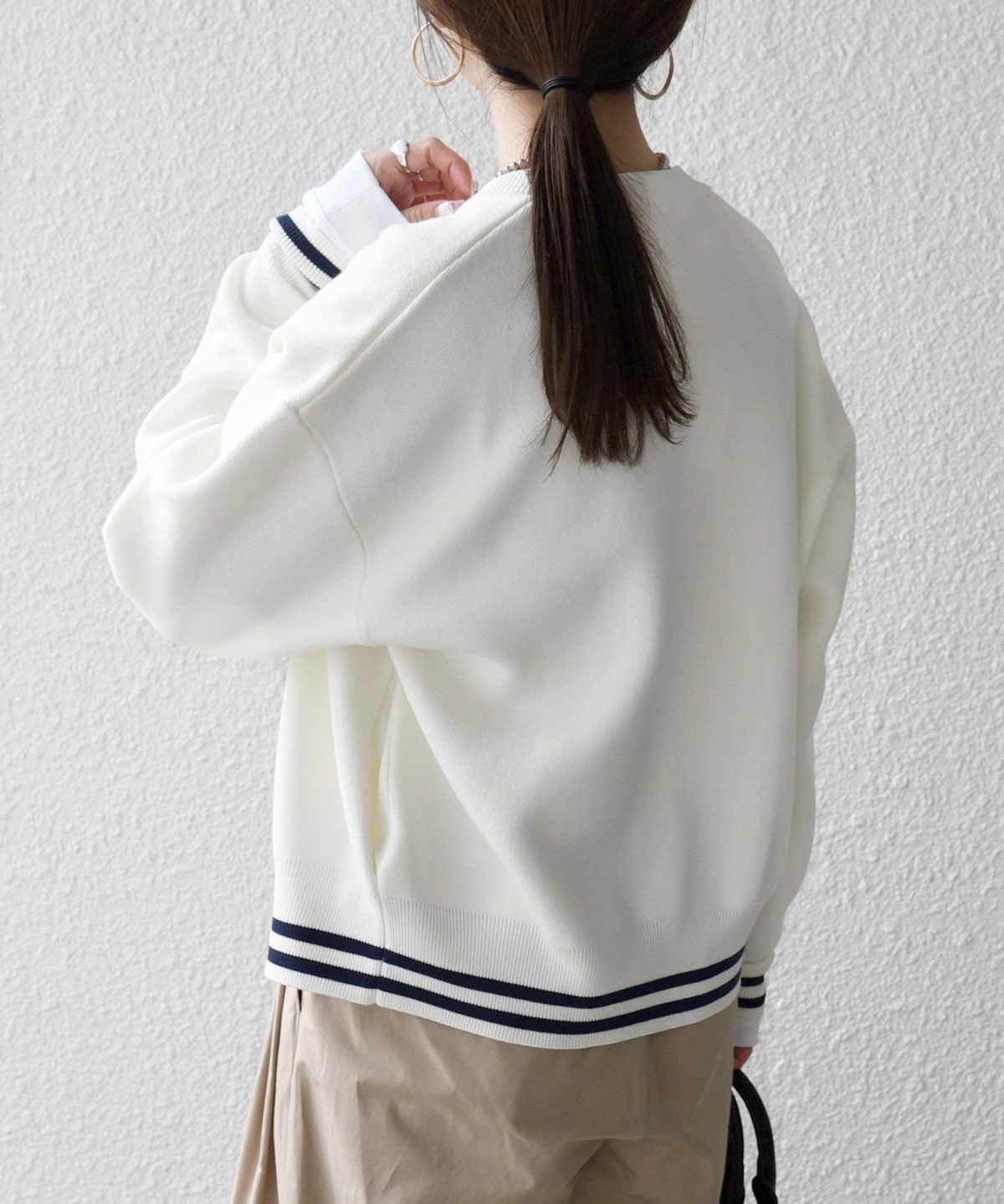肩の切り替え位置を落とすことで肩のラインを拾いにくく、程よく抜け感のある着こなしが叶います。