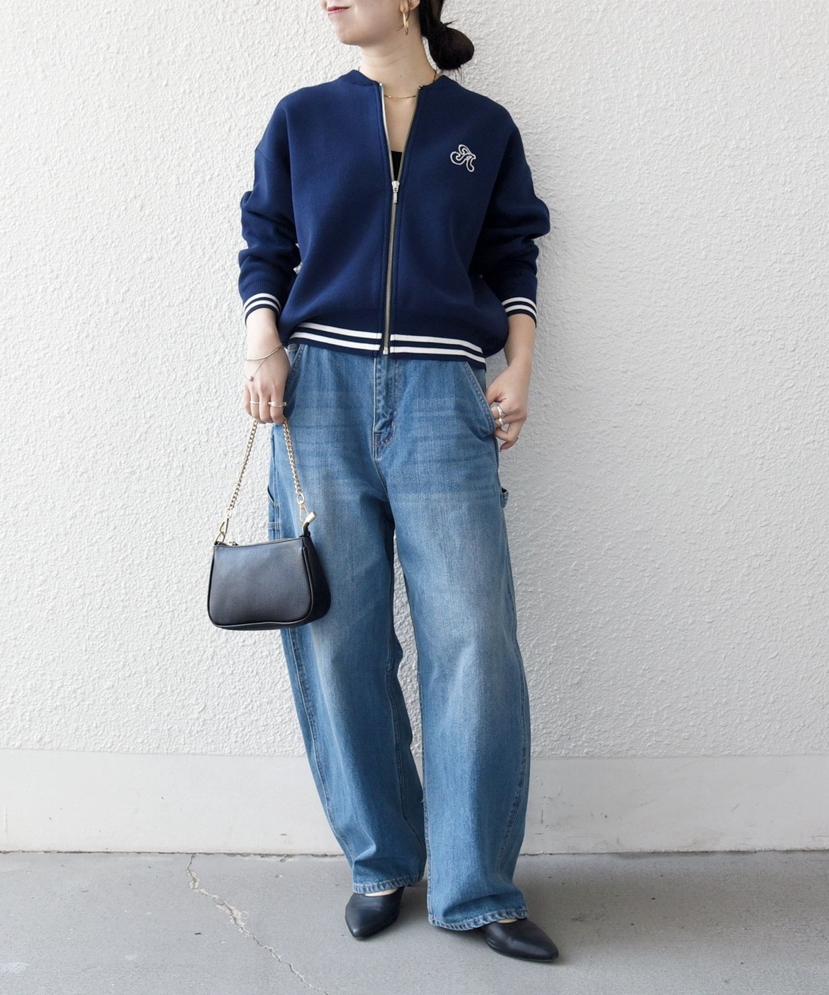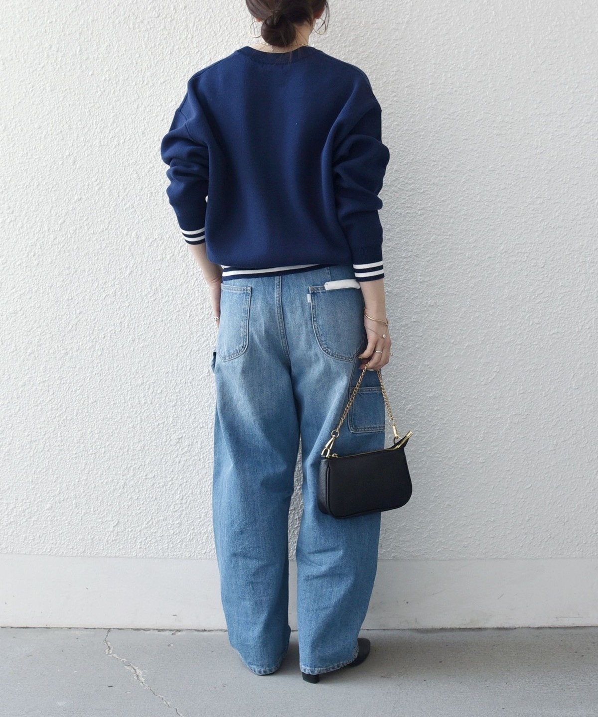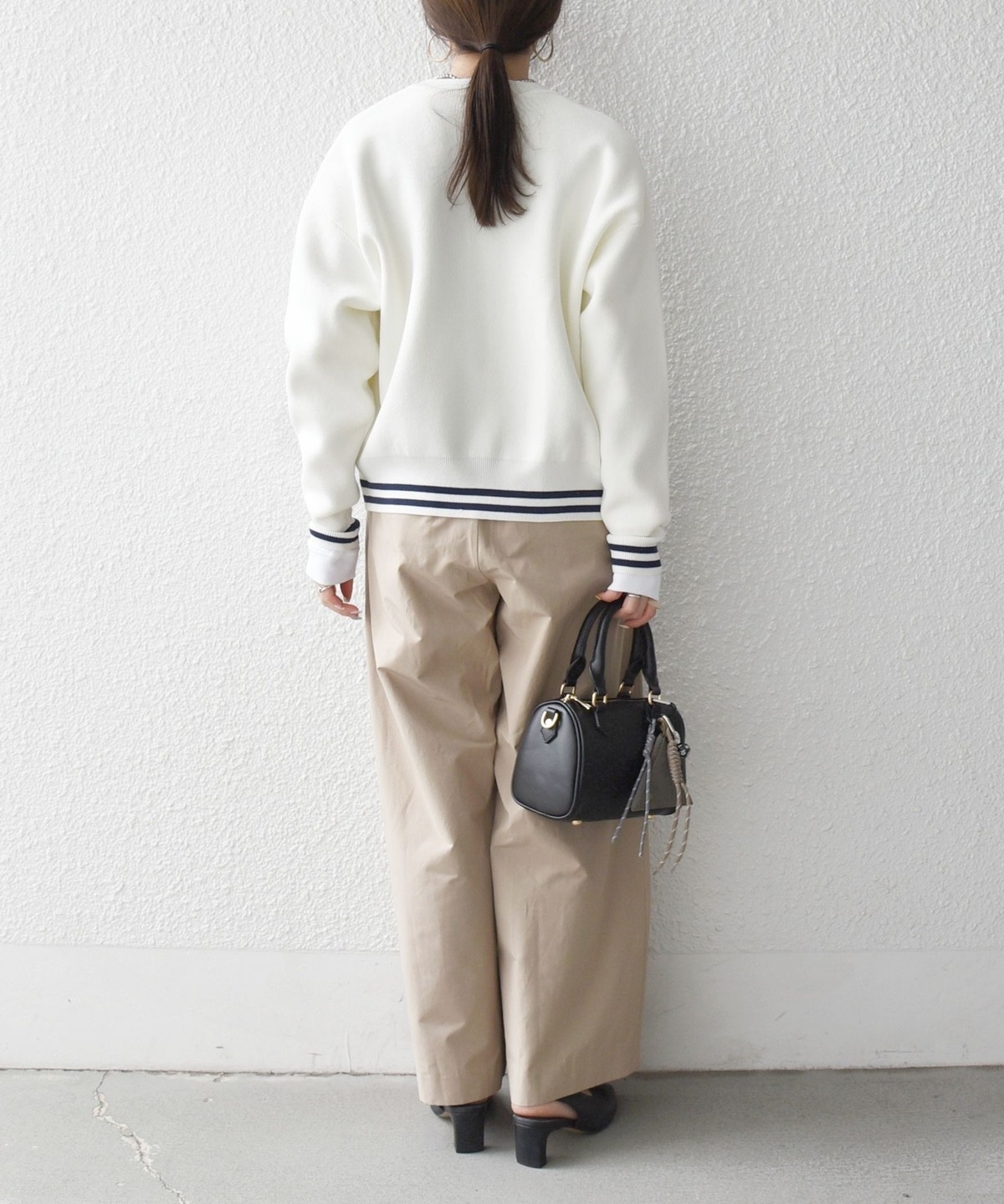 肩の切り替え位置を落とすことで肩のラインを拾いにくく、程よく抜け感のある着こなしが叶います。