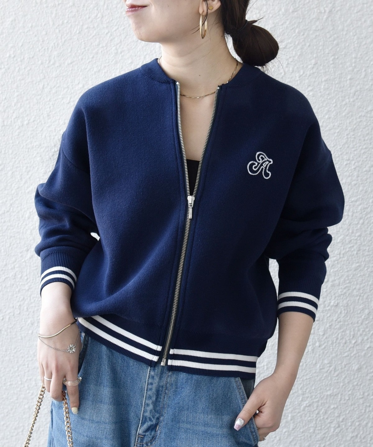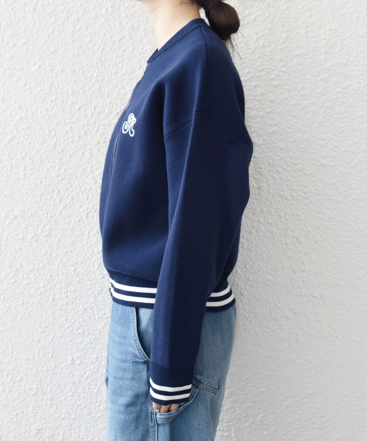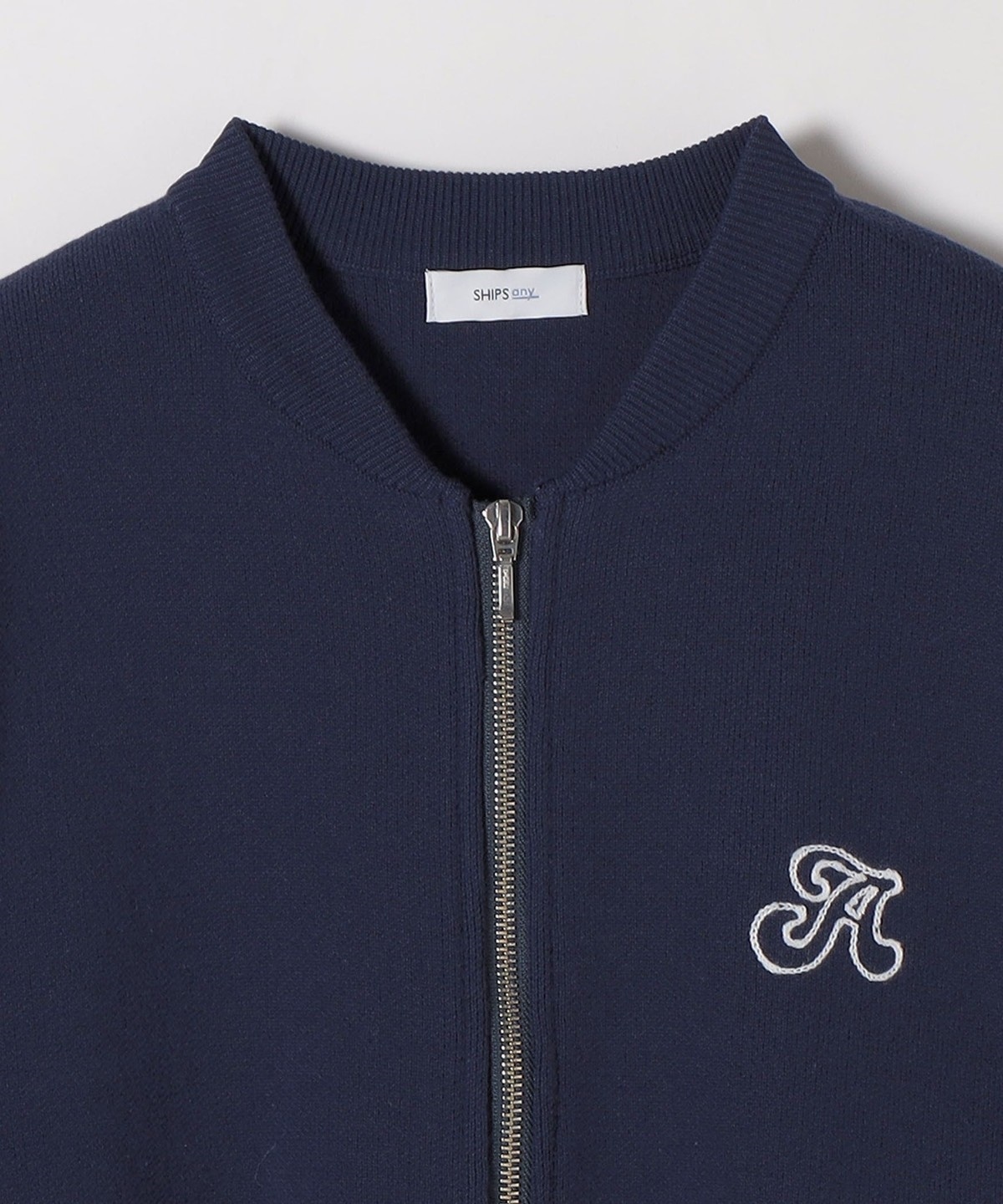 左胸にはブランドロゴの頭文字“A”の刺繍を施し、裾と袖口のラインリブが大人カジュアルなアクセントに。