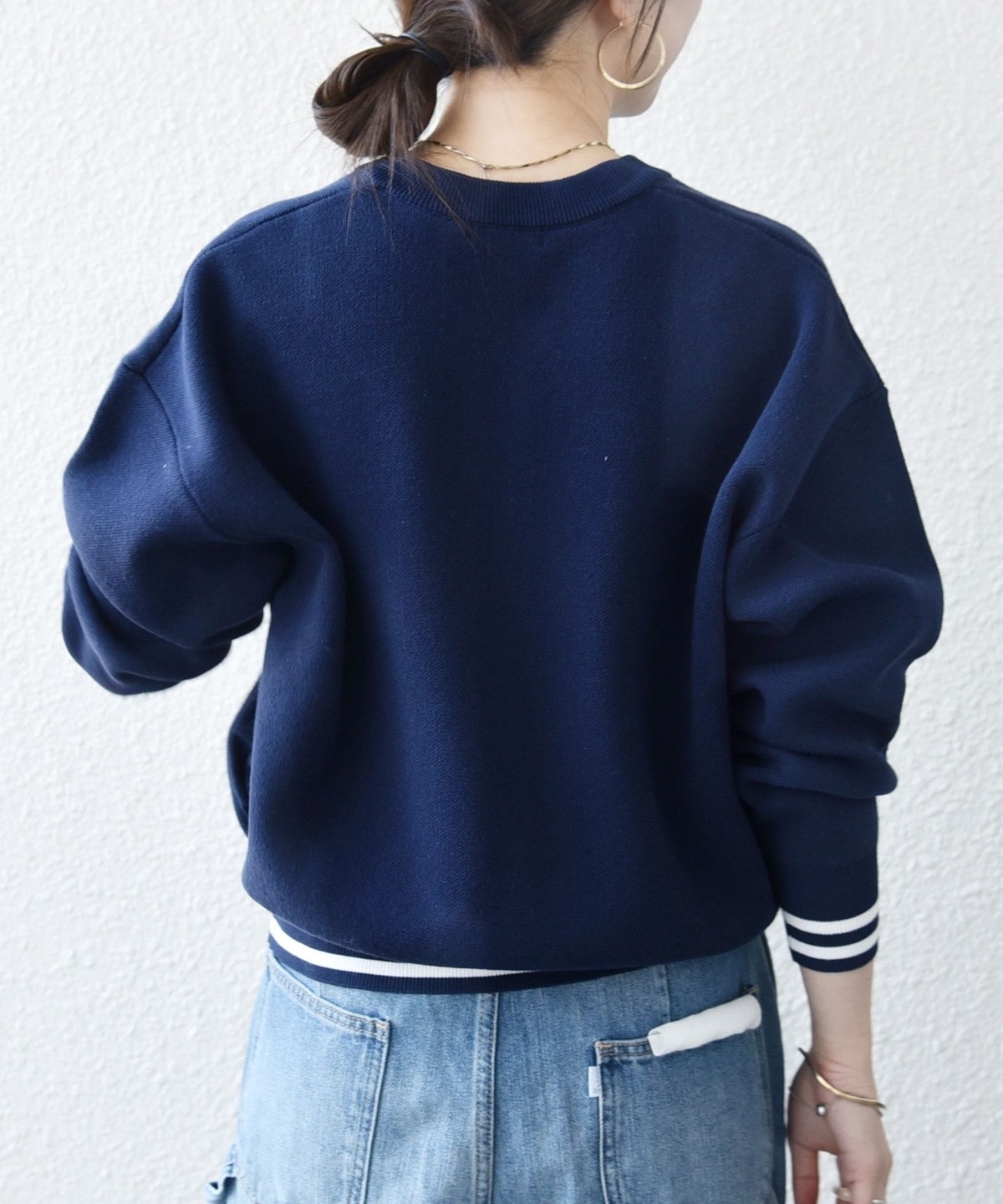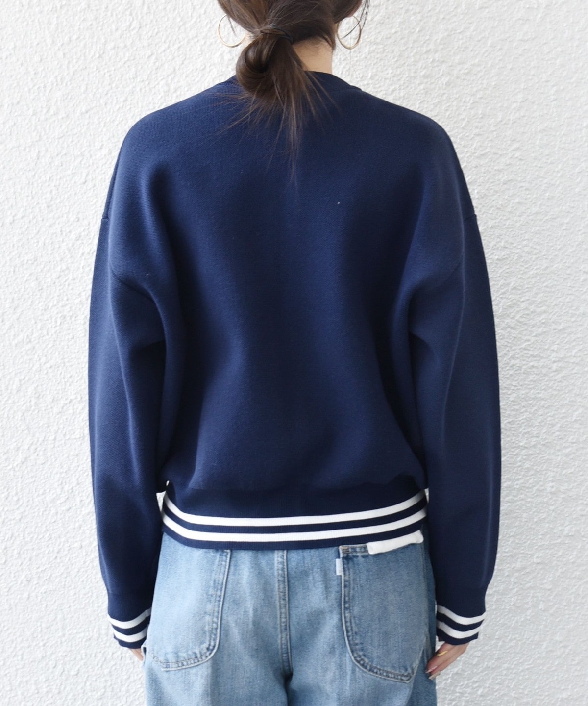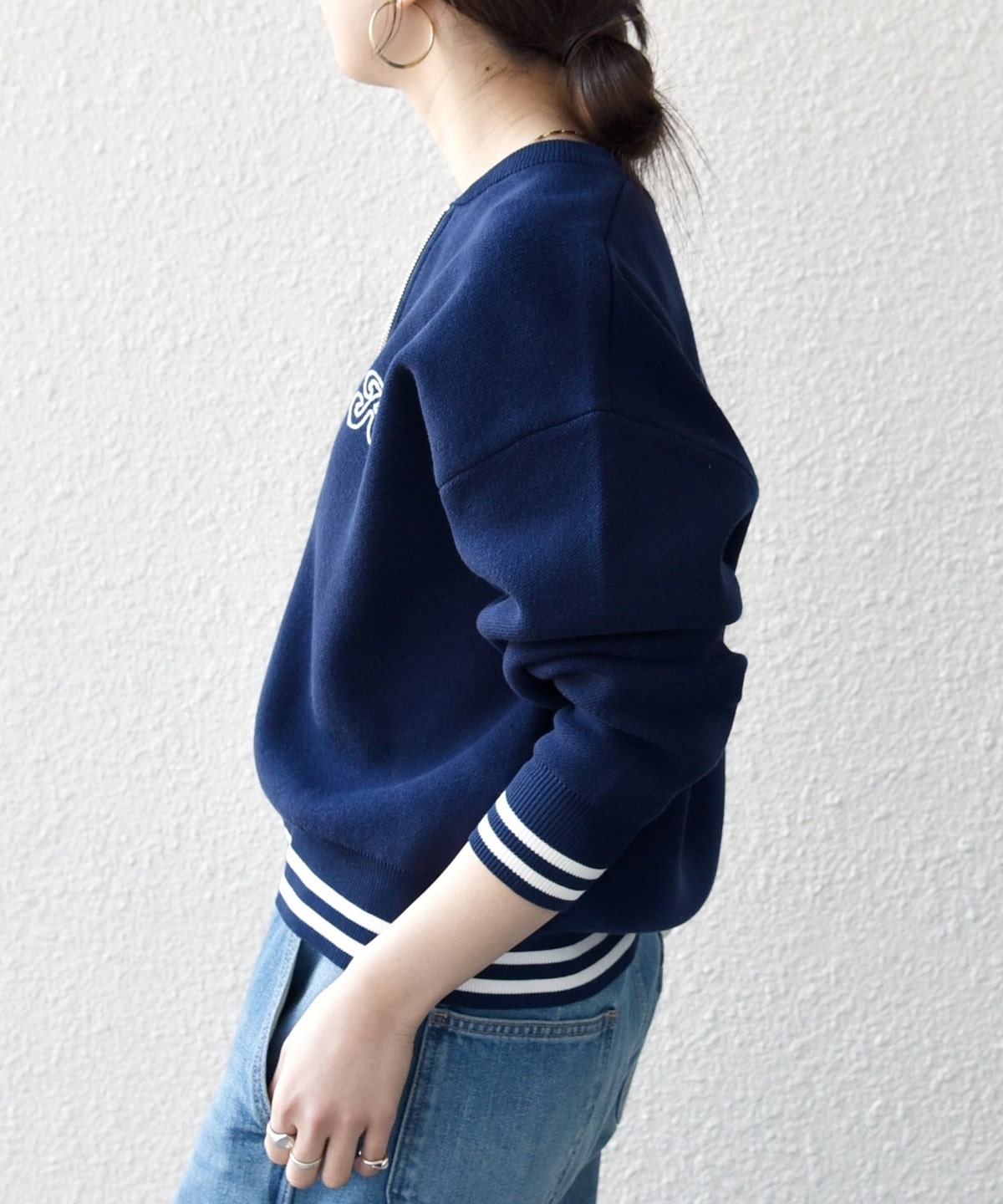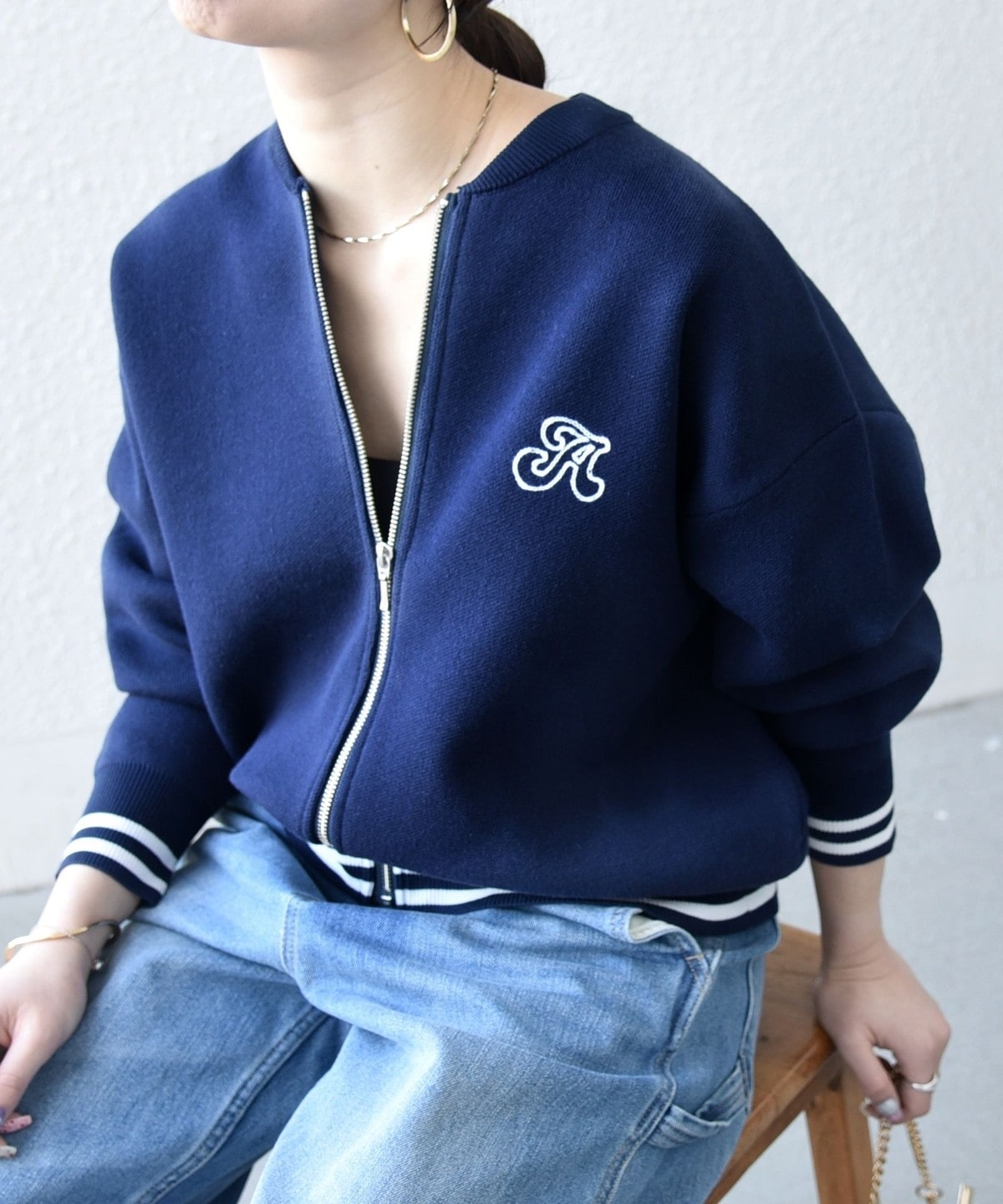左胸にはブランドロゴの頭文字“A”の刺繍を施し、裾と袖口のラインリブが大人カジュアルなアクセントに。