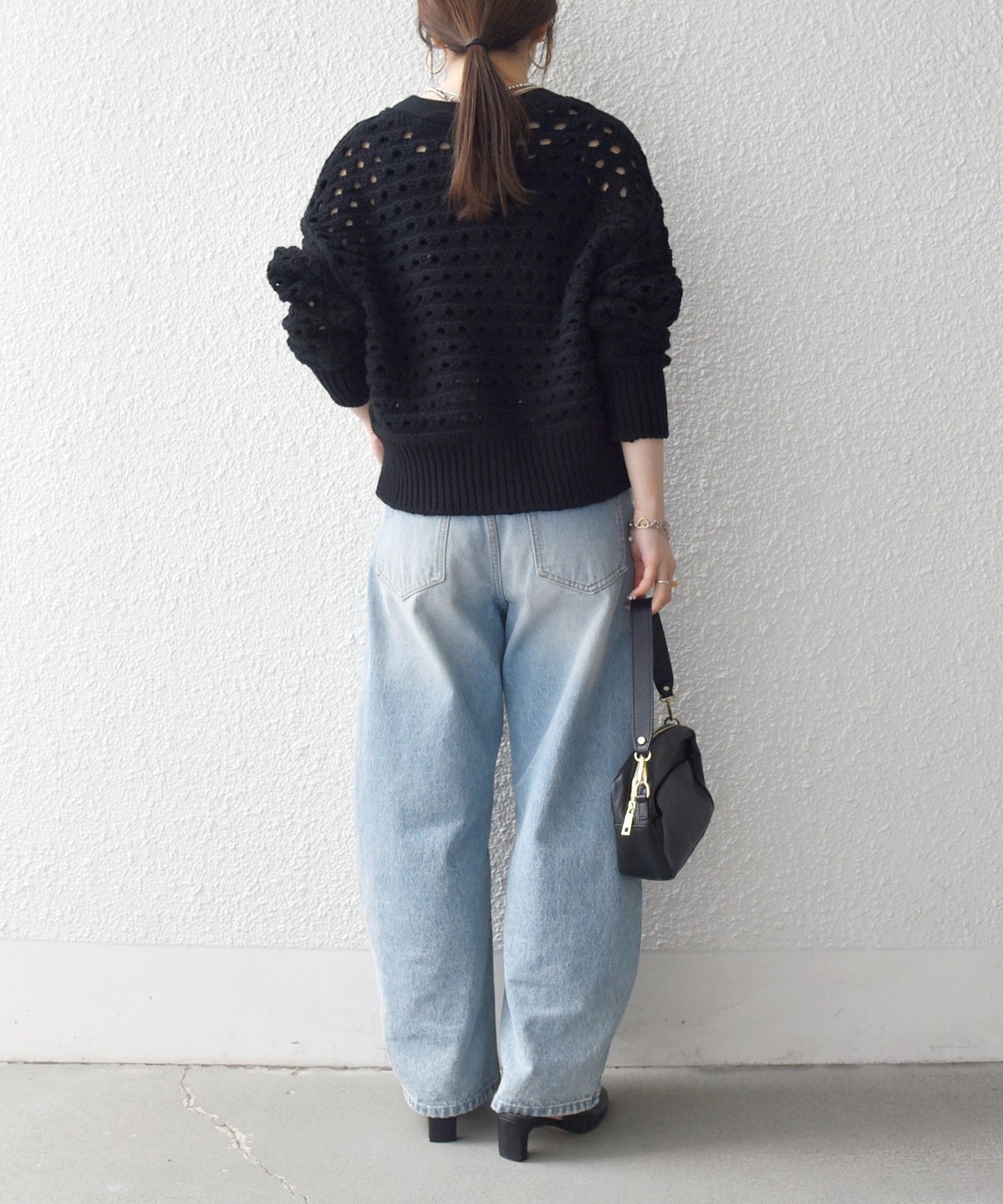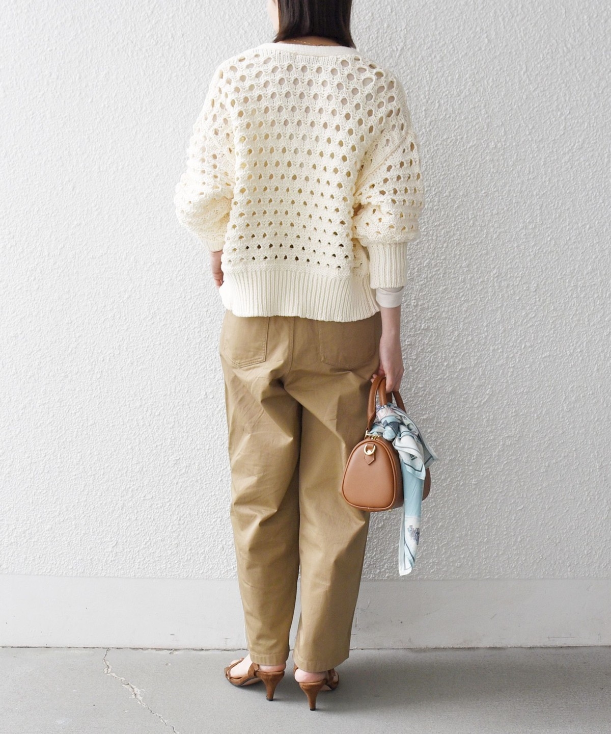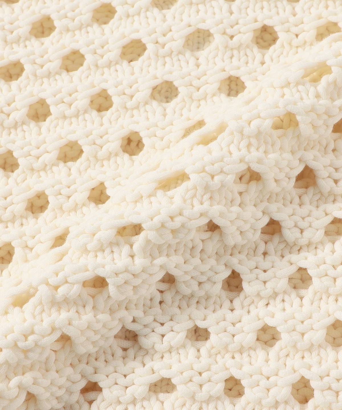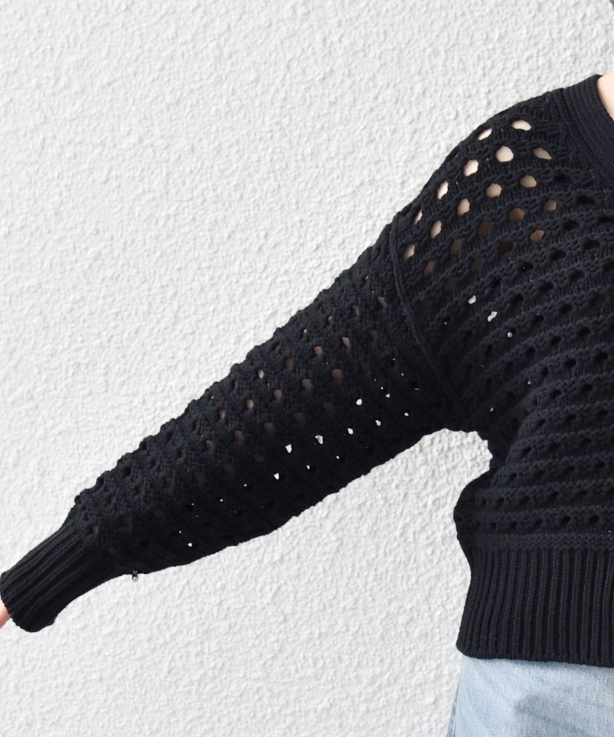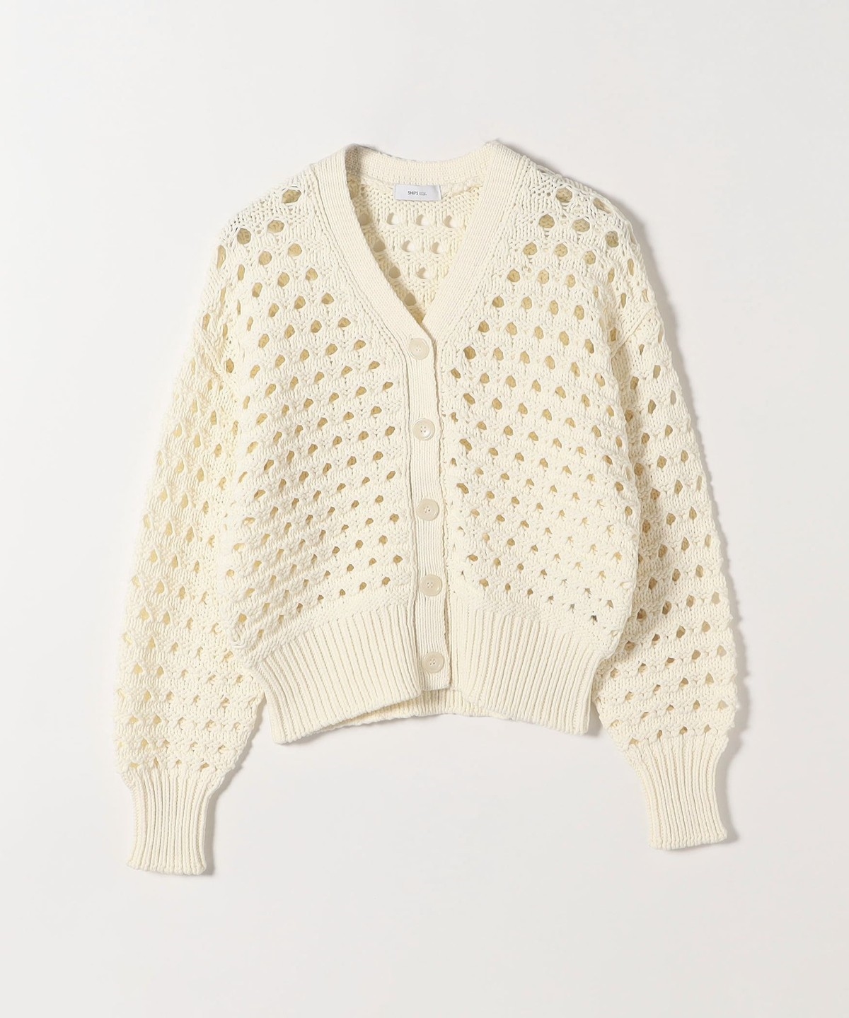 ざっくりとした透かし編みが、大人の抜け感を演出するVネックカーディガン。